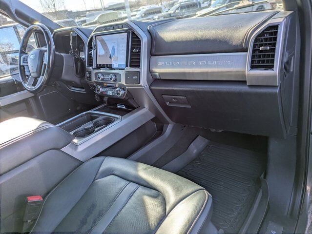 ENGINE: 6.7L 4V OHV POWER STROKE V8 TURBO DIESEL B20 -inc: manual push-button engine-exhaust braking and intelligent oil-life monitor 240 Amp Alternator (67D) 34 Gallon Fuel Tank GVWR: 11 500 lb Payload Package 3.31 Axle Ratio Dual 78-AH 750 CCA Batteries,Four Wheel Drive,Tow Hitch,Power Steering,ABS,4-Wheel Disc Brakes,Brake Assist,Aluminum Wheels,Tires - Front All-Terrain,Tires - Rear All-Terrain,Tow Hooks,Heated Mirrors,Power Mirror(s),Integrated Turn Signal Mirrors,Power Folding Mirrors,Rear Defrost,Privacy Glass,Intermittent Wipers,Variable Speed Intermittent Wipers,Rain Sensing Wipers,Integrated Tailgate Step,Running Boards/Side Steps,Power Retractable Running Boards,Automatic Highbeams,Fog Lamps,Daytime Running Lights,Automatic Headlights,LED Headlights,AM/FM Stereo,Premium Sound System,Steering Wheel Audio Controls,Auxiliary Audio Input,Passenger Adjustable Lumbar,Adjustable Steering Wheel,WiFi Hotspot,Leather Steering Wheel,Heated Steering Wheel,Universal Garage Door Opener,Cruise Control,Adaptive Cruise Control,Climate Control,Multi-Zone A/C,A/C,Power Driver Seat,Power Passenger Seat,Leather Seats,Bucket Seats,Heated Front Seat(s),Cooled Front Seat(s),Seat-Massage,Auto-Dimming Rearview Mirror,Driver Vanity Mirror,Passenger Vanity Mirror,Driver Illuminated Vanity Mirror,Passenger Illuminated Visor Mirror,Floor Mats,Navigation System,Adjustable Pedals,Immobilizer,Security System,Stability Control,Front Side Air Bag,Blind Spot Monitor,Cross-Traffic Alert,Front Collision Mitigation,Rear Parking Aid,Lane Departure Warning,Aerial View Display System,Driver Monitoring,Tire Pressure Monitor,Driver Restriction Features,Front Head Air Bag,Rear Head Air Bag,Driver Air Bag,Passenger Air Bag,Child Safety Locks,Back-Up Camera