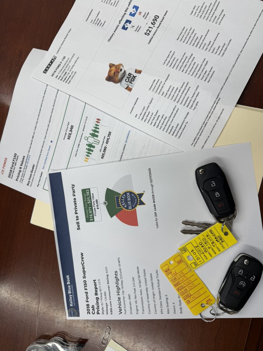 Come check out this BEAUTIFUL 2018 FORD F150 XLT 4X4 with the POWERFUL AND RELIABLE 5.0 "COYOTE" ENGINE!! This F-150 runs and drives great!! Comes with A CLEAN TITLE, LOW MILES, AND A GOOD CARFAX HISTORY!! Comes loaded with awesome features like power windows, seats and mirrors, HEATED SEATS, MULTI FUNCTION TOUCH SCREEN DISPLAY, USB CONNECTION, BLUETOOTH, APPLE CARPLAY, ANDROID AUTO, CONNECTED CAR, CONNECTED CAR INTEGRATED APPS, PARKING SENSORS, CRASH SENSORS, BACKUP CAMERA, STEERING WHEEL MOUNTED CONTROLS, ON DEMAND 4WD, ELECTRONIC 4WD SELECTOR, LOCKING DIFFERENTIAL, POWER LOCKING TAILGATE, POWER ADJUSTABLE PEDALS, KEYLESS ENTRY, REMOTE START, REMOVABLE TAILGATE, RUNNING BOARDS, MAX TRAILER TOW PACKAGE, TRAILER HITCH, TRAILER WIRING, AND PREMIUM ALLOY WHEELS WITH GOOD TIRES AND A FULL SIZED SPARE. Also comes with 2 KEY FOBS and don't forget about THE FAN FAVORITE 5.0 ENGINE!! Comes emission ready with only 124,500 miles!! CARFAX RETAIL VALUE FOR THIS COOL TRUCK SITS AT $21,690, KBB PRIVATE PARTY BETWEEN $19,089 AND $21,183 AND JD POWER AT $23,340, (CHECK PICTURE) ASKING ONLY $17,995!! OVER 3K BELOW CARFAX RETAIL VALUE!! AWESOME DEAL!! FOR EXTRA PEACE OF MIND, WE ARE THROWING FOR FREE A 4 MONTH/4,000 MILES WARRANTY WITH SERVICE AND ROAD-SIDE ASSISTANCE INCLUDED AT ASKING PRICE!!! PASSED EMISSIONS AND IS READY TO HIT THE OPEN ROAD!!!! Please call or text at 801-243-1296 to schedule an appointment or if you have any questions. It is emissions ready and good to go!!!! Here at Awesome Deals Auto Sales, are committed to provide a friendly, no pressure environment for our customers. We are a small family-owned dealership and we feel that honesty and transparency are our top priority. We want to make your car buying experience stress-free!!! We concentrate on selling cars with clean titles, low miles and a great retail value!! We sell quality, no quantity!!! Visit our website at www.awesomedealsautosales,com to find more awesome deals and to check full Carfax reports on all of our vehicles!!! Hablamos Español!! Thanks for looking and have a great day!!!