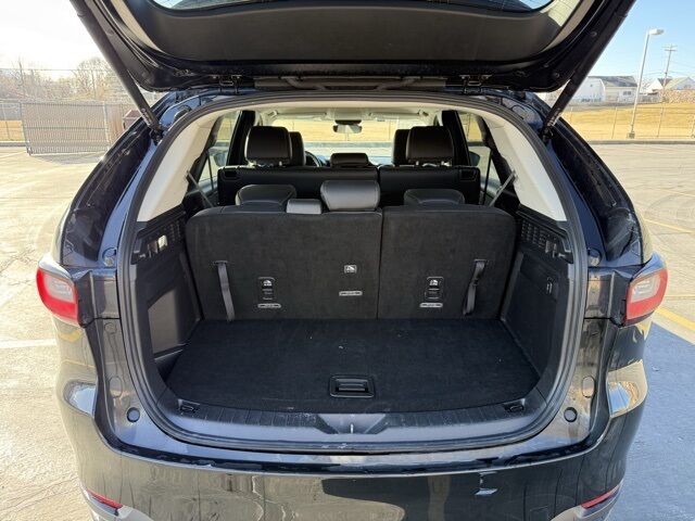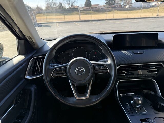 Clean Carfax History Report, CX-90 3.3 Turbo Select, 4D Sport Utility, I6 Turbo, 8-Speed Automatic, AWD, Jet Black Mica, Black w/Leather Seat Trim, 4-Wheel Disc Brakes, 8 Speakers, ABS brakes, Air Conditioning, AM/FM radio, Auto High-beam Headlights, Automatic temperature control, Brake assist, Bumpers: body-color, Delay-off headlights, Dual front impact airbags, Dual front side impact airbags, Electronic Stability Control, Emergency communication system: MAZDA CONNECT, Exterior Parking Camera Rear, Four wheel independent suspension, Front anti-roll bar, Front dual zone A/C, Fully automatic headlights, Heated door mirrors, Infotainment System Voice Command, Knee airbag, Low tire pressure warning, Occupant sensing airbag, Overhead airbag, Pandora Internet Radio Integration, Panic alarm, Power door mirrors, Power driver seat, Power Liftgate, Power steering, Power windows, Radio Broadcast Data System Program Information, Radio data system, Radio: AM/FM w/HD/8-Speaker Sound System, Rear air conditioning, Rear anti-roll bar, Rear window defroster, Remote keyless entry, SMS Text Msg Audio Delivery & Reply, Speed control, Speed-sensing steering, Spoiler, Steering wheel mounted audio controls, Traction control, Turn signal indicator mirrors.