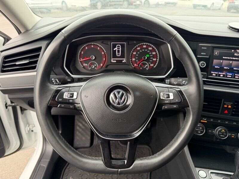 This 2020 Volkswagen Jetta SE is powered by the factory 1.4L Turbocharged Inline-4 engine rated at 147 hp and 184 lb-ft of torque (ULEV). It delivers excellent fuel economy for daily driving, EPA-rated at approximately 30 MPG city and 40 MPG highway. The example described has below 52,000 miles — averaging under 8,000 miles per year — making it a low-mileage example for its model year.