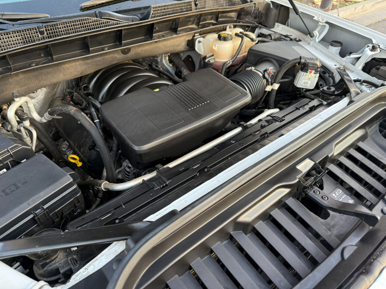 Trailering Package includes trailer hitch- 7-pin and 4-pin connectors and (CTT) Hitch Guidance,Engine- 5.3L EcoTec3 V8 (355 hp [265 kW] @ 5600 rpm- 383 lb-ft of torque [518 Nm] @ 4100 rpm); featuring Dynamic Fuel Management,Rear axle- 3.23 ratio (Not available with (NHT) Max Trailering Package.),Pickup bed,GVWR- 7100 lbs. (3221 kg) (Requires Crew Cab 4WD model with (L84) 5.3L EcoTec3 V8 engine or (L87) 6.2L EcoTec3 V8 engine without (NHT) Max Trailering Package. Requires Crew Cab 2WD model with (L84) 5.3L EcoTec3 V8 engine and (NHT) Max Trailering Package. Requires Crew Cab 2WD model and (LZ0) Duramax 3.0L Turbo-Diesel I6 engine and (NHT) Max Trailering Package.),Automatic Stop/Start,Auto-locking rear differential,Transfer case- single speed- electronic Autotrac with push button control (4WD models only),Suspension Package- Standard,Four wheel drive,Cooling- external engine oil cooler (Not available with (LZ0) Duramax 3.0L Turbo-Diesel I6 engine.),Cooling- auxiliary external transmission oil cooler (Not available with (LZ0) Duramax 3.0L Turbo-Diesel I6 engine.),Alternator- 170 amps (Included and only available with (L84) 5.3L EcoTec3 V8 engine or (L87) 6.2L EcoTec3 V8 engine. Not available with (NHT) Max Trailering Package- (LZ0) Duramax 3.0L Turbo-Diesel I6 engine or (VYU) Snow Plow Prep Package.),Battery- heavy-duty 730 cold-cranking amps/80 Amp-hr- maintenance-free with rundown protection and retained accessory power (Included and only available with (L84) 5.3L EcoTec3 V8 engine and (L87) 6.2L EcoTec3 V8 engine.),Frame- fully-boxed- hydroformed front section,Recovery hooks- front- frame-mounted- Black,Cargo tie downs (12)- fixed,Steering- Electric Power Steering (EPS) assist- rack-and-pinion,Brakes- 4-wheel antilock- 4-wheel disc with DURALIFE rotors,Capless Fuel Fill,Exhaust- single outlet,Exhaust- aluminized stainless-steel muffler and tailpipe,Wheel- 17"" x 8"" (43.2 cm x 20.3 cm) full-size- steel spare,Wheelhouse liners- rear,Tire carrier lock keyed cylinder lock that utilizes same key as ignition and door,Bumper- front chrome lower,Bumper- rear chrome with bumper CornerSteps,CornerStep- rear bumper,Moldings- window surround- Chrome,Grille (Chrome header and chrome grille insert bars with gloss black accents.),Fog lamps- LED,Lighting- perimeter,Taillamps- LED LED signature taillight with LED stop- turn & reverse and Fade-on/Fade-off animation,Mirror caps- chrome,Wipers- front rain-sensing,Glass- deep-tinted,Lamps- cargo area- cab mounted integrated with center high mount stop lamp- with switch in bank on left side of steering wheel,LED Cargo Area Lighting located in cargo bed activated with switch on center switch bank or key fob,Tailgate- gate function manual with EZ Lift includes power lock and release- includes hitch area light,Tailgate and bed rail protection caps- top,Door handles- chrome,Audio system feature- 6-speaker system,Steering wheel audio controls,Wi-Fi Hotspot capable (Terms and limitations apply. See onstar.com or dealer for details.),Seat adjuster- driver 10-way power including lumbar,Seat adjuster- passenger 10-way power including lumbar,Seat- Up-level Rear with Storage Package- 60/40 folding bench for Crew Cab models- includes full-length bench seat- seatback storage on left and right side- center fold out armrest with 2 cupholders- full cab width under-seat storage- (includes child seat top tether anchor),Floor covering- color-keyed carpeting,Steering wheel- wrapped,Steering wheel- heated,Driver Information Center- enhanced- 12.3"" diagonal reconfigurable multicolor digital display,GMC Premium information Display- 13.4"" diagonal Multicolor I touch screen,Compass- located in instrument cluster,Exterior Temperature Display- located in radio display,Brake lining wear indicator,Remote vehicle starter system,Theft-deterrent system- unauthorized entry,Power outlet- interior power outlet- 120-volt (400 watts shared with (KC9) bed mounted power outlet),USB ports- (2) charge-only- rear,Power outlet- bed mounted- 120-volt (400 watts shared with (KI4) interior power outlet),Air conditioning- dual-zone automatic climate control,Air vents- rear,Mirror- inside rearview auto-dimming,Assist handles front A-pillar mounted for driver and passenger- rear B-pillar mounted,GMC Connected Access capable (Subject to terms. See onstar.com or dealer for details.),StabiliTrak- stability control system with Proactive Roll Avoidance and traction control- includes electronic trailer sway control and hill start assist,Airbags- Dual-stage frontal airbags for driver and front outboard passenger; Seat-mounted side-impact airbags for driver and front outboard passenger; Head-curtain airbags for front and rear outboard seating positions; Includes front outboard Passenger Sensing System for frontal outboard passenger airbag (Always use seat belts and child restraints. Children are safer when properly secured in a rear seat in the appropriate child restraint. See the Owner's Manual for more information.),Hitch Guidance,Following Distance Indicator (Included and only available with (PDI) GMC Pro Safety.),Seat Belt Adjustable Guide Loops- front row only,Buckle to Drive (Included and only available with (PDI) GMC Pro Safety.),Rear Seat Reminder,Rear seat belt warning