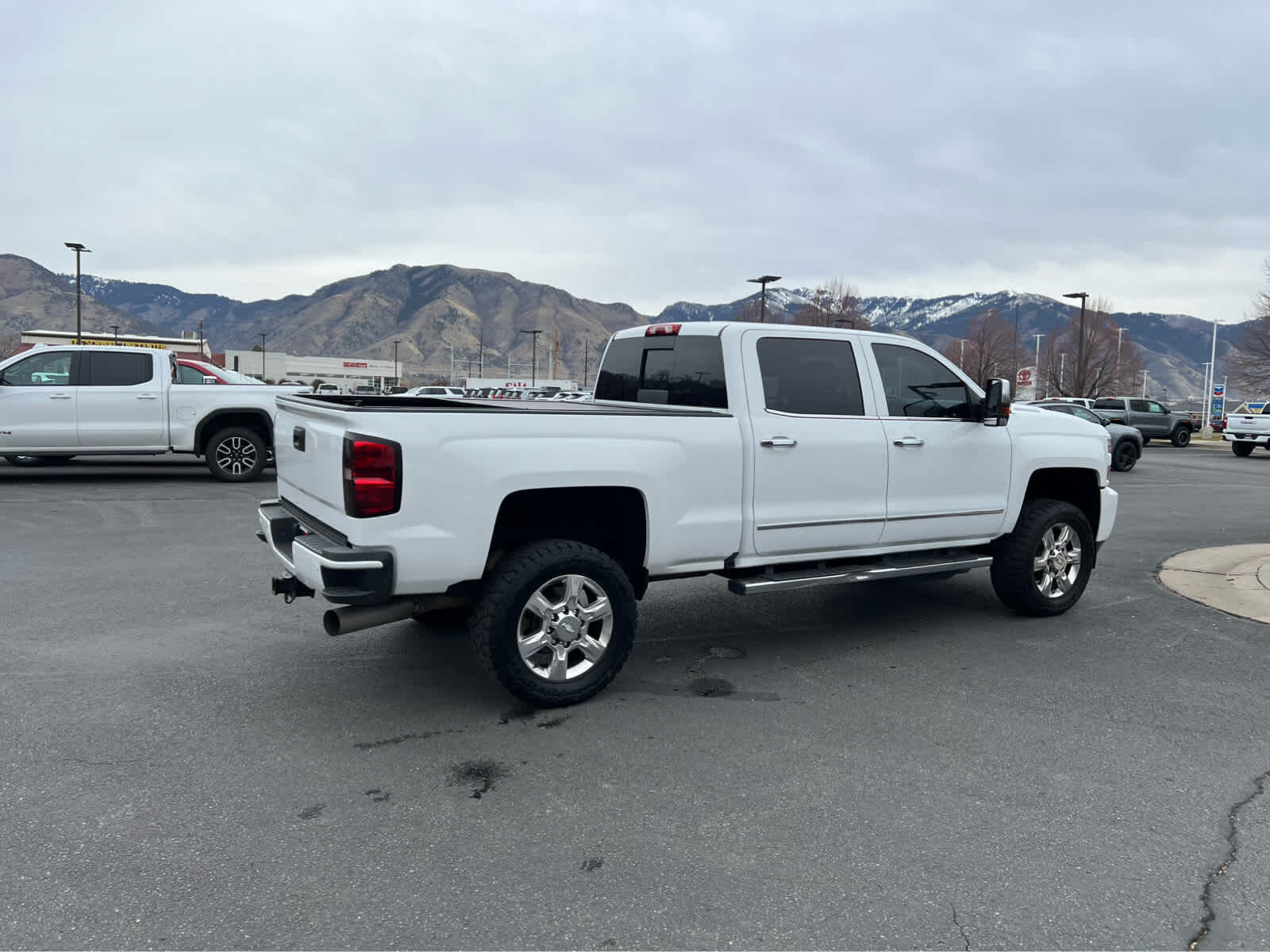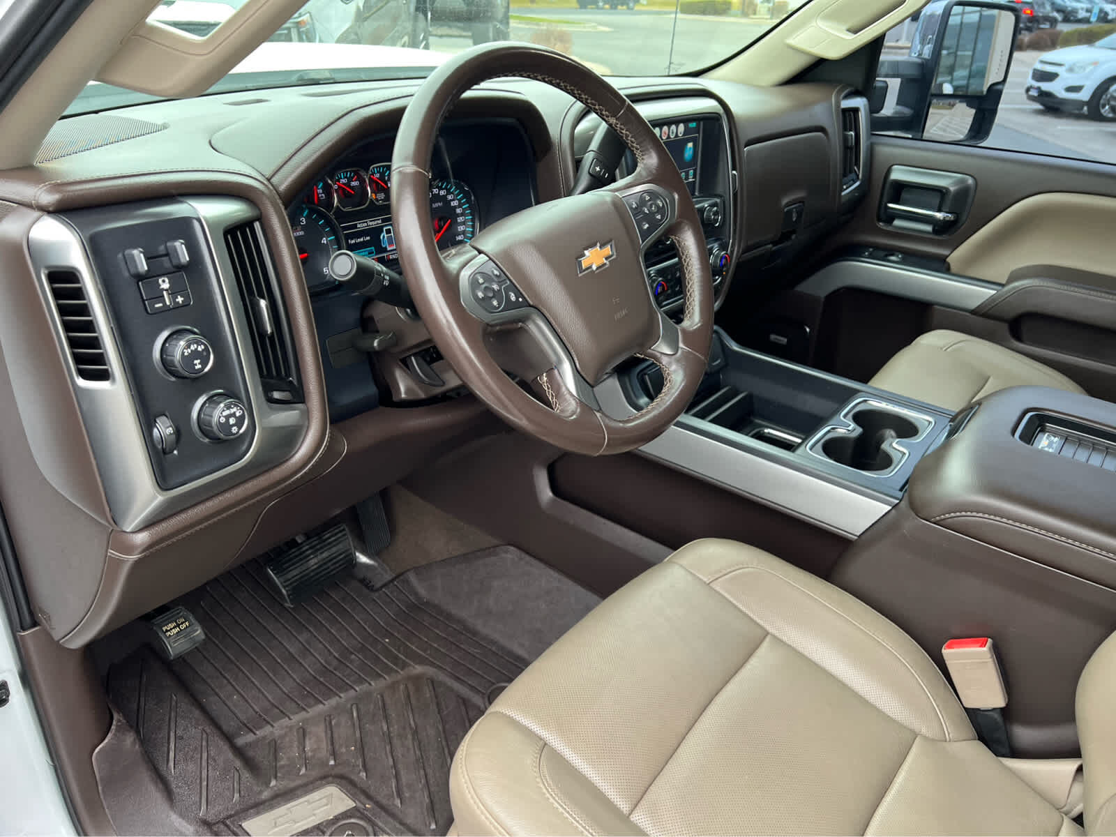 includes (AQC) Appearance Package, (UD5) front and rear park assist, (TC7) body-color grille with chrome bars, (VB5) body-color front bumper, (VT5) body-color rear bumper, (CGN) spray-on bedliner and (Q7R) 20 (50.8 cm) 6-spoke polished aluminum wheels on 1LZ. includes (UFL) Lane Departure Warning, (UEU) Forward Collision Alert, Safety Alert Seat and (UD5) Front and Rear Park Assist, LPO, ASSIST STEPS - 6 CHROMED RECTANGULAR, includes (JF4) power adjustable pedals, (UQA) Bose premium audio system, (UVD) heated steering wheel and (UD5) Front and Rear Park Assist, SEATING, HEATED AND VENTED PERFORATED LEATHER-APPOINTED FRONT BUCKET, with (KA1) heated seat cushions and seat backs. Includes 10-way power driver and front passenger seat adjusters, including 2-way power lumbar control, 2-position driver memory, adjustable head restraints, (D07) floor console, storage pockets and (K4C) Wireless charging. with seek-and-scan and digital clock, includes Bluetooth® streaming audio for music and select phones; USB ports; auxiliary jack; voice-activated technology for radio and phone; and Shop with the ability to browse, select and install apps to your vehicle. Apps include Pandora, iHeartRadio, The Weather Channel and more. Includes integrated turn signal indicators, consisting of 51 square inch flat mirror surface positioned over a 24.5 square inch convex mirror surface with a common head and lower convex spotter glass (convex glass is not heated and not power-adjustable) and addition of auxiliary cargo lamp for backing up (helps to see trailer when backing up with a trailer) and amber auxiliary clearance lamp, LPO, ALL-WEATHER FLOOR LINER, (445 hp [332 kW] @ 2800 rpm, 910 lb-ft of torque [1220 Nm] @ 1600 rpm) Includes capped fuel fill, (K40) exhaust brake and (K05) engine block heater. with overdrive, electronic engine grade braking and tow/haul mode, STEERING WHEEL, HEATED, LEATHER WRAPPED WITH AUDIO AND CRUISE CONTROLS.