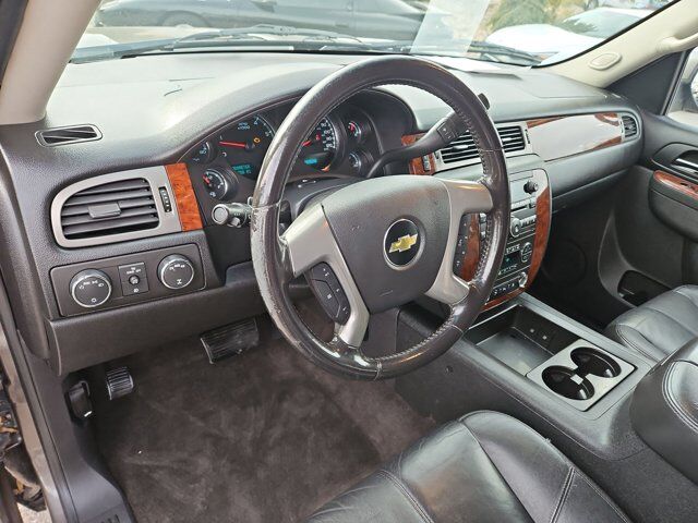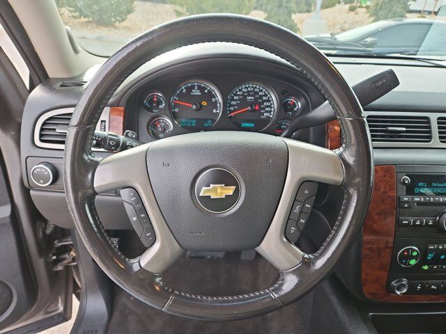 EBONY CUSTOM LEATHER-APPOINTED SEAT TRIM,MOCHA STEEL METALLIC,SEATS FRONT BUCKET WITH LEATHER-APPOINTED SEATING (AG1) 6-way power driver and (AG2) front passenger seat adjusters adjustable head restraints (AM1) driver manual lumbar control floor console and rear storage pockets (STD),REAR AXLE 3.08 RATIO,WHEELS 4 - 17 X 7.5 (43.2 CM X 19.1 CM) ALUMINUM 5-SPOKE WITH SMOOTH SURFACE AND RECTANGULAR POCKETS (STD),SEATS SECOND ROW 60/40 SPLIT-FOLDING BENCH 3-PASSENGER with center armrest with 2 cup holders (STD),TRANSMISSION 6-SPEED AUTOMATIC HEAVY-DUTY ELECTRONICALLY CONTROLLED WITH OVERDRIVE AND TOW/HAUL MODE (STD),AUDIO SYSTEM AM/FM STEREO WITH CD PLAYER AND MP3 PLAYBACK seek-and-scan digital clock auto-tone control Radio Data System (RDS) speed compensated volume TheftLock auxiliary input jack and USB port (STD),LICENSE PLATE BRACKET FRONT,SUSPENSION PACKAGE PREMIUM SMOOTH RIDE (STD),LT PREFERRED EQUIPMENT GROUP Includes Standard Equipment,TIRES P265/70R17 ALL-SEASON BLACKWALL (STD),ENGINE VORTEC 5.3L V8 SFI FLEXFUEL with Active Fuel Management capable of running on unleaded or up to 85% ethanol (with gas - 320 hp [238.6 kW] @ 5400 rpm 335 lb-ft of torque [452.2 N-m] @ 4000 rpm with E85 ethanol - 326 hp [243.1 kW] @ 5300 rpm 348 lb-ft of torque [469.8 N-m] @ 4400 rpm) iron block (STD),Locking/Limited Slip Differential,Four Wheel Drive,Tow Hitch,Tow Hooks,Power Steering,ABS,4-Wheel Disc Brakes,Aluminum Wheels,Tires - Front All-Season,Tires - Rear All-Season,Conventional Spare Tire,Luggage Rack,Luggage Rack,Running Boards/Side Steps,Automatic Headlights,Fog Lamps,Heated Mirrors,Power Mirror(s),Privacy Glass,Intermittent Wipers,AM/FM Stereo,CD Player,MP3 Capability,Auxiliary Audio Input,MP3 Capability,Auxiliary Audio Input,Premium Sound System,Rear Seat Audio Controls,Power Outlet,Satellite Radio,Requires Subscription,Bluetooth Connection,Power Driver Seat,Power Passenger Seat,Leather Seats,Bucket Seats,Driver Adjustable Lumbar,Pass-Through Rear Seat,Rear Bench Seat,Power Driver Seat,Power Passenger Seat,3rd Row Seat,Pass-Through Rear Seat,Rear Seat Audio Controls,Floor Mats,Adjustable Steering Wheel,Leather Steering Wheel,Cruise Control,Steering Wheel Audio Controls,Tire Pressure Monitor,Power Windows,Power Door Locks,Keyless Entry,Power Door Locks,Remote Engine Start,Cruise Control,Adjustable Pedals,Immobilizer,Climate Control,Multi-Zone A/C,A/C,Rear A/C,A/C,Rear A/C,Rear Defrost,Power Outlet,Driver Vanity Mirror,Passenger Vanity Mirror,Driver Illuminated Vanity Mirror,Passenger Illuminated Visor Mirror,Front Reading Lamps,Rear Reading Lamps,Traction Control,Stability Control,Daytime Running Lights,Driver Air Bag,Passenger Air Bag,Passenger Air Bag Sensor,Front Head Air Bag,Rear Head Air Bag,Front Side Air Bag,Telematics,Navigation from Telematics,Requires Subscription,Telematics,Requires Subscription,Telematics,Requires Subscription,Telematics,Navigation from Telematics,Requires Subscription,Rear Parking Aid