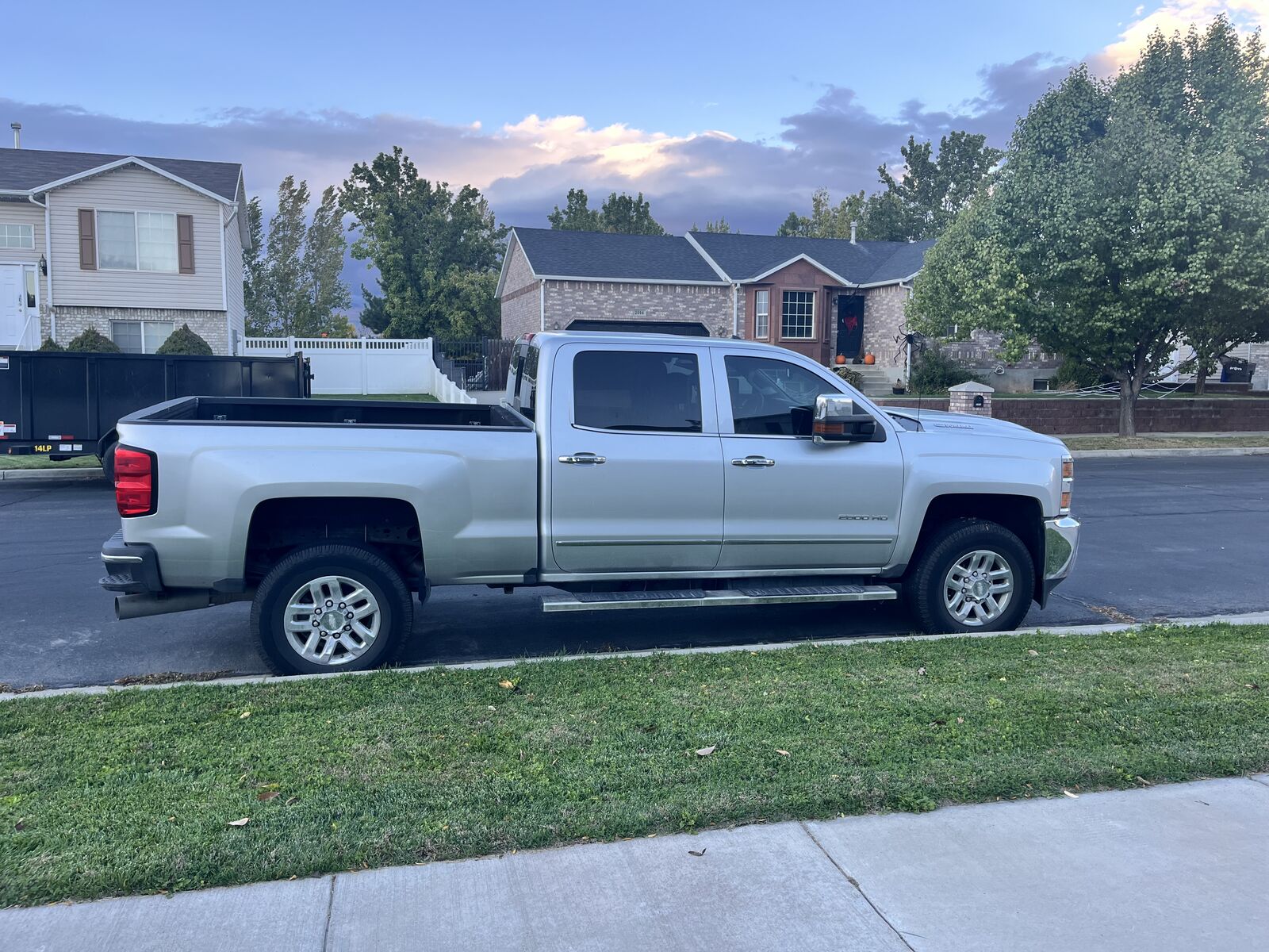 2019 Chevy Silverado 2500 Diesel. This truck is in excellent condition, it has so much life left in it! We used it to tow our 30 foot camper trailer for a couple years and it never had any issues, it handled it so well. We sold the trailer, so we don’t have a need for all the extra power any more. It has some small cosmetic scratches in the sides, but they don’t expose the metal. Interior is excellent, with lift up seats for storage in the back seat. It has a sprayed in bed liner, air suspension with a remote control, and it has remote start on the key fob. 112,000 miles.