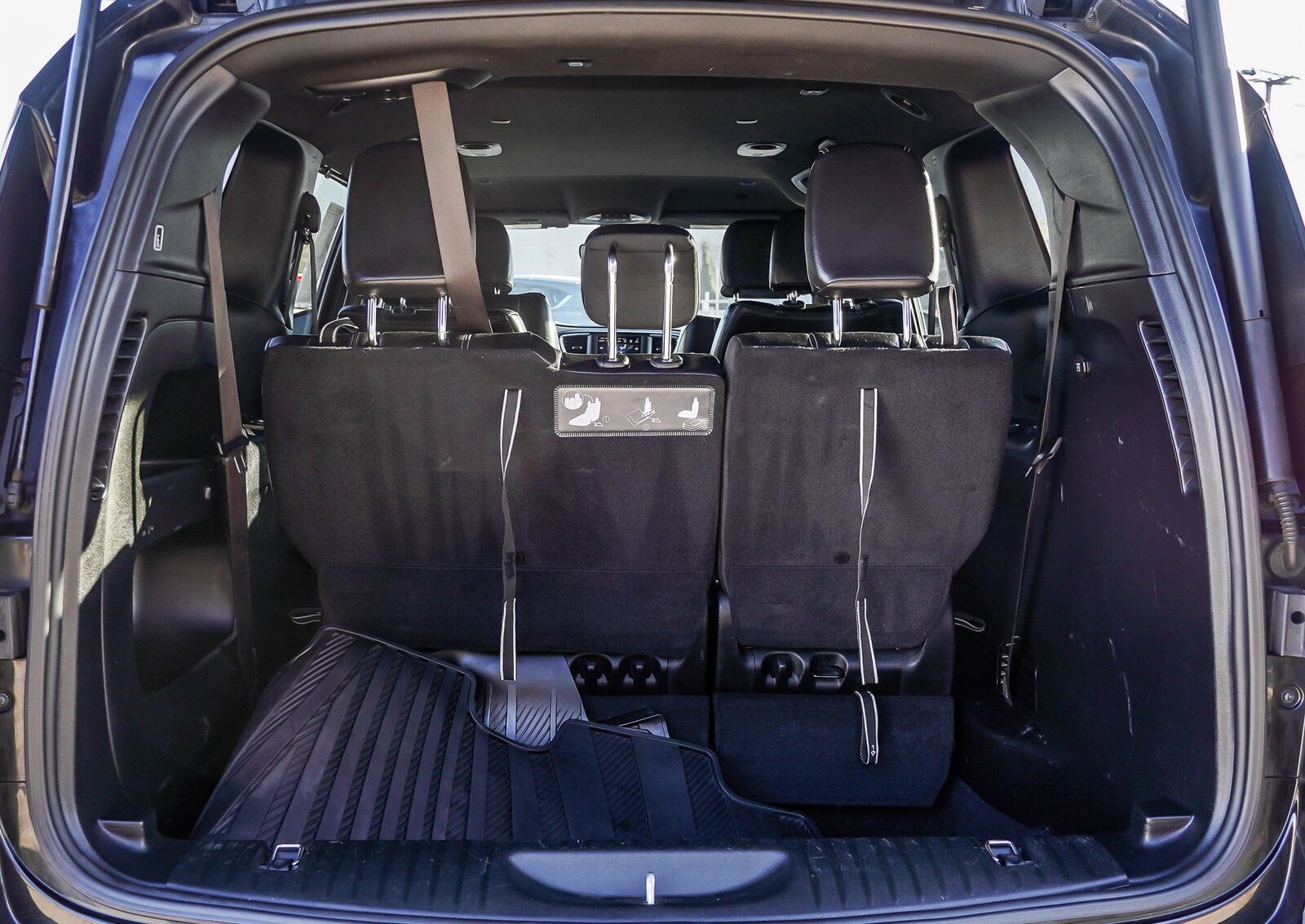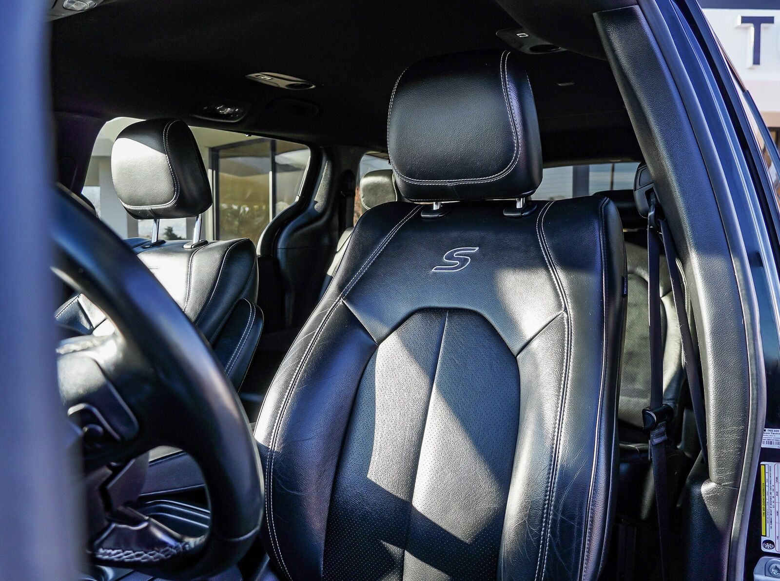 BRILLIANT BLACK CRYSTAL PEARLCOAT,WHEELS: 18 X 7.5 ALUMINUM BLACK NOISE,BLACK/BLACK/BLACK PERFORATED LEATHER BUCKET SEATS W/S LOGO -inc: light diesel gray stitching black headliner piano black accents and ice cave bezels,S APPEARANCE PACKAGE -inc: Black Badging Black Day Light Opening Moldings Premium Fascia Upper/Lower Grille w/Black Surround Black Stow N Place Roof Rack Wheels: 18 x 7.5 Aluminum Black Noise Black Chrysler Grille Wing Badge Body Color Door Handles Bridgestone Brand Tires Tires: 235/60R18 BSW AS (TV1) Black Spear Rear Fascia Applique S Badge,TRANSMISSION: 9-SPEED 948TE AUTOMATIC (STD),QUICK ORDER PACKAGE 27L -inc: Engine: 3.6L V6 24V VVT UPG I w/ESS Transmission: 9-Speed 948TE Automatic,TIRES: 235/60R18 BSW AS (TV1),BLACK SEATS,ENGINE: 3.6L V6 24V VVT UPG I W/ESS (STD),Front Wheel Drive,Power Steering,ABS,4-Wheel Disc Brakes,Brake Assist,Aluminum Wheels,Tires - Front All-Season,Tires - Rear All-Season,Heated Mirrors,Power Mirror(s),Rear Defrost,Privacy Glass,Intermittent Wipers,Variable Speed Intermittent Wipers,Rain Sensing Wipers,Rear Spoiler,Third Passenger Door,Fourth Passenger Door,Power Third Passenger Door,Power Fourth Passenger Door,Remote Trunk Release,Power Liftgate,Power Door Locks,Luggage Rack,Daytime Running Lights,Automatic Headlights,Fog Lamps,AM/FM Stereo,MP3 Capability,Auxiliary Audio Input,Steering Wheel Audio Controls,Auxiliary Audio Input,Satellite Radio,Requires Subscription,Power Driver Seat,Driver Adjustable Lumbar,Heated Front Seat(s),Power Driver Seat,Driver Adjustable Lumbar,Bucket Seats,Rear Bucket Seats,Adjustable Steering Wheel,Trip Computer,Power Windows,3rd Row Seat,Leather Steering Wheel,Heated Steering Wheel,Keyless Entry,Power Door Locks,Keyless Start,Keyless Entry,Power Door Locks,Universal Garage Door Opener,Cruise Control,A/C,Rear A/C,Climate Control,Multi-Zone A/C,A/C,Leather Seats,Bucket Seats,Driver Vanity Mirror,Passenger Vanity Mirror,Driver Illuminated Vanity Mirror,Passenger Illuminated Visor Mirror,Auto-Dimming Rearview Mirror,Floor Mats,Remote Engine Start,Keyless Start,Remote Engine Start,Smart Device Integration,Requires Subscription,MP3 Capability,Blind Spot Monitor,Cross-Traffic Alert,Rear Collision Mitigation,Smart Device Integration,Smart Device Integration,Bluetooth Connection,Power Windows,Power Door Locks,Trip Computer,Immobilizer,Security System,Traction Control,Stability Control,Traction Control,Front Side Air Bag,Rear Parking Aid,Telematics,Requires Subscription,Tire Pressure Monitor,Driver Air Bag,Passenger Air Bag,Front Head Air Bag,Rear Head Air Bag,Passenger Air Bag Sensor,Knee Air Bag,Child Safety Locks,Back-Up Camera