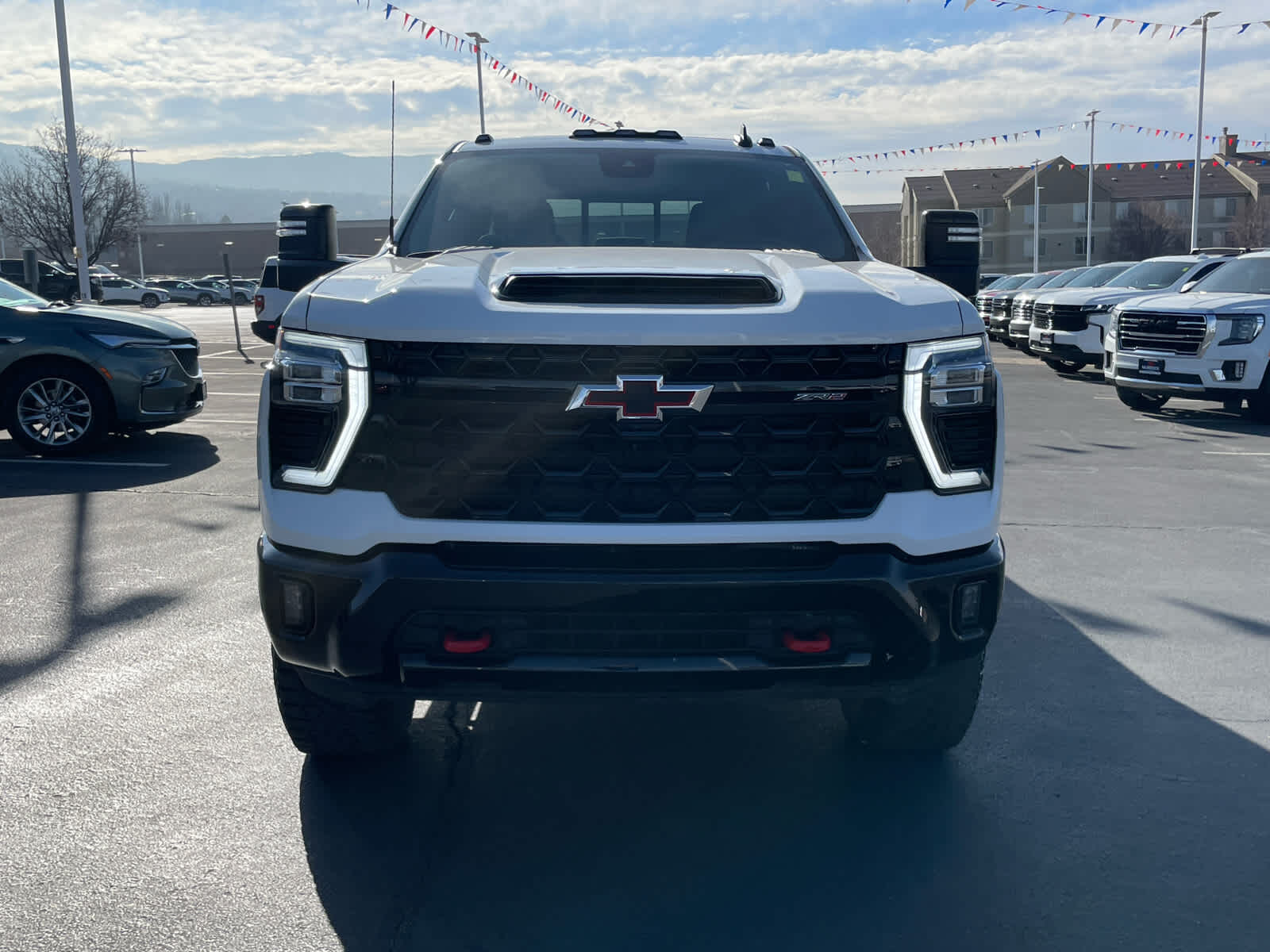 ENGINE, DURAMAX 6.6L TURBO-DIESEL V8: B20-Diesel compatible, (470 hp [350.5 kW] @ 2800 rpm, 975 lb-ft of torque [1322 Nm] @ 1600 rpm), TECHNOLOGY PACKAGE: includes (DRZ) Rear Camera Mirror and (UV6) Multicolor 15" Diagonal Head-Up Display (Includes (KSG) Adaptive Cruise Control.), SUNROOF, POWER: on Crew Cab models, GOOSENECK/5TH WHEEL PREP PACKAGE: Hitch platform to accept Gooseneck or 5th Wheel hitch. Includes hitch platform with tray to accept ball, stamped bed holes with removable caps installed and bed mounted 7-pin trailer harness (similar to UY2 harness). (Includes (CGN) Chevytec spray-on bedliner.), TAILGATE, MULTI-FLEX: with six functional load/access features, NOTE: Auto release can be disabled if ball hitch is installed. See Owner's manual for details, HIGH IDLE SWITCH.