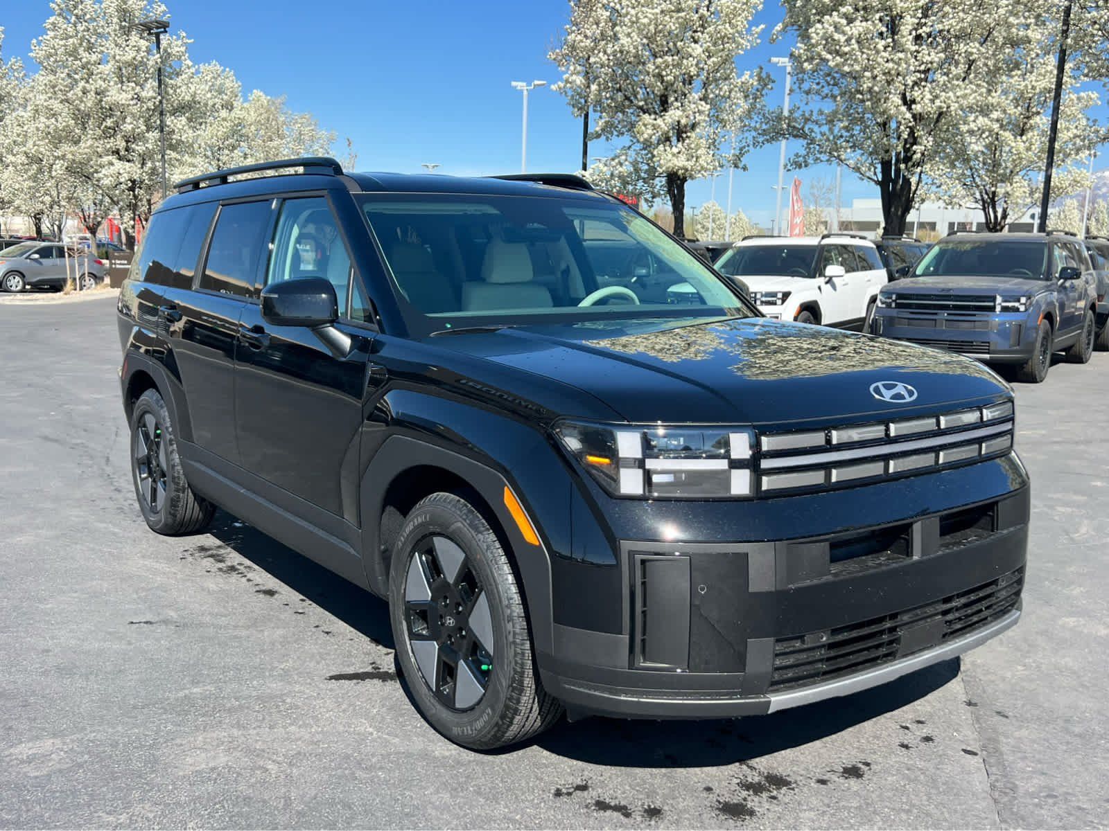 Third Row Seat, All Wheel Drive, Power Liftgate, Heated Driver Seat, Back-Up Camera, Turbocharged, Hybrid, Satellite Radio. Rear Spoiler, MP3 Player, Remote Trunk Release, Privacy Glass. Hyundai SEL with Phantom Black exterior and Gray interior features a 4 Cylinder Engine with 231 HP at 5500 RPM*.