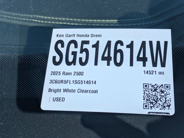 Ken Garff Honda is very proud to offer this wonderful-looking 2025 Ram 2500 Laramie in Bright White Clearcoat.Garff Certified Pre-Owned Certified, 10 Speakers, 115V Auxiliary Rear Power Outlet, 2 Way Rear Headrest Seat, 2nd Row In Floor Storage Bins, 4 Way Front Headrests, 4-Wheel Disc Brakes, 4G LTE Wi-Fi Hot Spot, 5th Wheel/Gooseneck Towing Prep Group, ABS brakes, Air Conditioning, Alexa Built-In, Alloy wheels, AM/FM radio: SiriusXM with 360L, Anti-Spin Differential Rear Axle, Apple CarPlay, Apple CarPlay/Android Auto, Auto Adjust In Reverse Exterior Mirrors, Auto Dim Exterior Mirror, Auto High Beam Headlamp Control, Auto Power-Folding Mirrors, Auto-Dimming Exterior Passenger Mirror, Auto-dimming Rear-View mirror, Automatic temperature control, Black Wheel Center Hub, Brake assist, Bumpers: body-color, Chrome Exterior Mirrors, Compass, Connected Travel & Traffic Services, Connectivity - US/Canada, Delay-off headlights, Disassociated Touchscreen Display, Driver door bin, Driver vanity mirror, Dual front impact airbags, Dual front side impact airbags, Electronic Stability Control, Emergency Vehicle Alert System (EVAS), Exterior Mirrors Courtesy Lamps, Exterior Mirrors w/Heating Element, Exterior Mirrors w/Memory, Exterior Mirrors w/Supplemental Signals, Foam Bottle Insert (Door Trim Panel), Folding Flat Load Floor Storage, Forward & Reverse Utility Lights, Front anti-roll bar, Front Center Armrest w/Storage, Front dual zone A/C, Front fog lights, Front License Plate Bracket, Front reading lights, Front Seat Back Map Pockets, Fully automatic headlights, Garage door transmitter, Global Telematics Box Module (TBM), Google Android Auto, GPS Antenna Input, HD Radio, Heated door mirrors, Heated Front Seats, Heated front seats, Heated Steering Wheel, Heated steering wheel, High Back Seats, Illuminated entry, Integrated Voice Command w/Bluetooth, Laramie Level 1 Equipment Group, Leather Trim 40/20/40 Bench Seat, Low tire pressure warning, Manufacturer's Statement of Origin, Mirror Running Lights, Navigation System, Occupant sensing airbag, Outside temperature display, Overhead airbag, Overhead console, Panic alarm, ParkView Rear Back-Up Camera, Passenger door bin, Passenger vanity mirror, Power 2-Way Driver Lumbar Adjust, Power 2-Way Passenger Lumbar Adjust, Power Adjust 8-Way Driver Seat, Power Adjust 8-Way Front Passenger Seat, Power Adjust Mirrors, Power Adjustable Convex Aux Mirrors, Power Adjustable Pedals w/Memory, Power door mirrors, Power driver seat, Power Heated Fold Telescopic Mirrors w/Memory, Power passenger seat, Power steering, Power Telescoping Mirrors, Power windows, Quick Order Package 24H Laramie, Radio data system, Radio: Uconnect 5 Nav w/12.0 Display, Rain Sensitive Windshield Wipers, Rear 60/40 Folding Seat, Rear anti-roll bar, Rear reading lights, Rear seat center armrest, Rear step bumper, Rear window defroster, Remote keyless entry, Remote Tailgate Release, Security system, Selectable Tire Fill Alert, SiriusXM Radio Service, Speed control, Split folding rear seat, Steering wheel mounted audio controls, Tachometer, Tilt steering wheel, Traction control, Trip computer, Turn signal indicator mirrors, Variably intermittent wipers, Voltmeter, Wheels: 18 x 8.0 Diam Cut Alum w/Blk Pt Pock.Certification Program Details: 118 point vehicle inspection 3 month / 3,000 miles comprehensive limited warranty with a $0 deductible Complementary vehicle history report GarffCARE roadside assistance Powertrain extending additives: Engine deposit cleaning additive Transmission conditioning additive Fuel system cleaner Cooling-system treatment Artic Blast A/C treatment Power steering fluid conditioner Second key and remote Free home delivery available No hassle return/exchange for 5-days or 500 milesIn addition to transparent, no hassle pricing and upfront no hassle trade evaluation.....We provide an enjoyably brief and easy Sales Experience...Your Pace...You