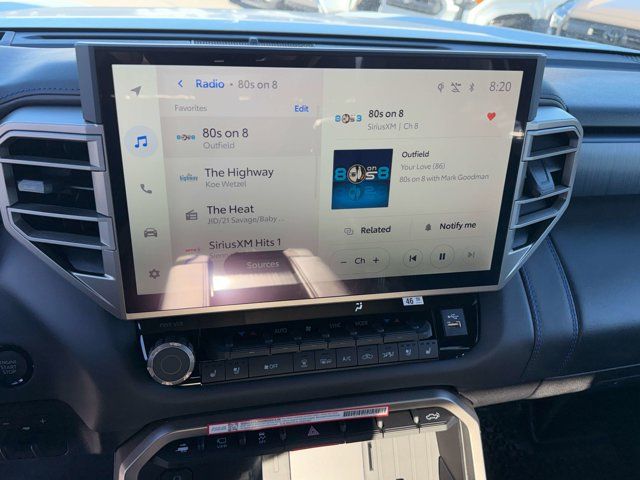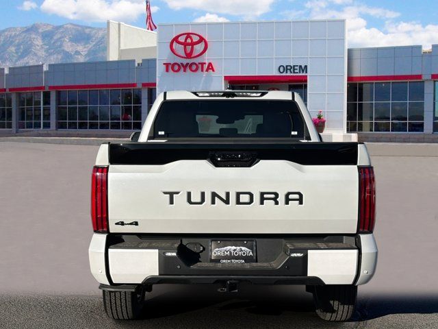 Our 2026 Toyota Tundra Platinum CrewMax 4X4 is rugged, refined, and ready for action in Wind Chill Pearl! Powered by a Twin-TurboCharged 3.4 Liter i-FORCE MAX V6 and an Electric Motor delivering a combined 437hp to a 10 Speed Automatic transmission engineered for hard work. This Four Wheel Drive truck inspires confidence with its responsive suspension, and it sees nearly 23mpg on the highway. Designed to dominate, our Tundra turns heads with a panoramic sunroof, premium LED lighting, fog lamps, a dark chrome grille, gloss black accents, multifunction mirrors, a 120V/400W outlet, and a stamped tailgate with a bump-switch release.Lavish luxury awaits in our Platinum cabin, which features heated/ventilated leather front and rear seats, a heated leather power steering wheel, dual-zone automatic climate control, a power rear window, keyless access/ignition, and a soft-touch instrument panel. A 12.3-inch driver display and 14-inch touchscreen set the stage for digital driving with WiFi compatibility, wireless Apple CarPlay®/Android Auto®, Bluetooth®, wireless charging, and a JBL sound system.Toyota's terrific safety technologies include blind-spot monitoring, front/rear auto braking, adaptive cruise control, lane-keeping assistance, a panoramic view monitor, a digital rearview mirror, and more. Intense and intelligent, our Tundra Platinum helps drivers work hard and play harder! Save this Page and Call for Availability. We Know You Will Enjoy Your Orem Toyota Test Drive Towards Ownership! May not represent actual vehicle. (Options, colors, trim and body style may vary) Excludes tax, tag, title and registration. Purchase offer does not include $499 Doc fee. Vehicle stock images represent trim level only.