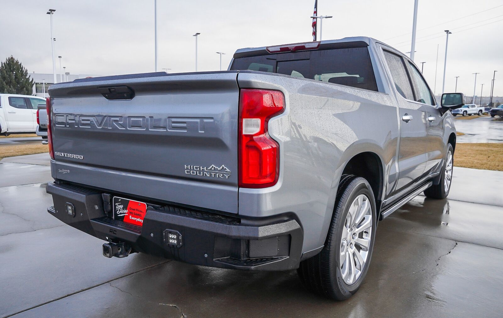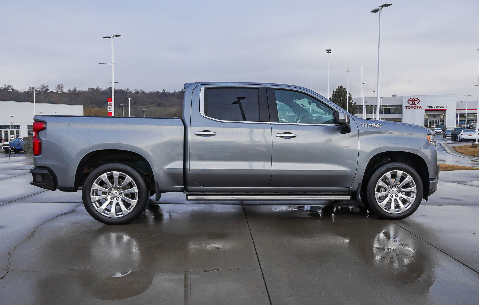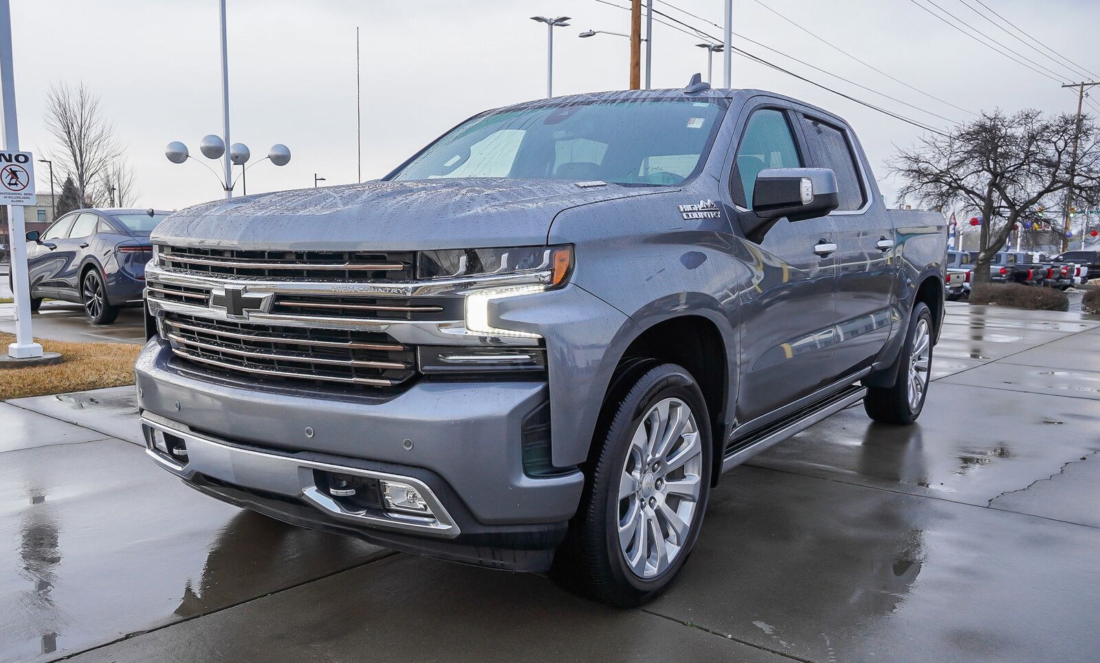 ADAPTIVE CRUISE CONTROL,SATIN STEEL METALLIC,INTELLIBEAM AUTOMATIC HIGH BEAM ON/OFF,FRONT PEDESTRIAN BRAKING,FOLLOWING DISTANCE INDICATOR,REAR AXLE 3.23 RATIO,WHEELS 22 X 9 (55.9 CM X 22.9 CM) POLISHED ALUMINUM,LICENSE PLATE KIT FRONT,JET BLACK PERFORATED LEATHER-APPOINTED SEAT TRIM,SAFETY ALERT SEAT,ENGINE DURAMAX 3.0L TURBO-DIESEL I6 (277 hp [206.6 kW] @ 3750 rpm 460 lb-ft of torque [623.7 N-m] @ 1500 rpm) (Includes (KW5) 220-amp alternator and (K05) engine block heater.),LPO BLACK BOWTIE EMBLEM FRONT (dealer-installed) When ordered with (QK2) Multi-Flex tailgate will include Black tailgate bowtie.),GVWR 7200 LBS. (3266 KG),SEATS HEATED SECOND ROW OUTBOARD SEATS (Standard on models built before 7-26-2021. Certain vehicles built on or after 7-26-2021 will include (RFU) Not Equipped with Heated Second Row Outboard Seats which removes (KA6) Heated Second Row Outboard Seats. See dealer for details.),ENGINE BLOCK HEATER,SAFETY PACKAGE II includes (UEU) Forward Collision Alert (UHX) Lane Keep Assist with Lane Departure Warning (UHY) Automatic Emergency Braking (UKJ) Front Pedestrian Braking (TQ5) IntelliBeam headlamps (UE4) Following Distance Indicator (KSG) Adaptive Cruise Control and (HS1) Safety Alert Seat,HIGH COUNTRY PREFERRED EQUIPMENT GROUP includes standard equipment,LANE KEEP ASSIST WITH LANE DEPARTURE WARNING,SEATS FRONT BUCKET with center console (STD),BED VIEW CAMERA camera in the CHMSL to show a view of the cargo bed includes Two Trailer Camera Provisions,SUSPENSION ADAPTIVE RIDE CONTROL,AUDIO SYSTEM CHEVROLET INFOTAINMENT 3 PREMIUM SYSTEM WITH CONNECTED NAVIGATION 8 diagonal HD color touchscreen AM/FM stereo Bluetooth audio streaming for 2 active devices wireless Apple CarPlay and Android Auto capable enhanced voice recognition additional memory for in-vehicle apps cloud connected personalization for select infotainment and vehicle settings. Subscription required for enhanced and connected services after trial period. (STD),SUNROOF POWER on Crew Cab models,AUTOMATIC EMERGENCY BRAKING,TRANSMISSION 10-SPEED AUTOMATIC ELECTRONICALLY CONTROLLED with overdrive and tow/haul mode. Includes Cruise Grade Braking and Powertrain Grade Braking (STD) Most vehicles built on or after 6-7-2021 with a V8 engine and (MQB) 10-speed automatic transmission will have (NSS) Not Equipped with Automatic Stop/Start which removes Automatic Stop/Start and its content.),ALTERNATOR 220 AMPS,LPO WHEEL LOCKS SET OF 4 (dealer-installed),ASSIST STEPS POWER-RETRACTABLE with rearward articulating (providing bed access),TIRES 275/50R22SL ALL-SEASON BLACKWALL,FORWARD COLLISION ALERT,Tow Hitch,Locking/Limited Slip Differential,Four Wheel Drive,Tire Pressure Monitor,Power Steering,ABS,4-Wheel Disc Brakes,Aluminum Wheels,Tires - Front All-Terrain,Tires - Rear All-Terrain,Tires - Front All-Season,Tires - Rear All-Season,Running Boards/Side Steps,Tow Hooks,Bed Liner,Daytime Running Lights,Fog Lamps,Heated Mirrors,Power Mirror(s),Mirror Memory,Power Folding Mirrors,Privacy Glass,AM/FM Stereo,Navigation System,MP3 Capability,Bluetooth Connection,Auxiliary Audio Input,Smart Device Integration,HD Radio,Satellite Radio,Requires Subscription,Satellite Radio,Requires Subscription,Premium Sound System,Bluetooth Connection,Smart Device Integration,Bluetooth Connection,WiFi Hotspot,Bucket Seats,Leather Seats,Power Driver Seat,Driver Adjustable Lumbar,Power Passenger Seat,Passenger Adjustable Lumbar,Heated Front Seat(s),Heated Front Seat(s),Cooled Front Seat(s),Mirror Memory,Seat Memory,Pass-Through Rear Seat,Rear Bench Seat,Floor Mats,Floor Mats,Leather Steering Wheel,Heated Steering Wheel,Steering Wheel Audio Controls,Adjustable Steering Wheel,Power Windows,Power Windows,Rear Defrost,Sliding Rear Window,Power Door Locks,Remote Engine Start,Keyless Entry,Power Door Locks,Keyless Start,Universal Garage Door Opener,Cruise Control,Security System,Power Outlet,MP3 Capability,Auxiliary Audio Input,MP3 Capability,Auxiliary Audio Input,Power Outlet,Climate Control,Multi-Zone A/C,A/C,A/C,Rear A/C,Rear Defrost,Auto-Dimming Rearview Mirror,Traction Control,Stability Control,Daytime Running Lights,Driver Air Bag,Passenger Air Bag,Front Side Air Bag,Front Head Air Bag,Rear Head Air Bag,Passenger Air Bag Sensor,Telematics,Requires Subscription,Rear Parking Aid,Back-Up Camera,Back-Up Camera,Cross-Traffic Alert,Blind Spot Monitor,Driver Restriction Features,Tire Pressure Monitor