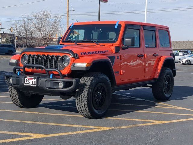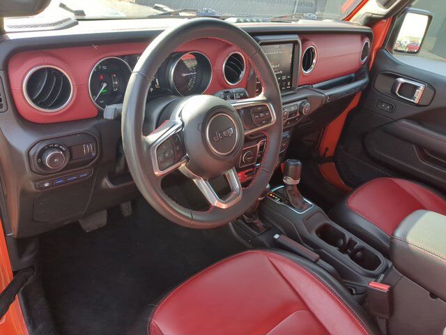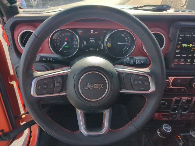 TRANSMISSION: 8-SPEED AUTO 8P75PH PHEV (STD),QUICK ORDER PACKAGE 29T RUBICON 20TH ANNIVERSARY -inc: Engine: 2.0L I4 DOHC DI Turbo PHEV Transmission: 8-Speed Auto 8P75PH PHEV Rubicon 20th Anniversary Steel Front Bumper Steel Rear Bumper Rubicon 20th Anniversary Shifter Medallion Rubicon 20th Anniversary Swing Gate Plaque Leather Wrapped Shift Knob Class II Receiver Hitch 700 Amp Maintenance Free Battery 7 & 4 Pin Wiring Harness Auxiliary Switches Premium Door Trim Panel MOPAR 3 Bar Bumper Hoop Rubicon 20th Anniversary Grille Red Seat Belt #1 Seat Foam Cushion Rubicon 20th Anniversary Side Hood Decal 4xe MOPAR HD Rock Slider w/Step Assist Premium Wrapped Red I/P Bezels Red Interior Accents MOPAR Rubicon 20th Anniversary Tool Kit Leather Wrapped Park Brake Handle Rubicon 20th Anniversary Top Hood Decal 4xe,ENGINE: 2.0L I4 DOHC DI TURBO PHEV (STD),RED/BLACK NAPPA LEATHER SEATS,MANUFACTURER'S STATEMENT OF ORIGIN,BODY COLOR 3-PIECE HARD TOP -inc: Freedom Panel Storage Bag Rear Window Defroster Rear Window Wiper/Washer,PUNKN METALLIC CLEARCOAT,BODY COLOR RUBICON HIGHLINE FLARE,FRONT LICENSE PLATE BRACKET,Turbocharged,Four Wheel Drive,Locking/Limited Slip Differential,Locking/Limited Slip Differential,Power Steering,ABS,4-Wheel Disc Brakes,Brake Assist,Locking/Limited Slip Differential,Brake Actuated Limited Slip Differential,Lithium Ion Traction Battery,Aluminum Wheels,Tires - Front All-Terrain,Tires - Rear All-Terrain,Conventional Spare Tire,Tow Hooks,Tow Hooks,Heated Mirrors,Power Mirror(s),Privacy Glass,Intermittent Wipers,Variable Speed Intermittent Wipers,Rollover Protection Bars,Convertible Soft Top,Running Boards/Side Steps,Power Door Locks,Daytime Running Lights,Automatic Headlights,LED Headlights,Fog Lamps,AM/FM Stereo,Navigation System,Satellite Radio,Bluetooth Connection,HD Radio,Requires Subscription,Premium Sound System,MP3 Capability,Steering Wheel Audio Controls,Auxiliary Audio Input,Premium Sound System,Bluetooth Connection,Driver Adjustable Lumbar,Driver Adjustable Lumbar,Pass-Through Rear Seat,Rear Bench Seat,Adjustable Steering Wheel,Trip Computer,Power Windows,WiFi Hotspot,Keyless Entry,Power Door Locks,Keyless Start,Keyless Entry,Power Door Locks,Universal Garage Door Opener,Cruise Control,Climate Control,Multi-Zone A/C,A/C,Auto-Dimming Rearview Mirror,Driver Vanity Mirror,Passenger Vanity Mirror,Driver Illuminated Vanity Mirror,Passenger Illuminated Visor Mirror,Floor Mats,Navigation System,Smart Device Integration,Power Windows,Power Door Locks,Trip Computer,Security System,Immobilizer,Traction Control,Stability Control,Traction Control,Front Side Air Bag,Telematics,Requires Subscription,Tire Pressure Monitor,Driver Air Bag,Passenger Air Bag,Passenger Air Bag Sensor,Child Safety Locks,Back-Up Camera