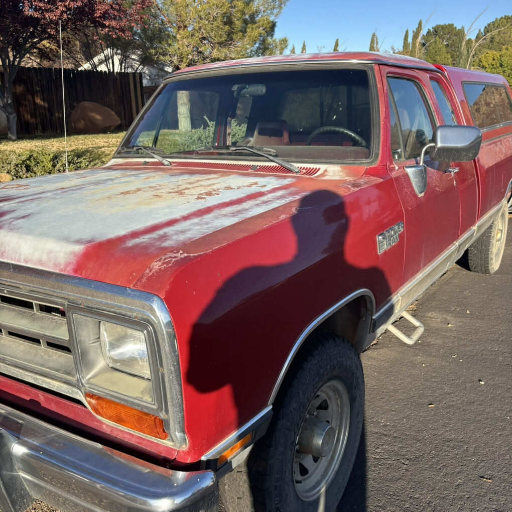 Dodge W250 LE trim Clubcab 4X4 with a V8 360 gas engine and automatic transmission. Equipped with power doors, power locks, cruise control air conditioning. Starts right up everytime and run as it should. Additionally, comes with snug top camper shell and bed liner. Lots of new parts.