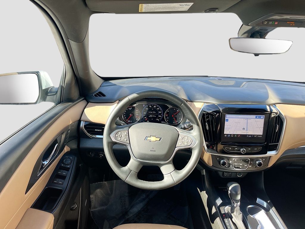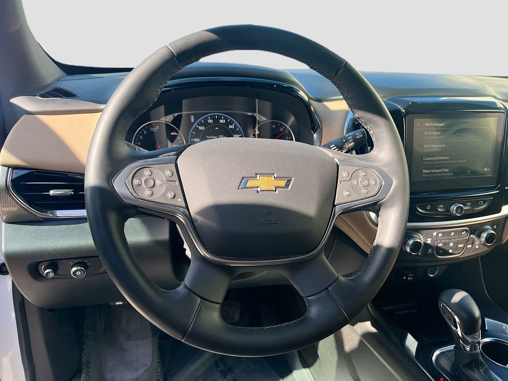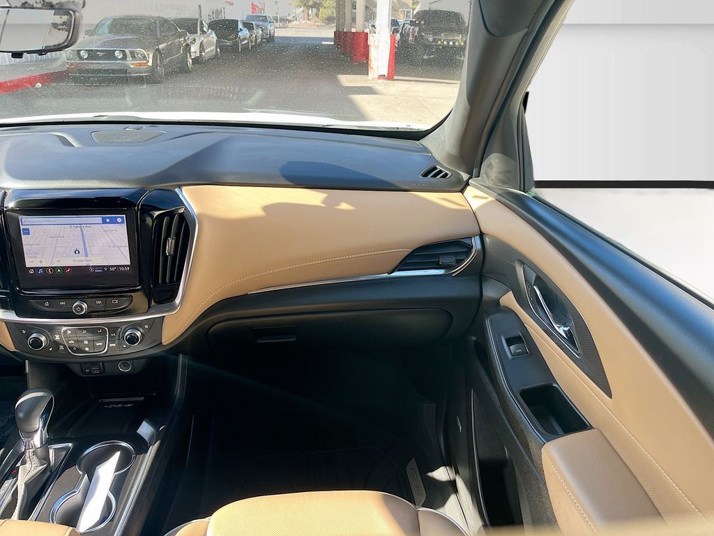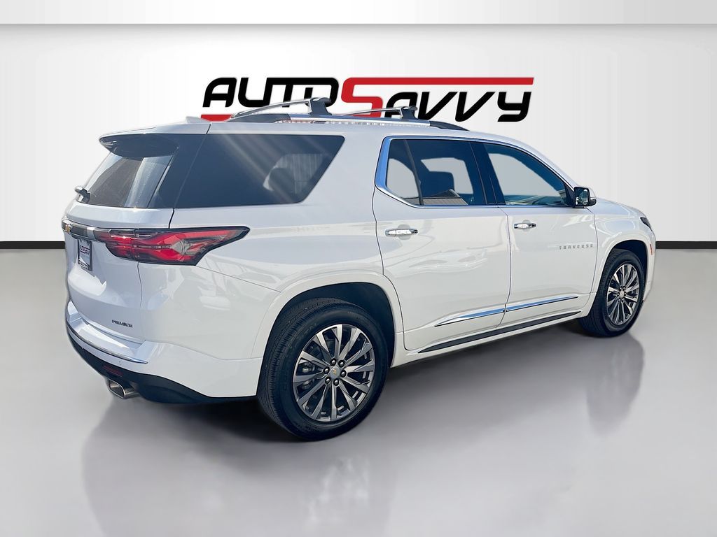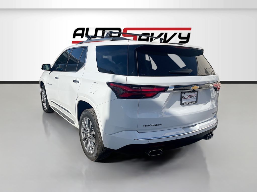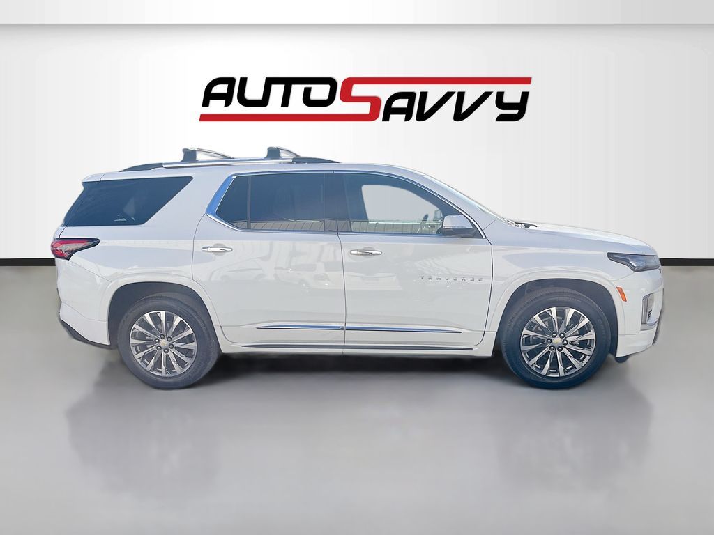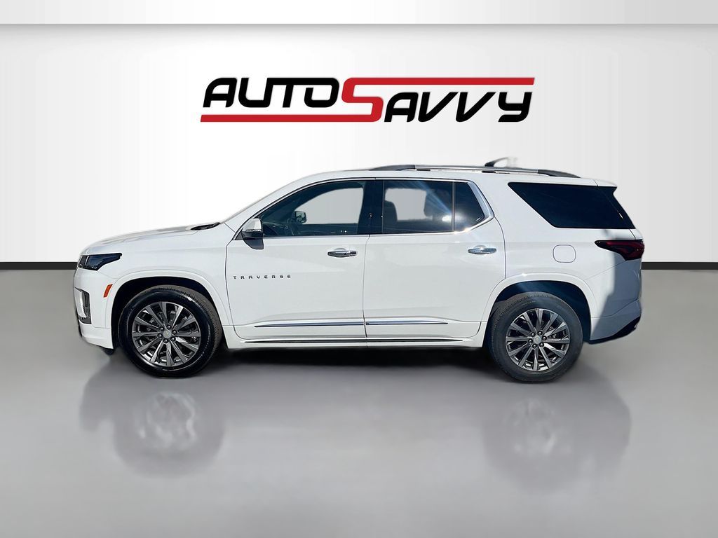 Explore the 2023 Chevrolet Traverse Premier at AutoSavvy Las Vegas, an SUV that blends luxury with performance. This Summit White beauty, with a low mileage of just 15,674 miles, is powered by a robust 3.6L V6 SIDI VVT engine paired with a smooth 9-speed automatic transmission. The Traverse Premier is packed with premium features including a Dual SkyScape 2-Panel Power Sunroof, Bose Premium 10-Speaker Audio System, and a Chevrolet Infotainment 3 Plus System with Navigation. Comfort is paramount with heated and ventilated front seats, a heated steering wheel, and third-row seating, all wrapped in luxurious Jet Black/Maple Sugar leather. The current status of the title is branded, reflecting AutoSavvy's commitment to transparency. As a Savvy Certified vehicle, this Traverse comes with the assurance of our 4-month/4,500 Mile Warranty, offering peace of mind for your investment. At AutoSavvy Las Vegas, we pride ourselves on delivering high-quality vehicles and exceptional customer service. Whether you're navigating city streets or embarking on a family adventure, the 2023 Chevrolet Traverse Premier is engineered to elevate your driving experience. Visit us today to explore this remarkable SUV and discover why AutoSavvy is the smart choice for your next vehicle.