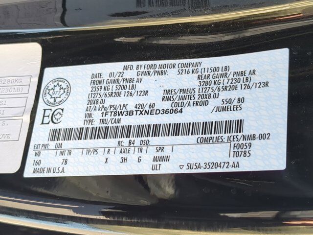 ENGINE: 6.7L 4V OHV POWER STROKE V8 TURBO DIESEL B20 -inc: manual push-button engine-exhaust braking and intelligent oil-life monitor 240 Amp Alternator (67D) 34 Gallon Fuel Tank GVWR: 11 500 lb Payload Package 3.31 Axle Ratio Dual 78-AH 750 CCA Batteries,Four Wheel Drive,Tow Hitch,Power Steering,ABS,4-Wheel Disc Brakes,Brake Assist,Aluminum Wheels,Tires - Front All-Terrain,Tires - Rear All-Terrain,Tow Hooks,Heated Mirrors,Power Mirror(s),Integrated Turn Signal Mirrors,Power Folding Mirrors,Rear Defrost,Privacy Glass,Intermittent Wipers,Variable Speed Intermittent Wipers,Rain Sensing Wipers,Integrated Tailgate Step,Running Boards/Side Steps,Power Retractable Running Boards,Automatic Highbeams,Fog Lamps,Daytime Running Lights,Automatic Headlights,LED Headlights,AM/FM Stereo,Premium Sound System,Steering Wheel Audio Controls,Auxiliary Audio Input,Passenger Adjustable Lumbar,Adjustable Steering Wheel,WiFi Hotspot,Leather Steering Wheel,Heated Steering Wheel,Universal Garage Door Opener,Cruise Control,Adaptive Cruise Control,Climate Control,Multi-Zone A/C,A/C,Power Driver Seat,Power Passenger Seat,Leather Seats,Bucket Seats,Heated Front Seat(s),Cooled Front Seat(s),Seat-Massage,Auto-Dimming Rearview Mirror,Driver Vanity Mirror,Passenger Vanity Mirror,Driver Illuminated Vanity Mirror,Passenger Illuminated Visor Mirror,Floor Mats,Navigation System,Adjustable Pedals,Immobilizer,Security System,Stability Control,Front Side Air Bag,Blind Spot Monitor,Cross-Traffic Alert,Front Collision Mitigation,Rear Parking Aid,Lane Departure Warning,Aerial View Display System,Driver Monitoring,Tire Pressure Monitor,Driver Restriction Features,Front Head Air Bag,Rear Head Air Bag,Driver Air Bag,Passenger Air Bag,Child Safety Locks,Back-Up Camera