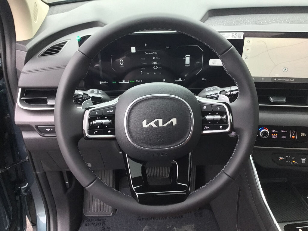 2026 Kia Carnival Hybrid SX — Pocatello, ID. This striking family hauler combines efficiency and premium comfort with a 4-cylinder, 1.6L Full Hybrid Electric (FHEV) powertrain and FWD for smooth, economical drives around town and on long highway trips. Packed with advanced features, the Kia Carnival Hybrid SX offers Hands Free Bluetooth for seamless connectivity, a Back-Up Camera for confident parking, and Collision Avoidance technology to help keep your passengers safe.