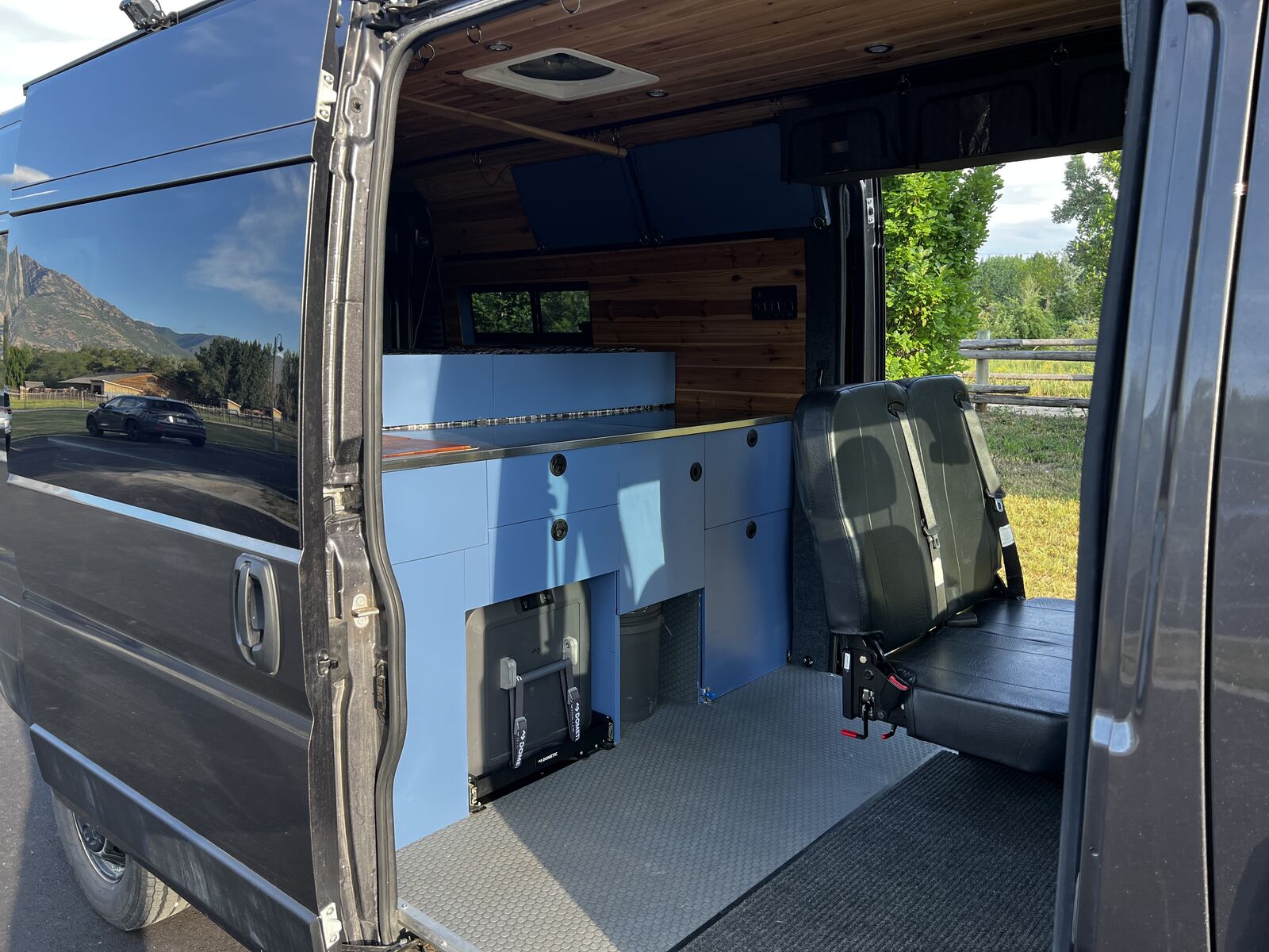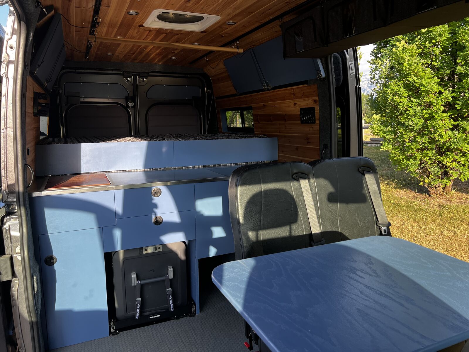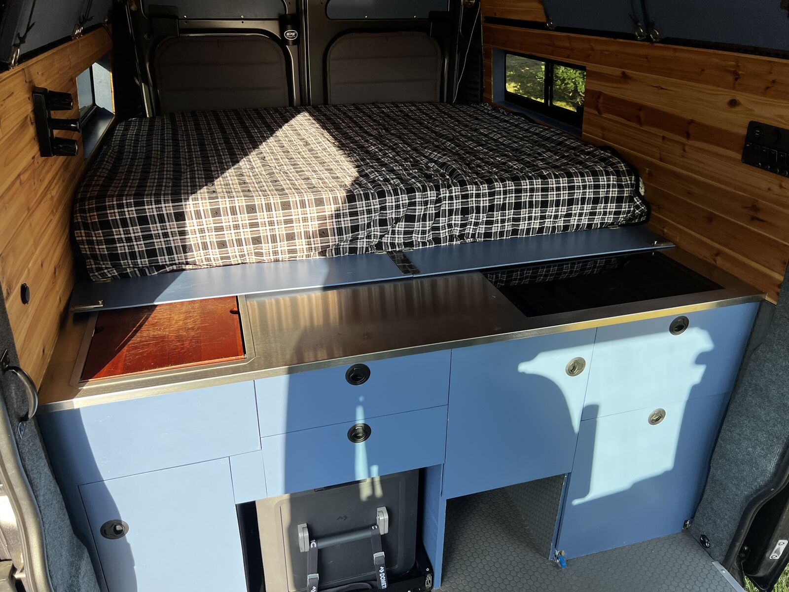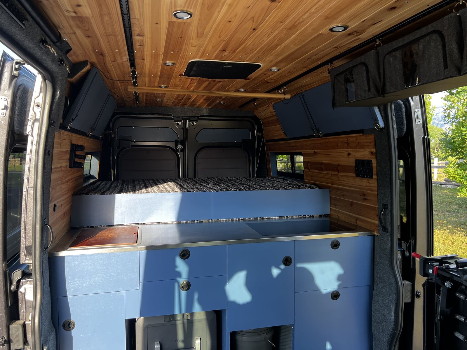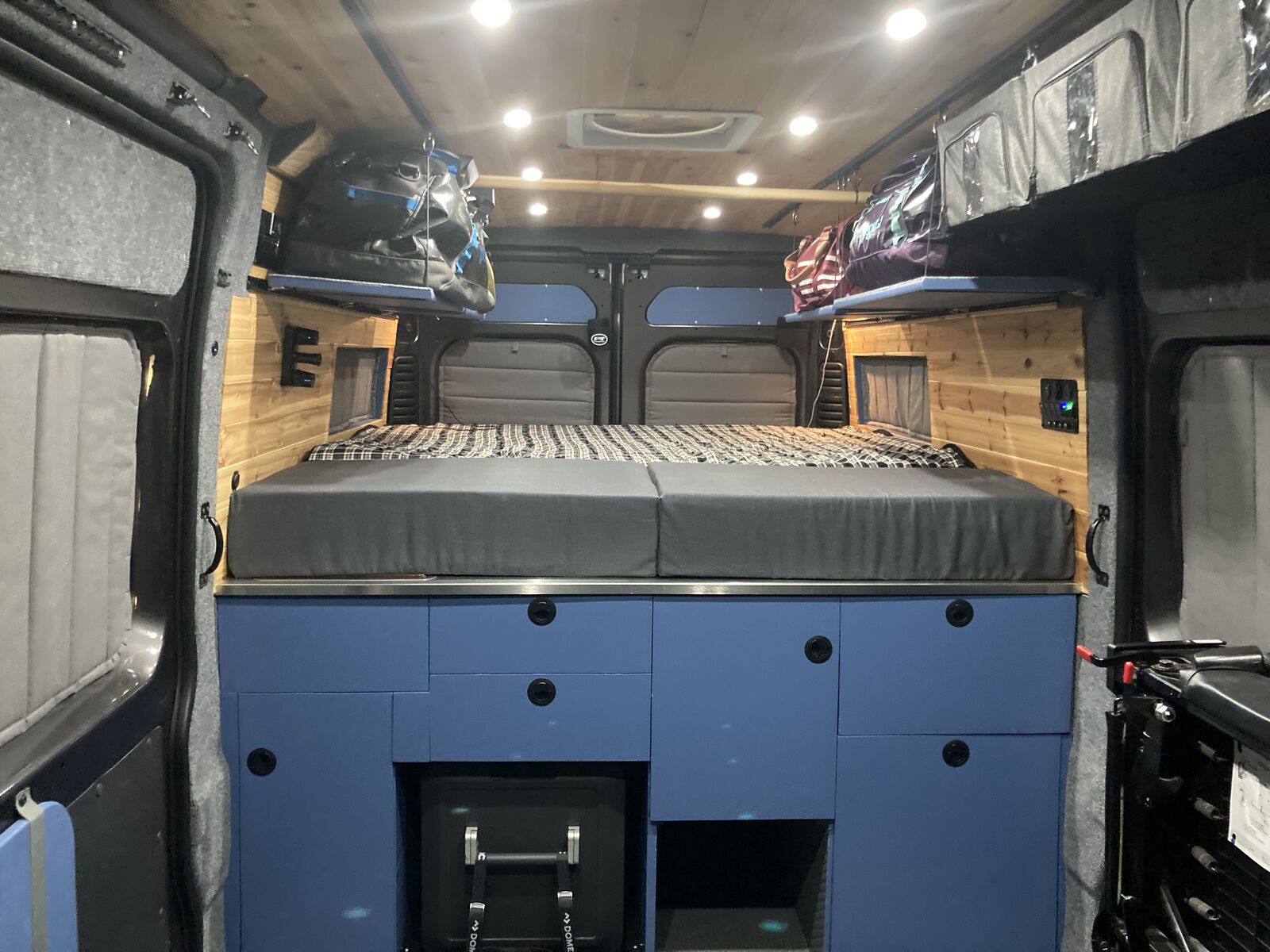 I wanted to try a unique design for this build different from the classic narrow “hallway” you see in the vast majority of van builds. This design really mixes things up and makes for a huge open floor plan and a massive very comfortable king bed! ready to go on any adventure!