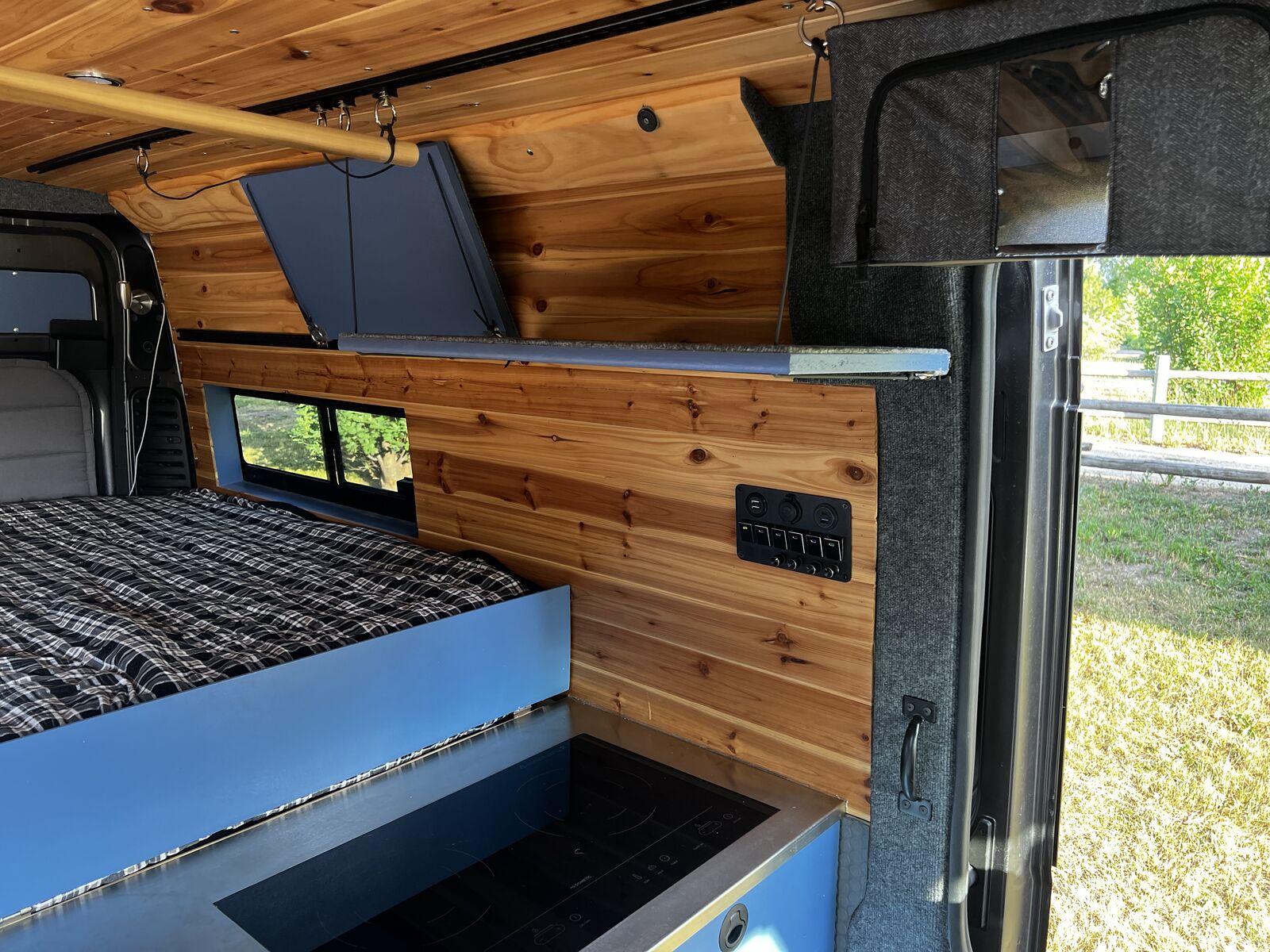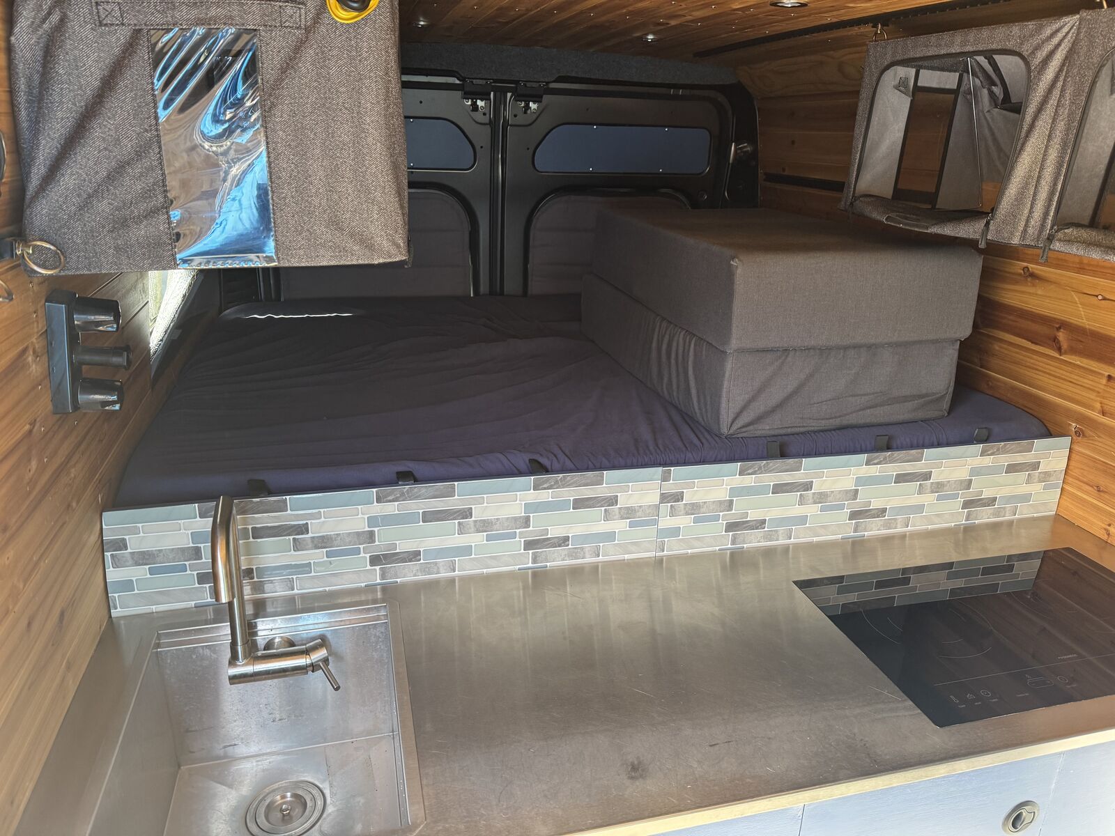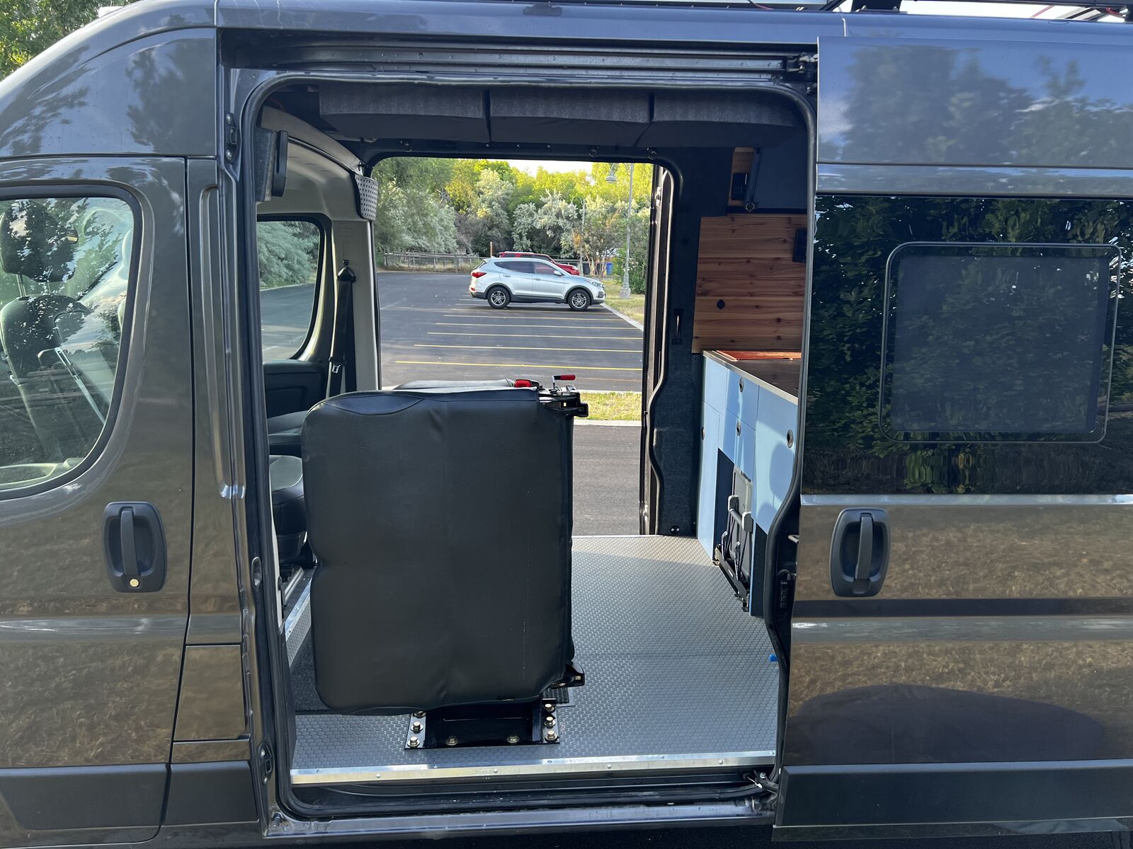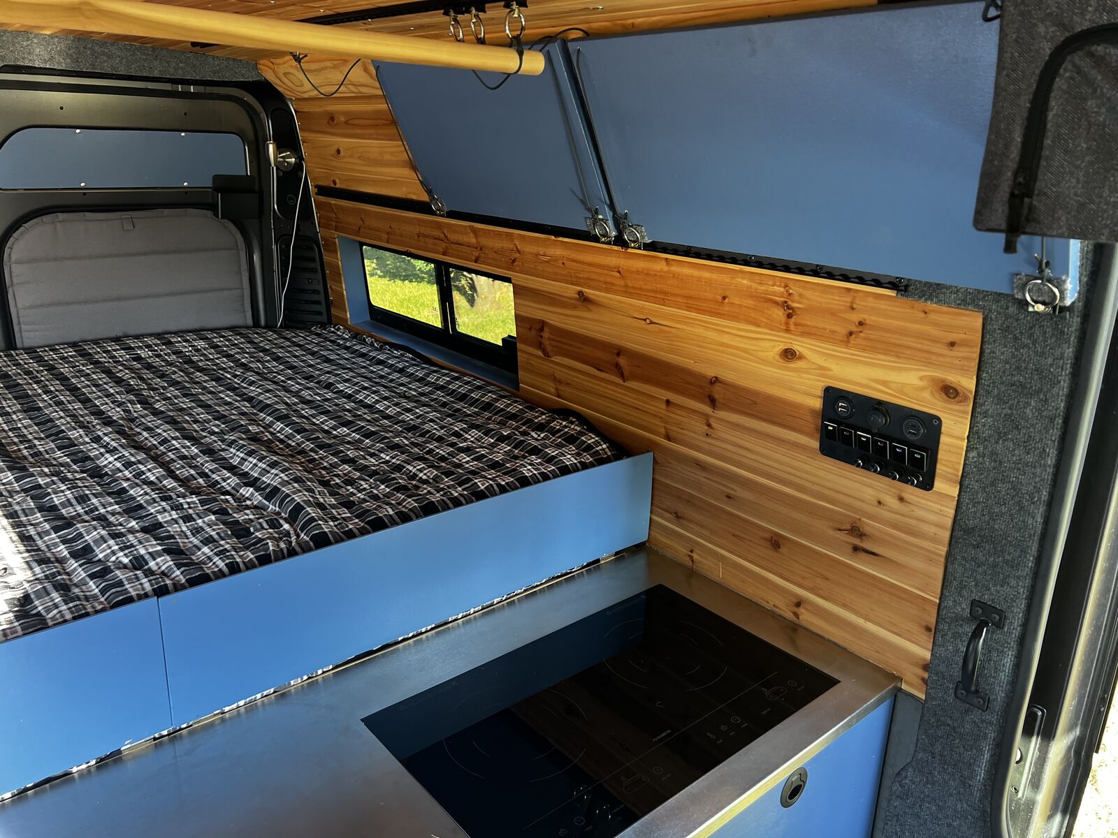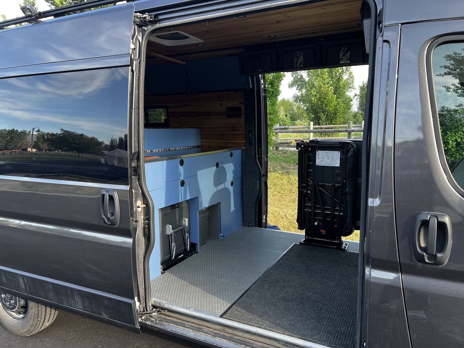 I wanted to try a unique design for this build different from the classic narrow “hallway” you see in the vast majority of van builds. This design really mixes things up and makes for a huge open floor plan and a massive very comfortable king bed! ready to go on any adventure!