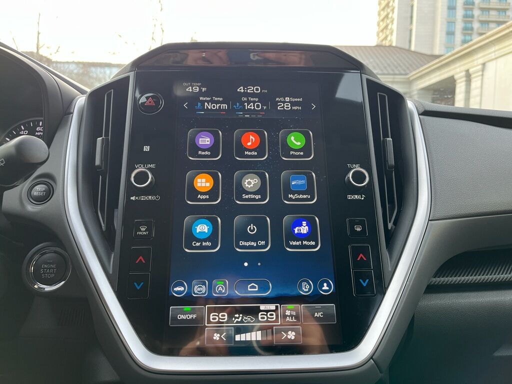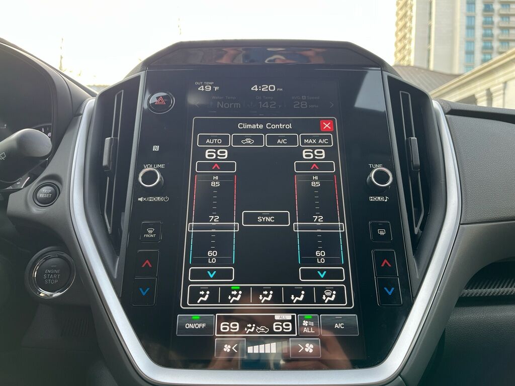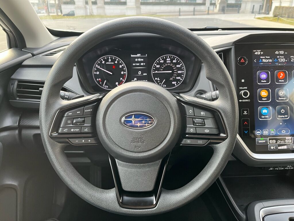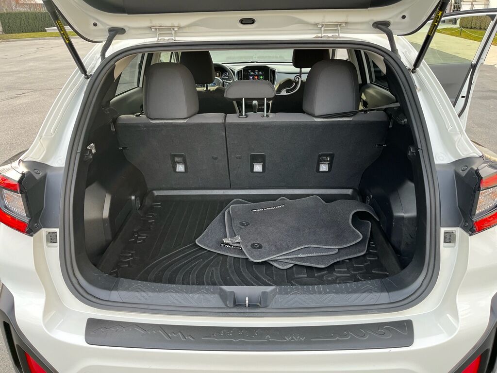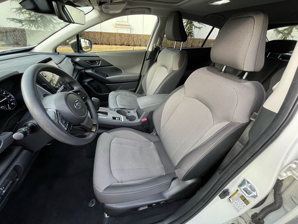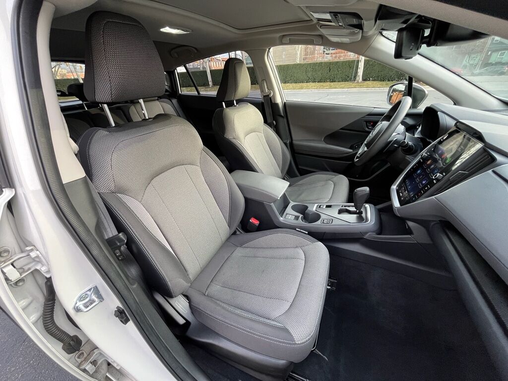 BSD/RCTA and Moonroof and All Weather Package and Power Dr. Seat: Blind Spot Detection with Rear Cross-Traffic Alert; Power Moonroof; 10-Way Power Driver's Seat,Standard Model,Crosstrek Mirror Package: Auto-Dimming Mirror with Compass and HomeLink; Auto-Dimming Exterior Mirror with Approach Light,Rear Bumper Cover,LED Upgrade,STARLINK/Apple CarPlay/Android Auto smart device wireless mirroring,STARLINK (subscription required) mobile hotspot internet access,STARLINK Safety and Security (Subscription Required) vehicle integrated emergency SOS system,Bluetooth handsfree wireless device connectivity,SiriusXM Travel Link real-time weather,Mobile app access,Lane Centering hands-on cruise control,EyeSight Pre-Collision Braking forward collision mitigation,EyeSight Pre-Collision Braking pedestrian impact prevention,Rear mounted camera,EyeSight Lane Keep Assist,EyeSight Pre-Collision Throttle Management predictive brake assist system,EyeSight Sway Warning driver attention alert,Auto Vehicle Hold (AVH) automatic brake hold,Following distance alert,Steering Responsive Headlights (SRH) directionally adaptive headlights,High Beam Assist (HBA) auto high-beam headlights,Immobilizer,STARLINK Safety and Security (Subscription Required) vehicle tracker,Electronic stability control system,Hill descent control,Hill start assist,LED daytime running lights,Auto-leveling headlights,LED brake lights,LED front fog lights,Manual rear child safety door locks,Gauge cluster display size: 4.20,EyeSight Advanced Adaptive Cruise Control,Cruise control with steering wheel mounted controls,Smart key with hands-free access and push button start,Push-button,Rear seat check warning,Primary monitor touchscreen,Bluetooth wireless audio streaming,External memory control,Aha/Pandora/iHeartRadio internet radio capability,Full-time AWD,2L H-4 gasoline direct injection, DOHC, variable valve control, regular unleaded, engine with 152HP,2L H-4 DOHC,Auto stop-start engine,Dual-zone front climate control,Voice-activated climate control,Automatic climate control,Manual tilting steering wheel,Manual telescopic steering wheel,Active grille shutters,Roof rails,Pearlcoat paint,17 x 7-inch front and rear machined w/painted accents aluminum wheels