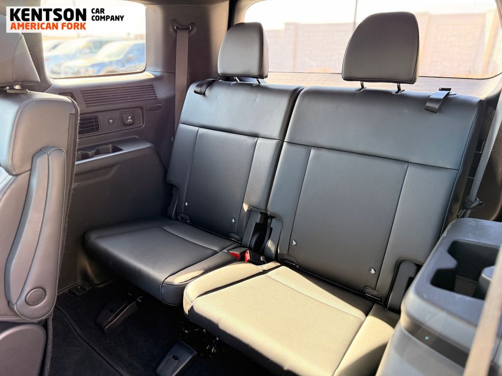 Option Group 01, 12 Speakers, 3.510 Axle Ratio, 3rd row seats: bench, 4-Wheel Disc Brakes, ABS brakes, Air Conditioning, Alloy wheels, AM/FM radio: SiriusXM, Apple CarPlay & Android Auto, Auto High-beam Headlights, Auto-dimming Rear-View mirror, Automatic temperature control, Brake assist, Bumpers: body-color, Carpeted Floor Mats, Delay-off headlights, Driver door bin, Driver vanity mirror, Dual front impact airbags, Dual front side impact airbags, Electronic Stability Control, Emergency communication system, Exterior Parking Camera Rear, Four wheel independent suspension, Front anti-roll bar, Front Bucket Seats, Front Center Armrest, Front dual zone A/C, Front reading lights, Fully automatic headlights, Garage door transmitter: HomeLink, Heads-Up Display, Heated & Ventilated Front Bucket Seats, Heated door mirrors, Heated front seats, Heated rear seats, Heated steering wheel, Illuminated entry, Knee airbag, Leather steering wheel, Low tire pressure warning, Memory seat, Navigation System, Occupant sensing airbag, Outside temperature display, Overhead airbag, Overhead console, Panic alarm, Passenger door bin, Passenger vanity mirror, Power door mirrors, Power driver seat, Power Liftgate, Power moonroof, Power passenger seat, Power steering, Power windows, Quilted Premium Nappa Leather Seat Trim, Radio: AM/FM/HD Bose Premium Audio System, Rain sensing wipers, Rear anti-roll bar, Rear side impact airbag, Rear window defroster, Rear window wiper, Remote keyless entry, Security system, Speed control, Speed-sensing steering, Split folding rear seat, Spoiler, Steering wheel mounted audio controls, Tachometer, Telescoping steering wheel, Tilt steering wheel, Traction control, Trip computer, Turn signal indicator mirrors, Variably intermittent wipers, Ventilated front seats, and Wheels: 20'' x 8.5J Unique Dark Finish Alloy.