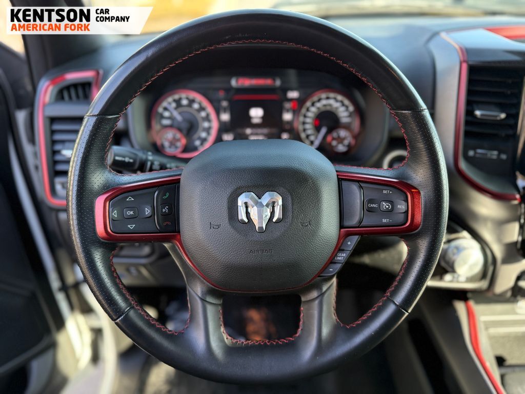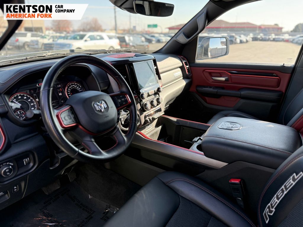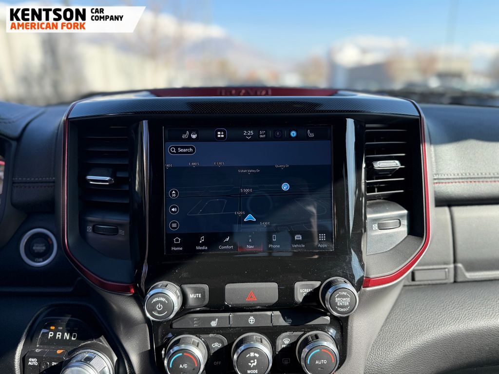 Quick Order Package 25W Rebel, Rebel Level An Equipment Group (DISC) (4G LTE Wi-Fi Hot Spot, 8.4'' Touchscreen Display, Apple CarPlay, Auto-Dimming Exterior Driver Mirror, Black Premium Power Mirrors (GUL), Bluetooth Handsfree Phone & Audio, Connectivity - US/Canada, Exterior Mirrors Courtesy Lamps, Exterior Mirrors w/Supplemental Signals, Foam Bottle Insert (Door Trim Panel), For More Info, Call 800-643-2112, Google Android Auto, Heated Front Seats, Heated Steering Wheel, Integrated Center Stack Radio, Power Adjustable Pedals, Rear Dome w/On/Off Switch Lamp, Rear Window Defroster, SiriusXM Radio Service, SiriusXM Satellite Radio, Sun Visors w/Illuminated Vanity Mirrors, Universal Garage Door Opener, and USB Host Flip), 2nd Row In Floor Storage Bins, 3.92 Rear Axle Ratio, 4 Way Front Headrests, 4-Wheel Disc Brakes, 48V Belt Starter Generator, 6 Speakers, 9 Amplified Speakers w/Subwoofer, ABS brakes, Air Conditioning, Air Conditioning ATC w/Dual Zone Control, All R1 High Radios, All Radio Equipped Vehicles, Alloy wheels, AM/FM radio: SiriusXM, Auto-dimming Rear-View mirror, Black Exterior Mirrors, Brake assist, Bucket Seats, Cloth/Vinyl Low Back Bucket Seats, Compass, Connected Travel & Traffic Services, Convex Wide-Angle Mirror Insert, Delay-off headlights, Disassociated Touchscreen Display, Driver door bin, Dual front impact airbags, Dual front side impact airbags, Electric Shift-On-Demand Transfer Case, Electronic Stability Control, Emergency communication system: SiriusXM Guardian, For Details, Visit DriveUconnect.com, Front anti-roll bar, Front Bucket Seats, Front Center Armrest w/Storage, Front fog lights, Front License Plate Bracket, Front reading lights, Front Seat Back Map Pockets, Front wheel independent suspension, Full Length Upgraded Floor Console, Fully automatic headlights, Global Telematics Box Module (TBM), GPS Antenna Input, GPS Navigation, HD Radio, Heated door mirrors, Illuminated entry, Integrated Voice Command w/Bluetooth, Leather steering wheel, Low tire pressure warning, Manufacturer's Statement of Origin, Occupant sensing airbag, Off-Road Information Pages, Outside temperature display, Overhead airbag, Overhead console, Panic alarm, ParkView Rear Back-Up Camera, Passenger door bin, Passenger vanity mirror, Power 2-Way Driver Lumbar Adjust, Power door mirrors, Power driver seat, Power steering, Power windows, Radio data system, Radio: Uconnect 3 w/5'' Display, Radio: Uconnect 5 Nav w/8.4'' Display, Rear 60/40 Folding Seat, Rear anti-roll bar, Rear seat center armrest, Rear step bumper, Rear Wheelhouse Liners, Remote keyless entry, SiriusXM w/360L, Speed control, Split folding rear seat, Steering wheel mounted audio controls, Tachometer, Telescoping steering wheel, Tilt steering wheel, Traction control, Trailer Brake Control, Trip computer, Twill Film Appliques, Variably intermittent wipers, Voltmeter, and Wheels: 18'' x 8.0'' Painted Mid-Gloss BlacK.