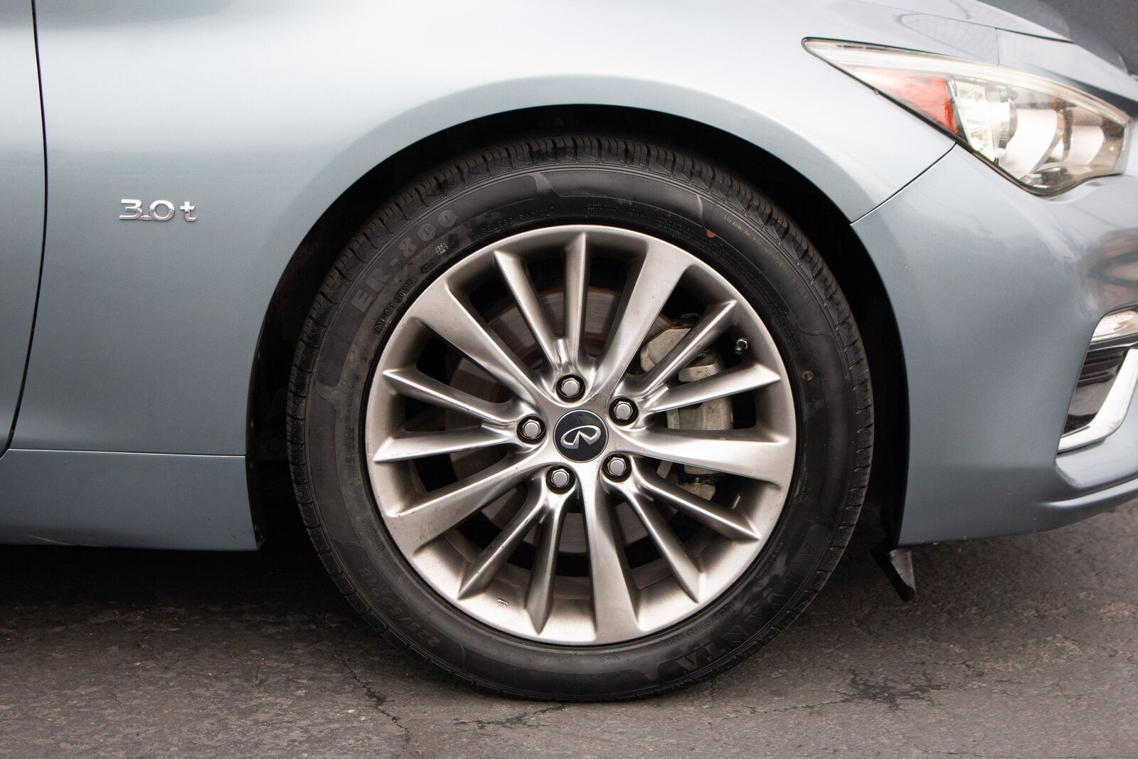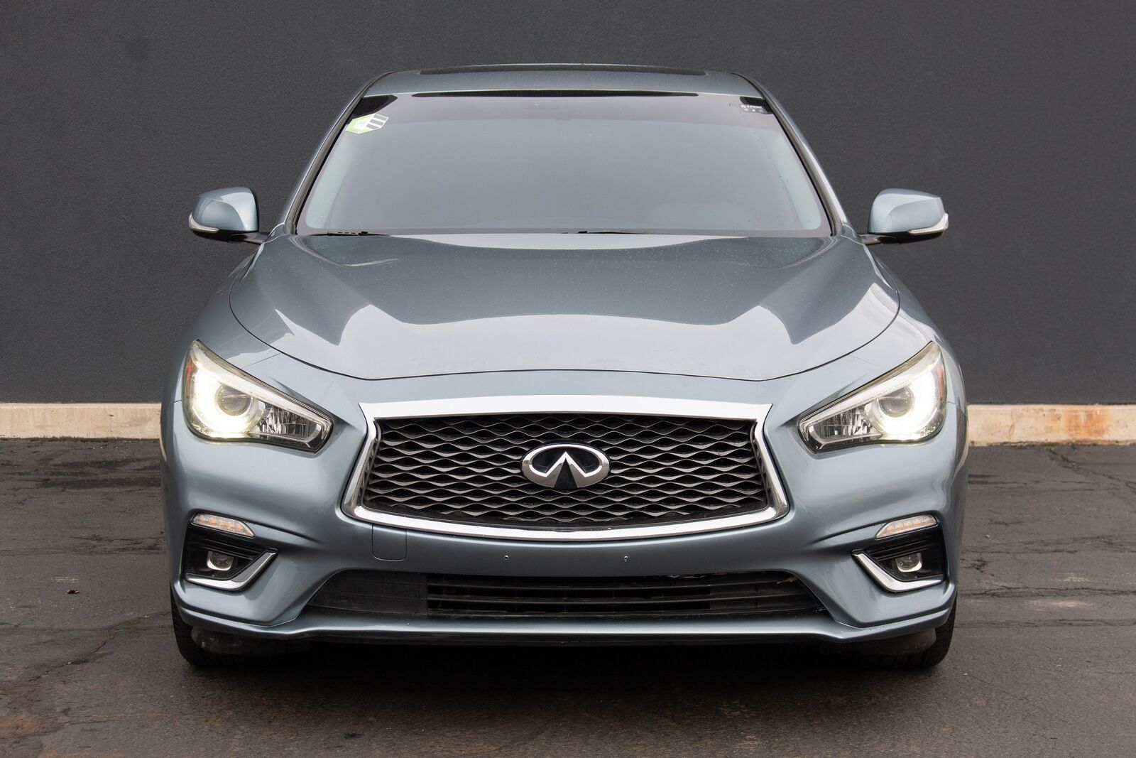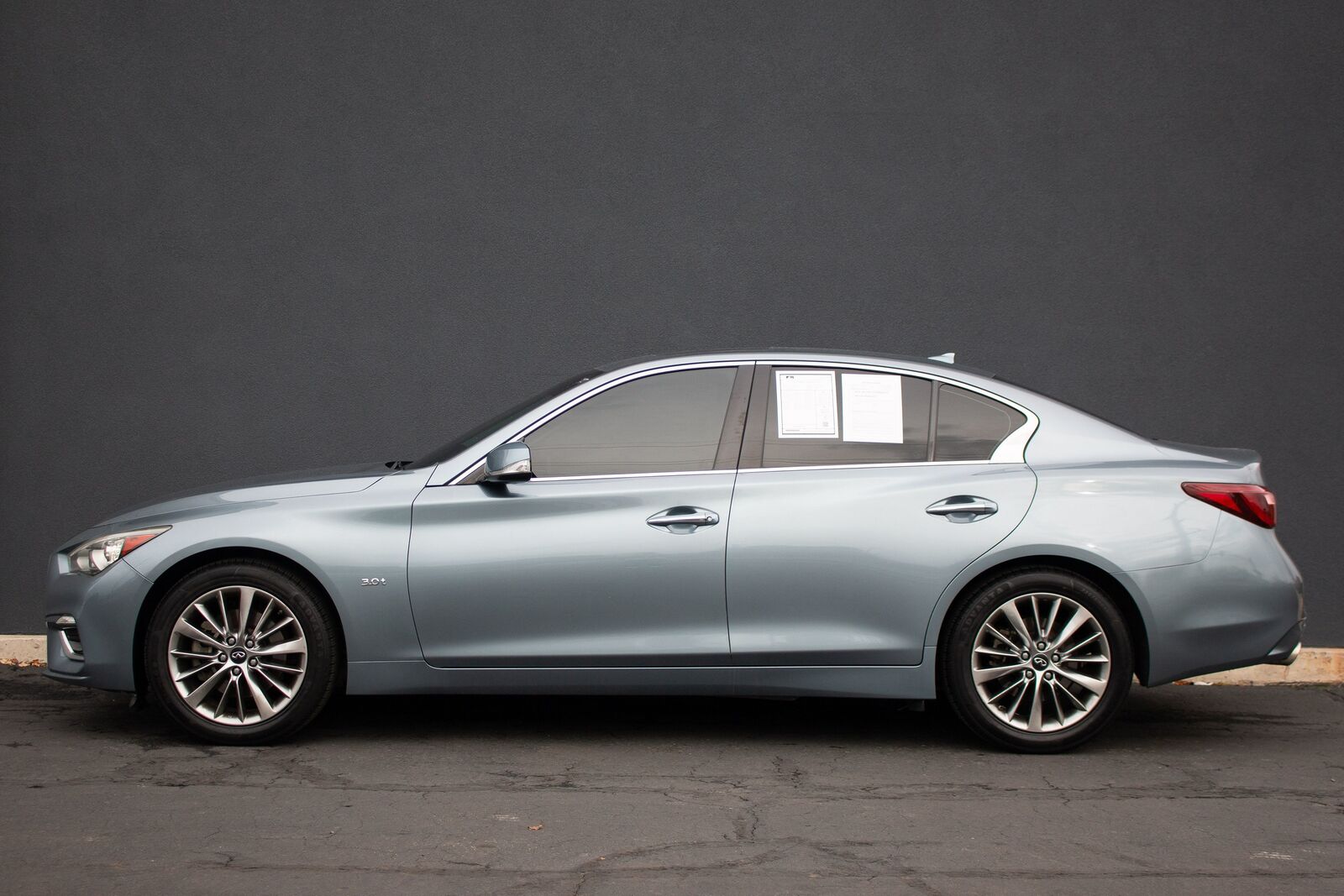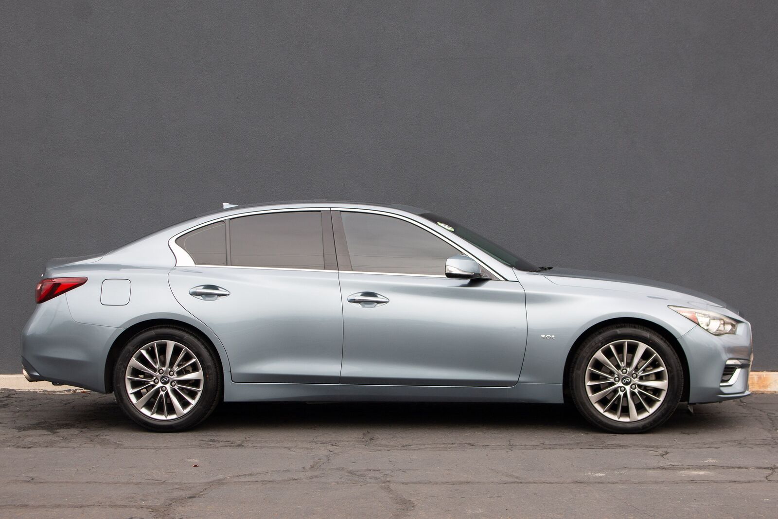 The 2019 INFINITI Q50 3.0t LUXE AWD exudes a refined sense of sophistication and style- making it a standout in the luxury sedan segment. Draped in an elegant Hagane Blue exterior- this vehicle captures attention with its eye-catching hue that reflects different shades under varying light conditions. The sleek- aerodynamic design is accentuated by bold- chrome-accented grille and striking LED headlights- offering a perfect blend of sportiness and elegance.