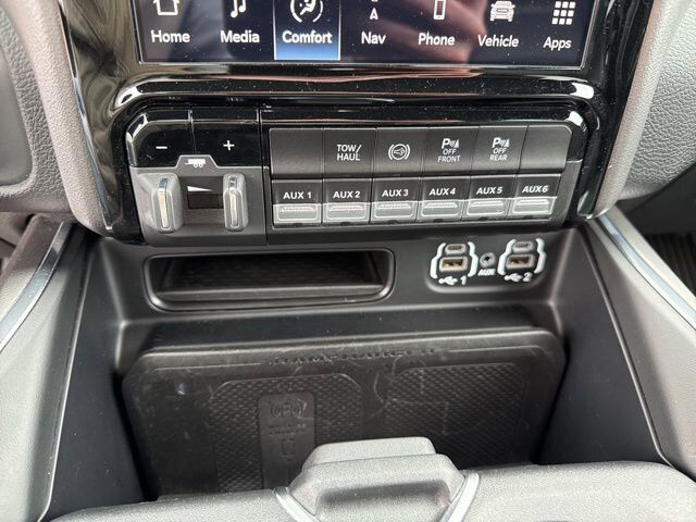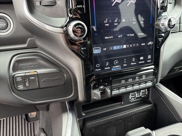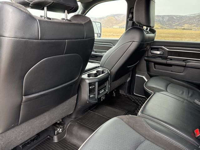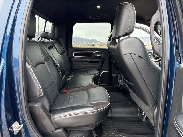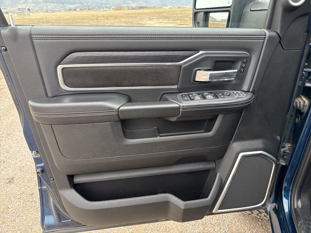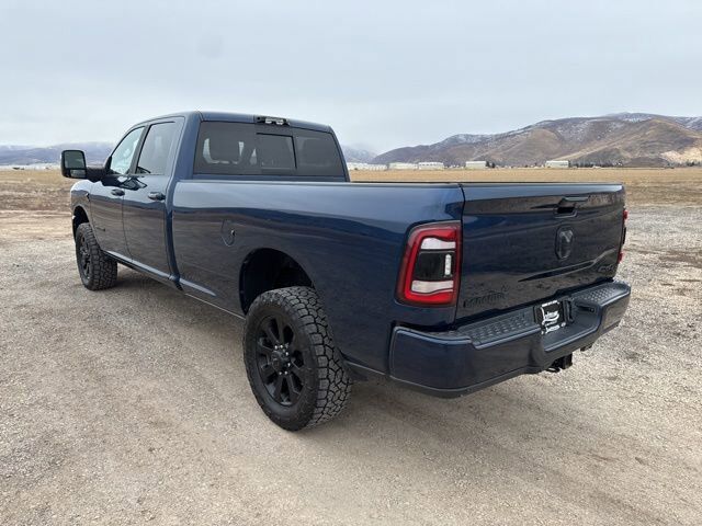 QUICK ORDER PACKAGE 21H LARAMIE -inc: Engine: 6.7L I6 Cummins HO Turbo Diesel Transmission: 6-Speed Automatic Aisin AS69RC HD,MOPAR SPRAY IN BEDLINER,ENGINE: 6.7L I6 CUMMINS HO TURBO DIESEL -inc: Selective Catalytic Reduction (Urea) Dual 730 Amp Maintenance Free Batteries Cummins Turbo Diesel Badge Heavy Duty Engine Cooling Supplemental Heater 220 Amp Alternator GVWR: 12 300 lbs Current Generation Engine Controller Diesel Exhaust Brake Capless Fuel Fill w/o Discriminator,CLUSTER 12 TFT COLOR DISPLAY,ADAPTIVE STEERING SYSTEM,50 GALLON FUEL TANK,LARAMIE LEVEL B EQUIPMENT GROUP -inc: Blind Spot & Cross Path Detection LED Tail Lamps Power Adjustable Pedals w/Memory 12 Touchscreen Display Auto Power-Folding Mirrors Front LED Fog Lamps Mirror Running Lights Forward & Reverse Utility Lights Remote Tailgate Release 17 Speaker harman/kardon Premium Sound 2nd Row In Floor Storage Bins Rear Window Defroster Rain Sensitive Windshield Wipers Rear Power Sliding Window Auto Dimming Exterior Mirrors Heated Second Row Seats LED Reflector Headlamps Foam Bottle Insert (Door Trim Panel) Wheels: 18 x 8 Polished Aluminum Radio: Uconnect 5 Nav w/12.0 Display Power Heat Fold Memory Telescopic Mirrors Auto High Beam Headlamp Control Chrome Exterior Mirrors Exterior Mirrors w/Memory Power Telescoping Mirrors Auto Dimming Exterior Passenger Mirror Auto Adjust In Reverse Exterior Mirrors ParkSense Front/Rear Park Assist System,GVWR: 12 300 LBS,3.73 AXLE RATIO (STD),COLD WEATHER GROUP -inc: Engine Block Heater MOPAR Winter Front Grille Cover,MANUFACTURER'S STATEMENT OF ORIGIN,DUAL ALTERNATORS RATED AT 440 AMPS -inc: 220 Amp Alternator,BLACK LEATHER TRIMMED BUCKET SEATS -inc: Bucket Seats Power 2-Way Passenger Lumbar Adjust Power 2-Way Driver Lumbar Adjust Full Length Upgraded Floor Console,RADIO: UCONNECT 5 NAV W/12.0 DISPLAY,CLEARANCE LAMPS,AUXILIARY SWITCHES PREP,MOPAR FRONT & REAR RUBBER FLOOR MATS,WHEELS: 20 X 8.0 BLACK PAINTED ALUMINUM,5TH WHEEL/GOOSENECK TOWING PREP GROUP,220 AMP ALTERNATOR,BLIND SPOT & CROSS PATH DETECTION,CTR STOP LAMP W/CARGO VIEW CAMERA,I/P MOUNTED AUXILIARY SWITCHES -inc: Dash Pass Thru Wire Circuits,TIRES: LT285/60R20E OWL ON/OFF ROAD,TRANSMISSION: 6-SPEED AUTOMATIC AISIN AS69RC HD -inc: Urethane Shift Control Transmission Oil Cooler,TOWING TECHNOLOGY GROUP -inc: CTR Stop Lamp w/Cargo View Camera Surround View Camera System Trailer Reverse Guidance,FRONT LICENSE PLATE BRACKET,NIGHT EDITION -inc: Black RAM Head Tailgate Badge Black Headlamp Bezels Sport Performance Hood Black Wheel Center Hub Black Exterior Truck Badging Gloss Black Grille Billets/Accents Body Color Grille Surround Black Interior Accents Black Tail Lamp Bezels ParkSense Front/Rear Park Assist System,ENGINE BLOCK HEATER,PATRIOT BLUE PEARLCOAT,PROTECTION GROUP -inc: Transfer Case Skid Plate Shield,SAFETY GROUP -inc: Adaptive Cruise Control w/Stop Adaptive Steering System Full Speed Forward Collision Warning Plus Lane Keep Assist,SNOW CHIEF GROUP -inc: Clearance Lamps Tires: LT275/70R18E OWL On/Off Road Transfer Case Skid Plate Shield I/P Mounted Auxiliary Switches Dash Pass Thru Wire Circuits Auxiliary Switches Prep,Four Wheel Drive,Tow Hitch,Power Steering,ABS,4-Wheel Disc Brakes,Brake Assist,Locking/Limited Slip Differential,Aluminum Wheels,Conventional Spare Tire,Tow Hooks,Integrated Turn Signal Mirrors,Power Mirror(s),Heated Mirrors,Intermittent Wipers,Variable Speed Intermittent Wipers,Privacy Glass,Power Door Locks,Daytime Running Lights,Automatic Headlights,AM/FM Stereo,Navigation System,Satellite Radio,Bluetooth Connection,HD Radio,Requires Subscription,Premium Sound System,MP3 Capability,Steering Wheel Audio Controls,Auxiliary Audio Input,Premium Sound System,Satellite Radio,HD Radio,Requires Subscription,Satellite Radio,HD Radio,Requires Subscription,Driver Adjustable Lumbar,Heated Front Seat(s),Power Driver Seat,Driver Adjustable Lumbar,Power Passenger Seat,Passenger Adjustable Lumbar,Adjustable Steering Wheel,Trip Computer,Power Windows,Pass-Through Rear Seat,Rear Bench Seat,Leather Steering Wheel,Heated Steering Wheel,Keyless Entry,Power Door Locks,Keyless Entry,Power Door Locks,Keyless Start,Universal Garage Door Opener,Cruise Control,Climate Control,Multi-Zone A/C,A/C,Woodgrain Interior Trim,Leather Seats,Premium Synthetic Seats,Auto-Dimming Rearview Mirror,Driver Vanity Mirror,Passenger Vanity Mirror,Driver Illuminated Vanity Mirror,Passenger Illuminated Visor Mirror,Floor Mats,Remote Engine Start,Keyless Start,Remote Engine Start,Smart Device Integration,Requires Subscription,Navigation System,Smart Device Integration,Smart Device Integration,WiFi Hotspot,Bluetooth Connection,Power Door Locks,Power Windows,Trip Computer,Immobilizer,Security System,Traction Control,Stability Control,Traction Control,Front Side Air Bag,Rear Parking Aid,Tire Pressure Monitor,Driver Air Bag,Passenger Air Bag,Passenger Air Bag Sensor,Front Head Air Bag,Rear Head Air Bag,Child Safety Locks,Back-Up Camera
