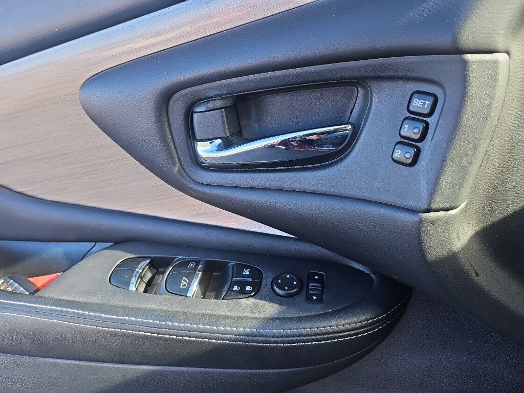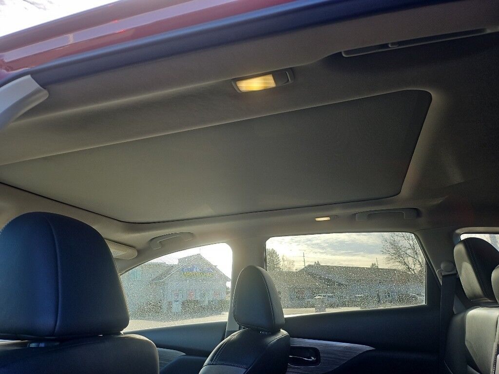 Carpeted Floor Mats and Carpeted Cargo Mat,Splash Guards,Apple CarPlay/Android Auto smart device mirroring,Forward collision mitigation,Intelligent Around View Monitor (I-AVM) rear mounted camera,Intelligent Cruise Control (ICC),Brake assist system,Cruise control with steering wheel mounted controls,Power liftgate rear cargo door,Ventilated driver and front passenger seats,Integrated navigation system with voice activation,Keyfob remote start,Heated steering wheel,Heated driver and front passenger seats,Heated rear seats,Leather front seat upholstery,Primary monitor touchscreen,Rear Cross Traffic Alert (RCTA) collision warning,First and second-row sliding and tilting glass sunroof with express open/close activation sunshade,Driver seat power reclining, lumbar support, cushion tilt, fore/aft control and height adjustable control,Automatic full-time AWD,3.5L V-6 DOHC, variable valve control, regular unleaded, engine with 260HP,3.5L V-6 DOHC,Intelligent Driver Alertness (I-DA),NissanConnect restricted driving mode/alerts,Intelligent Key with hands-free access and push button start,Keyfob window control,Aerial view camera,Push-button,Bluetooth wireless audio streaming,Proximity cargo area access release,Around View Monitor front mounted camera,Right side camera,Left side camera,Blind Spot Warning (BSW),Dual-zone front climate control,Immobilizer,NissanConnect Services vehicle tracker,Bose speakers,SiriusXM Traffic real-time traffic,NissanConnect Services vehicle integrated emergency SOS system,Bluetooth handsfree wireless device connectivity,NissanConnect external memory control,Internet radio capability,Electronic stability control system,Hill start assist,Leather rear seat upholstery,Auto tilt-away steering wheel,Automatic climate control,LED daytime running lights,LED brake lights,3 12V power outlets,V6; 3.5 Liter,Automatic; Xtronic CVT,AWD,Blind-Spot Warning,Hill Start Assist Control,Traction Control,Vehicle Dynamic Control,ABS (4-Wheel),Alarm System,Keyless Entry,Push Button Start,Air Conditioning,Power Windows,Power Door Locks,Intelligent Cruise Control,Power Liftgate Release,Power Steering,Tilt & Telescoping Wheel,AM/FM/HD Radio,CD/MP3 (Single Disc),Bose Premium Sound,SiriusXM Satellite,Navigation System,Bluetooth Wireless,NissanConnect,Around View Monitor,Dual Air Bags,Side Air Bags,F&R Head Curtain Air Bags,Knee Air Bags,Forward Collision Warning System,Heated & Cooled Seats,Dual Power Seats,Leather,Daytime Running Lights,LED Headlamps,Fog Lights,Oversized Premium Wheels 20" ,Red,Panorama Roof
