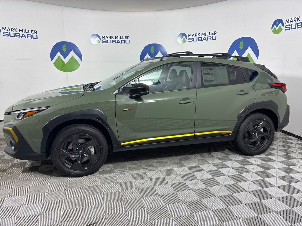 Mark Miller Subaru is the leading Subaru dealership in Utah. Our large inventory and dedicated sales teams has made us the go to destination for the Subaru brand in Utah. Our Promise Price is the best way to buy a Subaru in Utah. Come experience the Mark Miller Subaru difference today! ** This 2026 Alpine Green Subaru Crosstrek Sport AWD is well equipped and includes these features and benefits: Standard Model, 4-Wheel Disc Brakes, 6 Speakers, ABS brakes, Air Conditioning, Alloy wheels, AM/FM radio: SiriusXM, Anti-whiplash front head restraints, Auto High-beam Headlights, Automatic temperature control, Brake assist, Bumpers: body-color, Driver door bin, Driver vanity mirror, Dual front impact airbags, Dual front side impact airbags, Electronic Stability Control, Emergency communication system: MySubaru Companion (5-years free), Exterior Parking Camera Rear, Four wheel independent suspension, Front anti-roll bar, Front Bucket Seats, Front Center Armrest, Front dual zone A/C, Front fog lights, Front reading lights, Fully automatic headlights, Heated door mirrors, Heated Front Bucket Seats, Heated front seats, Illuminated entry, Knee airbag, Leather Shift Knob, Leather steering wheel, Low tire pressure warning, Occupant sensing airbag, Outside temperature display, Overhead airbag, Overhead console, Panic alarm, Passenger door bin, Passenger vanity mirror, Power door mirrors, Power steering, Power windows, Radio data system, Radio: Subaru 11.6'' Multimedia Plus System, Rear anti-roll bar, Rear seat center armrest, Rear side impact airbag, Rear window defroster, Rear window wiper, Remote keyless entry, Security system, Speed control, Speed-sensing steering, Split folding rear seat, Spoiler, Sport Cloth Upholstery, Steering wheel mounted audio controls, Tachometer, Telescoping steering wheel, Tilt steering wheel, Traction control, Trip computer, Turn signal indicator mirrors, Variably intermittent wipers, and Wheels: 18'' x 7.0'' J Dark Gray Aluminum-Alloy **