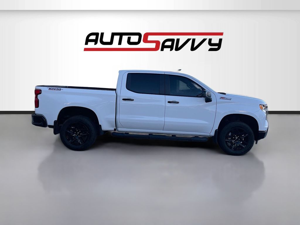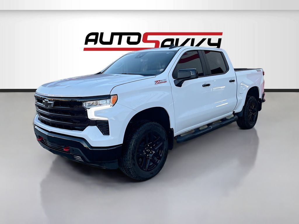Explore the 2025 Chevrolet Silverado 1500 LT Trail Boss at AutoSavvy Windsor, a standout pickup truck blending rugged capability with premium comfort. This Summit White beauty is powered by an EcoTec3 5.3L V8 engine, delivering robust performance with 16 MPG city and 19 MPG highway. With only 5,832 miles, this truck offers a nearly new driving experience. It features a 10-speed automatic transmission and is equipped with a host of standard options, including a 10-way power driver seat with lumbar support, a 12.3-inch multicolor reconfigurable digital display, and a premium Bose 7-speaker sound system. The Silverado's interior boasts luxurious black leather upholstery, heated front seats, and a heated steering wheel, ensuring comfort in every season. Advanced technology like Apple CarPlay, Android Auto, and a Wi-Fi hotspot keep you connected on the go, while safety features such as Automatic Emergency Braking, Lane Keep Assist, and a HD Rear Vision Camera provide peace of mind. The current status of the title is branded, reflecting AutoSavvy Windsor's commitment to transparency and quality. This Silverado is Savvy Certified, offering a 4-month/4,500-mile warranty for added assurance. It has undergone a thorough inspection to meet high safety and performance standards, ensuring it is in excellent condition. Visit AutoSavvy Windsor today to explore this exceptional truck and discover why the 2025 Chevrolet Silverado 1500 LT Trail Boss is the perfect choice for those seeking a blend of power, reliability, and cutting-edge technology. Whether you're navigating city streets or tackling tough terrains, this Silverado promises a dynamic and comfortable driving experience.