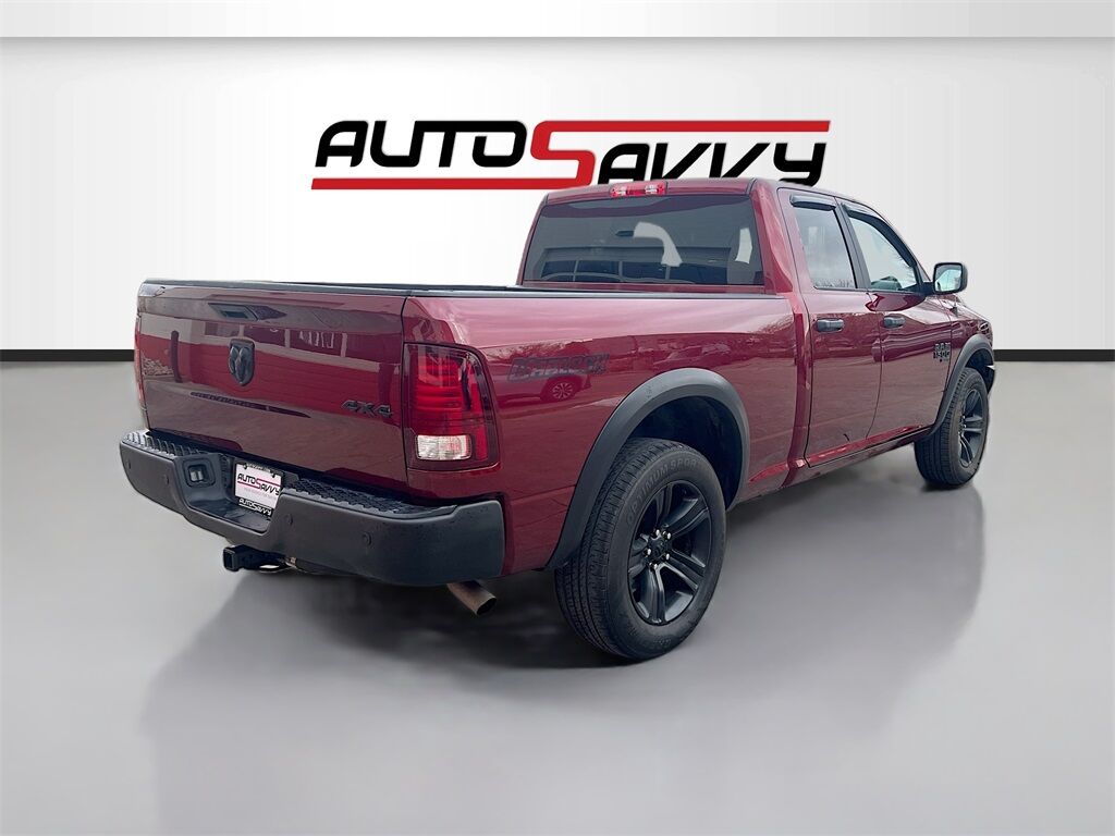 Discover the 2021 RAM 1500 Classic Warlock at AutoSavvy Windsor, a versatile truck that combines rugged capability with stylish design. This Delmonico Red Pearlcoat beauty boasts a low mileage of just 47,674 miles, offering a like-new driving experience. Under the hood, the robust 3.6L V6 24V VVT engine delivers reliable performance, paired with an 8-speed automatic transmission for smooth handling. The Warlock trim stands out with its unique black powder-coated bumpers, black grille with RAM lettering, and distinctive Warlock decals, making a bold statement on the road. Inside, enjoy the comfort of cloth upholstery, a 40/20/40 split bench seat, and modern tech features like the Uconnect 3 system with a 5-inch display and integrated Bluetooth for seamless connectivity. The current status of the title is branded, reflecting AutoSavvy Windsor's commitment to transparency and quality. As a Savvy Certified vehicle, this RAM 1500 Classic comes with a 4-month/4,500-mile warranty, providing added peace of mind for your investment. It has undergone a rigorous inspection to ensure it meets high safety and performance standards, ensuring it is in excellent condition. Visit AutoSavvy Windsor today to explore this exceptional truck and discover why the 2021 RAM 1500 Classic Warlock is the ideal choice for those seeking a blend of power, style, and modern technology. Whether you're tackling tough terrains or cruising city streets, this RAM promises a dynamic and comfortable driving experience.