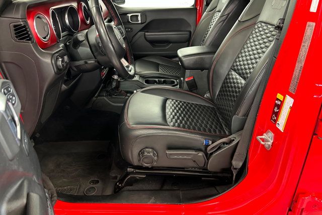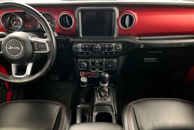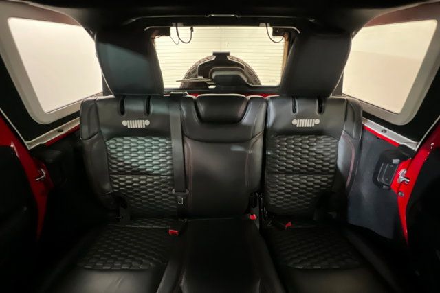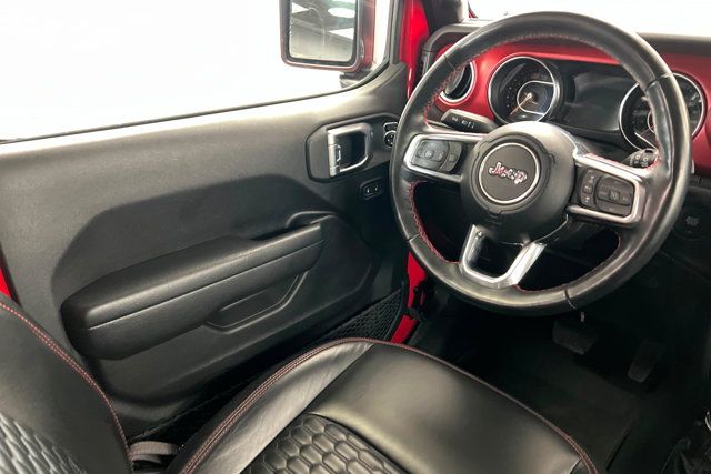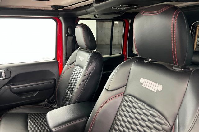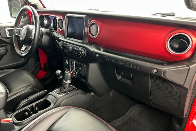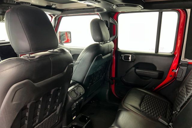 COLD WEATHER GROUP -inc: Heated Steering Wheel Heated Front Seats,ADVANCED SAFETY GROUP -inc: Advanced Brake Assist Auto High Beam Headlamp Control Full Speed Forward Collision Warning Plus,TIRES: LT315/70R17C 113/110S,XTREME 35 TIRE PACKAGE -inc: Tires: LT315/70R17C 113/110S Dana M210 Wide HD Tube Front Axle Wheel Flare Extensions MOPAR Tire Relocation Kit Wheels: 17 x 8 Beadlock Capable Anti-Lock 4-Wheel Disc Perf Brakes 35 Tire Suspension MOPAR Hinge-Gate Reinforcement MOPAR Jack Spacer 4.56 Rear Axle Ratio,MOPAR HARDTOP HEADLINER,BLACK 3-PIECE HARD TOP -inc: Freedom Panel Storage Bag Rear Window Defroster Rear Window Wiper/Washer No Soft Top,GVWR: 6 100 LBS,BLACK PREMIUM CLOTH LOW-BACK BUCKET SEATS,BLACK MOPAR STITCHED LEATHER,WHEELS: 17 X 8 BEADLOCK CAPABLE,MOPAR ALL-WEATHER FLOOR MATS,ENGINE: 3.6L V6 24V VVT ETORQUE UPG I -inc: 600 Amp Maintenance Free Battery 48V Belt Starter Generator Delete Alternator,35 TIRE SUSPENSION,STEEL BUMPER GROUP -inc: Steel Front Bumper Steel Rear Bumper,MOPAR HINGE-GATE REINFORCEMENT,4.56 REAR AXLE RATIO,QUICK ORDER PACKAGE 25R RUBICON -inc: Engine: 3.6L V6 24V VVT eTorque UPG I Transmission: 8-Speed Automatic (850RE),FRONT LICENSE PLATE BRACKET,LED LIGHTING GROUP -inc: Daytime Running Lamps LED Accents Front LED Fog Lamps LED Premium Reflector Headlamps LED Taillamps,TRANSMISSION: 8-SPEED AUTOMATIC (850RE) -inc: Selec-Speed Control,FIRECRACKER RED CLEARCOAT,SAFETY GROUP -inc: ParkSense Rear Park Assist System Blind Spot & Cross Path Detection LED Taillamps,Four Wheel Drive,Locking/Limited Slip Differential,Power Steering,ABS,4-Wheel Disc Brakes,Brake Assist,Locking/Limited Slip Differential,Brake Actuated Limited Slip Differential,Aluminum Wheels,Tires - Front All-Terrain,Tires - Rear All-Terrain,Conventional Spare Tire,Tow Hooks,Tow Hooks,Heated Mirrors,Power Mirror(s),Privacy Glass,Intermittent Wipers,Variable Speed Intermittent Wipers,Rollover Protection Bars,Convertible Soft Top,Power Door Locks,Daytime Running Lights,Automatic Headlights,Fog Lamps,Locking/Limited Slip Differential,AM/FM Stereo,Navigation System,Satellite Radio,Bluetooth Connection,HD Radio,Requires Subscription,Premium Sound System,MP3 Capability,Steering Wheel Audio Controls,Auxiliary Audio Input,Premium Sound System,Bluetooth Connection,Driver Adjustable Lumbar,Driver Adjustable Lumbar,Pass-Through Rear Seat,Rear Bench Seat,Adjustable Steering Wheel,Trip Computer,Power Windows,WiFi Hotspot,Keyless Entry,Power Door Locks,Keyless Start,Keyless Entry,Power Door Locks,Universal Garage Door Opener,Cruise Control,Climate Control,Multi-Zone A/C,A/C,Bucket Seats,Auto-Dimming Rearview Mirror,Driver Vanity Mirror,Passenger Vanity Mirror,Driver Illuminated Vanity Mirror,Passenger Illuminated Visor Mirror,Floor Mats,Navigation System,Smart Device Integration,Power Windows,Power Door Locks,Trip Computer,Security System,Immobilizer,Traction Control,Stability Control,Traction Control,Front Side Air Bag,Telematics,Requires Subscription,Tire Pressure Monitor,Driver Air Bag,Passenger Air Bag,Passenger Air Bag Sensor,Child Safety Locks,Back-Up Camera