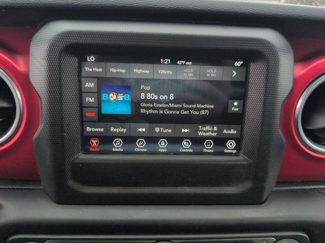 LED Lighting Group,Quick Order Package 22R,Safety Group,8 Speakers,AM/FM radio: SiriusXM,Radio data system,Radio: Uconnect 4 w/7 inch Display,Air Conditioning,Automatic temperature control,Front dual zone A/C,Rear Window Defroster,Power steering,Power windows,Remote keyless entry,Steering wheel mounted audio controls,Performance Suspension,Traction control,4-Wheel Disc Brakes,ABS brakes,Dual front impact airbags,Dual front side impact airbags,Front anti-roll bar,Integrated roll-over protection,Low tire pressure warning,Occupant sensing airbag,Rear anti-roll bar,Blind Spot & Cross Path Detection,Brake assist,Electronic Stability Control,ParkSense Rear Park Assist System,ParkView Rear Back-Up Camera,Delay-off headlights,Front fog lights,Fully automatic headlights,Panic alarm,Security system,Speed control,Aux Battery,Stop-Start Dual Battery System,Black 3-Piece Hard Top,Daytime Running Lamps LED Accents,Front LED Fog Lamps,Front License Plate Bracket,Heated door mirrors,LED Premium Reflector Headlamps,LED Taillamps,No Soft Top,Non-Lock Fuel Cap w/o Discriminator,Power door mirrors,Apple CarPlay/Android Auto,Compass,Driver door bin,Driver vanity mirror,Front reading lights,Garage door transmitter,Illuminated entry,Leather steering wheel,Outside temperature display,Passenger vanity mirror,Rear reading lights,Tachometer,Telescoping steering wheel,Tilt steering wheel,Trip computer,Voltmeter,Front Bucket Seats,Premium Cloth Low-Back Bucket Seats,Split folding rear seat,Freedom Panel Storage Bag,Front Center Armrest w/Storage,Passenger door bin,Alloy wheels,Wheels: 17 inch x 7.5 inch Machined w/Black Pockets,Rear Window Wiper/Washer,Variably intermittent wipers,4.10 Rear Axle Ratio,SAFETY GROUP -inc: ParkSense Rear Park Assist System Blind Spot & Cross Path Detection,LED LIGHTING GROUP -inc: Daytime Running Lamps LED Accents Front LED Fog Lamps LED Premium Reflector Headlamps LED Taillamps,ENGINE: 2.0L I4 DOHC DI TURBO W/ESS,BLACK PREMIUM CLOTH LOW-BACK BUCKET SEATS,TRANSMISSION: 8-SPEED AUTOMATIC (850RE),PERFORMANCE SUSPENSION (STD),GVWR: 5 800 LBS (STD),WHEELS: 17 X 7.5 MACHINED W/BLACK POCKETS (STD),BRIGHT WHITE CLEARCOAT,BLACK 3-PIECE HARD TOP -inc: Freedom Panel Storage Bag Rear Window Defroster Rear Window Wiper/Washer No Soft Top,QUICK ORDER PACKAGE 22R -inc: Engine: 2.0L I4 DOHC DI Turbo w/ESS Transmission: 8-Speed Automatic (850RE),4.10 REAR AXLE RATIO (STD),TIRES: LT285/70R17C BSW M/T,FRONT LICENSE PLATE BRACKET,Four Wheel Drive,Locking/Limited Slip Differential,Locking/Limited Slip Differential,Power Steering,ABS,4-Wheel Disc Brakes,Brake Assist,Locking/Limited Slip Differential,Brake Actuated Limited Slip Differential,Aluminum Wheels,Tires - Front All-Terrain,Tires - Rear All-Terrain,Conventional Spare Tire,Tow Hooks,Tow Hooks,Heated Mirrors,Power Mirror(s),Privacy Glass,Intermittent Wipers,Variable Speed Intermittent Wipers,Rollover Protection Bars,Convertible Soft Top,Power Door Locks,Daytime Running Lights,Automatic Headlights,Fog Lamps,AM/FM Stereo,Satellite Radio,Bluetooth Connection,Requires Subscription,MP3 Capability,Steering Wheel Audio Controls,Auxiliary Audio Input,Bluetooth Connection,Driver Adjustable Lumbar,Driver Adjustable Lumbar,Pass-Through Rear Seat,Rear Bench Seat,Adjustable Steering Wheel,Trip Computer,Power Windows,Leather Steering Wheel,Keyless Start,Keyless Entry,Power Door Locks,Universal Garage Door Opener,Cruise Control,Climate Control,Multi-Zone A/C,A/C,Cloth Seats,Bucket Seats,Driver Vanity Mirror,Passenger Vanity Mirror,Driver Illuminated Vanity Mirror,Passenger Illuminated Visor Mirror,Floor Mats,Smart Device Integration,Power Windows,Power Door Locks,Trip Computer,Security System,Immobilizer,Traction Control,Stability Control,Traction Control,Front Side Air Bag,Tire Pressure Monitor,Driver Air Bag,Passenger Air Bag,Passenger Air Bag Sensor,Child Safety Locks,Back-Up Camera