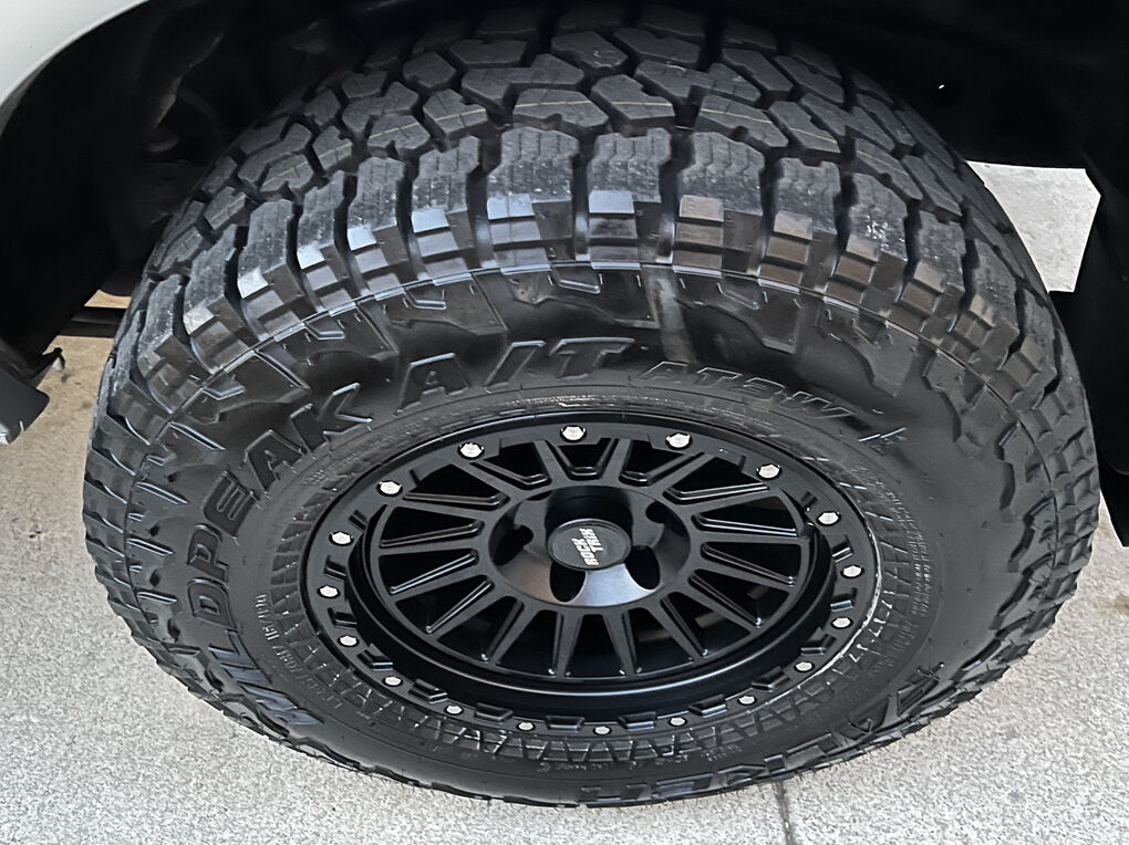 Larger 285 tires with 17 inch black aluminum wheels -