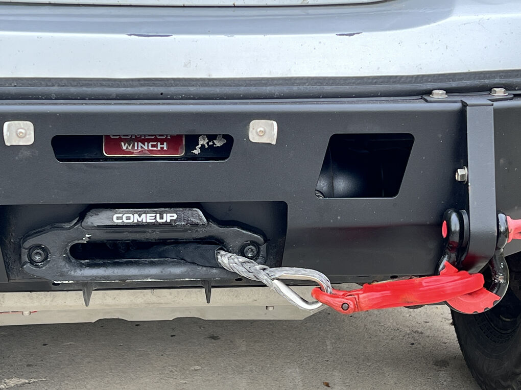 Working winch in high clearance off-road front bumper -
