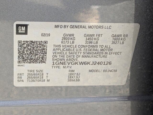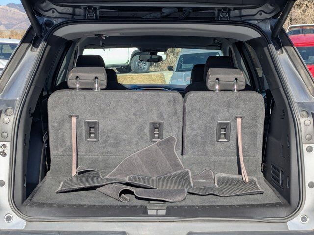 LT CLOTH PREFERRED EQUIPMENT GROUP Includes Standard Equipment,TRANSMISSION 9-SPEED AUTOMATIC (STD),JET BLACK PREMIUM CLOTH SEAT TRIM,SATIN STEEL METALLIC,SEATING 7-PASSENGER (2-2-3 SEATING CONFIGURATION) (STD),WHEELS 18 (45.7 CM) BRIGHT SILVER PAINTED ALUMINUM (STD),SEATS FRONT BUCKET (STD),AUDIO SYSTEM CHEVROLET INFOTAINMENT SYSTEM with 8 diagonal color touch-screen and AM/FM stereo includes Bluetooth streaming audio for music and most phones; featuring Android Auto and Apple CarPlay capability for compatible phones (STD),TIRES P255/65R18 ALL-SEASON BLACKWALL (STD),LICENSE PLATE FRONT MOUNTING PACKAGE (will be forced on orders with ship-to states that require a front license plate),ENGINE 3.6L V6 SIDI VVT (310 hp [232.0 kW] @ 6800 rpm 266 lb-ft of torque [361 N-m] @ 2800 rpm) (STD),MP3 Capability,Heated Front Seat(s),Rear Parking Aid,Remote Trunk Release,Universal Garage Door Opener,Bluetooth Connection,Remote Engine Start,Power Liftgate,Auxiliary Audio Input,Blind Spot Monitor,Cross-Traffic Alert,Smart Device Integration,All Wheel Drive,ABS,4-Wheel Disc Brakes,Aluminum Wheels,Tires - Front All-Season,Tires - Rear All-Season,Conventional Spare Tire,Temporary Spare Tire,HID headlights,Automatic Headlights,Fog Lamps,Heated Mirrors,Power Mirror(s),Integrated Turn Signal Mirrors,Privacy Glass,Intermittent Wipers,Intermittent Wipers,Remote Trunk Release,Power Liftgate,AM/FM Stereo,MP3 Capability,Bluetooth Connection,Auxiliary Audio Input,Smart Device Integration,Satellite Radio,Requires Subscription,Auxiliary Audio Input,WiFi Hotspot,Bucket Seats,3rd Row Seat,Bucket Seats,Cloth Seats,Power Driver Seat,Driver Adjustable Lumbar,Heated Front Seat(s),3rd Row Seat,Pass-Through Rear Seat,Floor Mats,Leather Steering Wheel,Adjustable Steering Wheel,Cruise Control,Steering Wheel Audio Controls,Power Windows,Power Door Locks,Keyless Entry,Power Door Locks,Remote Engine Start,Universal Garage Door Opener,Cruise Control,Security System,Security System,Climate Control,Multi-Zone A/C,A/C,Rear A/C,Rear Defrost,Driver Vanity Mirror,Passenger Vanity Mirror,Driver Illuminated Vanity Mirror,Passenger Illuminated Visor Mirror,Front Reading Lamps,Rear Reading Lamps,Traction Control,Stability Control,Daytime Running Lights,Driver Air Bag,Passenger Air Bag,Front Side Air Bag,Front Head Air Bag,Rear Head Air Bag,Passenger Air Bag Sensor,Telematics,Requires Subscription,Back-Up Camera,Rear Parking Aid,Blind Spot Monitor,Cross-Traffic Alert,Child Safety Locks,Driver Restriction Features,Tire Pressure Monitor