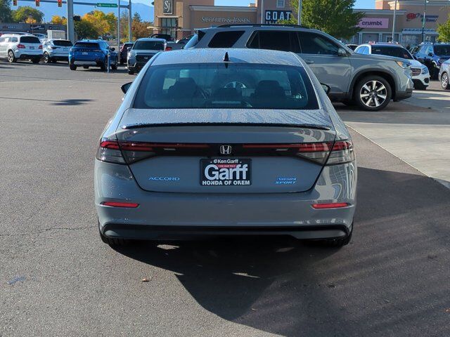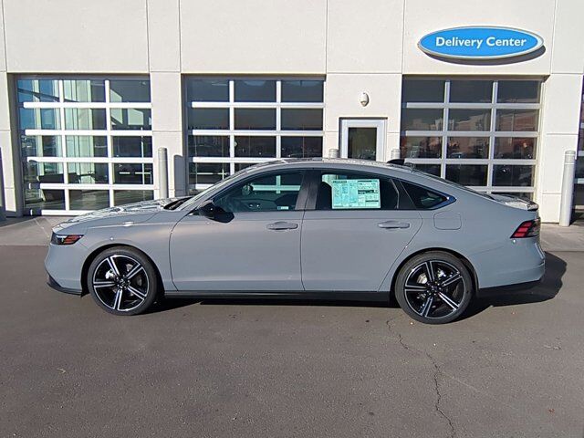 Ken Garff Honda is honored to offer this gorgeous 2025 Honda Accord Hybrid Sport in Urban Gray Pearl. FWD Sport eCVT2.0L I4 DOHC 16V, 4-Wheel Disc Brakes, 8 Speakers, ABS brakes, Adaptive Cruise Control: Adaptive Cruise Control (ACC) with Low-Speed Follow, Air Conditioning, Alloy wheels, AM/FM radio, Apple CarPlay/Android Auto, Auto High-beam Headlights, Automatic temperature control, Blind Spot Information (BSI) System warning, Brake assist, Bumpers: body-color, Compass, Delay-off headlights, Driver door bin, Driver vanity mirror, Dual front impact airbags, Dual front side impact airbags, Electronic Stability Control, Emergency communication system: HondaLink, Exterior Parking Camera Rear, Fabric Seat Trim, Four wheel independent suspension, Front anti-roll bar, Front Bucket Seats, Front Center Armrest, Front dual zone A/C, Front reading lights, Fully automatic headlights, Heated Front Bucket Seats, Heated front seats, Illuminated entry, Knee airbag, Lane departure: Lane Keeping Assist System (LKAS) active, Leather Shift Knob, Leather steering wheel, Low tire pressure warning, Occupant sensing airbag, Outside temperature display, Overhead airbag, Overhead console, Panic alarm, Passenger door bin, Passenger vanity mirror, Power door mirrors, Power driver seat, Power moonroof, Power steering, Power windows, Radio data system, Radio: 180-Watt Audio System, Rear anti-roll bar, Rear reading lights, Rear seat center armrest, Rear side impact airbag, Rear window defroster, Remote keyless entry, Security system, Speed control, Speed-sensing steering, Speed-Sensitive Wipers, Split folding rear seat, Spoiler, Steering wheel mounted audio controls, Telescoping steering wheel, Tilt steering wheel, Traction control, Trip computer, Variably intermittent wipers, Wheels: 19 x 8.5J Berlina Black, 2.0L I4 DOHC 16V.46/41 City/Highway MPG Fuel Economy estimates are based on EPA mileage ratings. Actual mileage will vary depending on driving conditions, habits, vehicle maintenance, and other factors. Advertised Prices do not include any dealer installed options and advertised prices exclude leases.