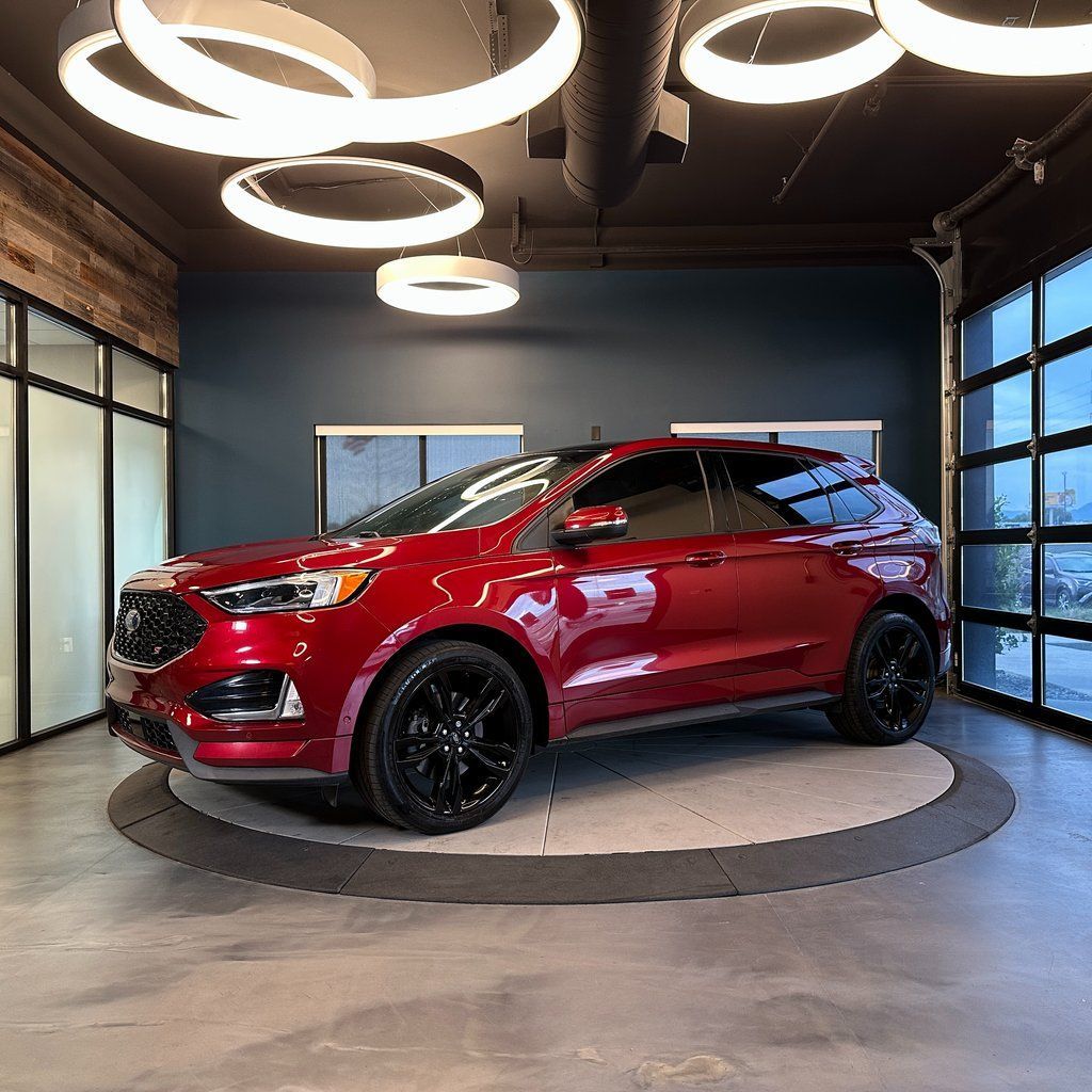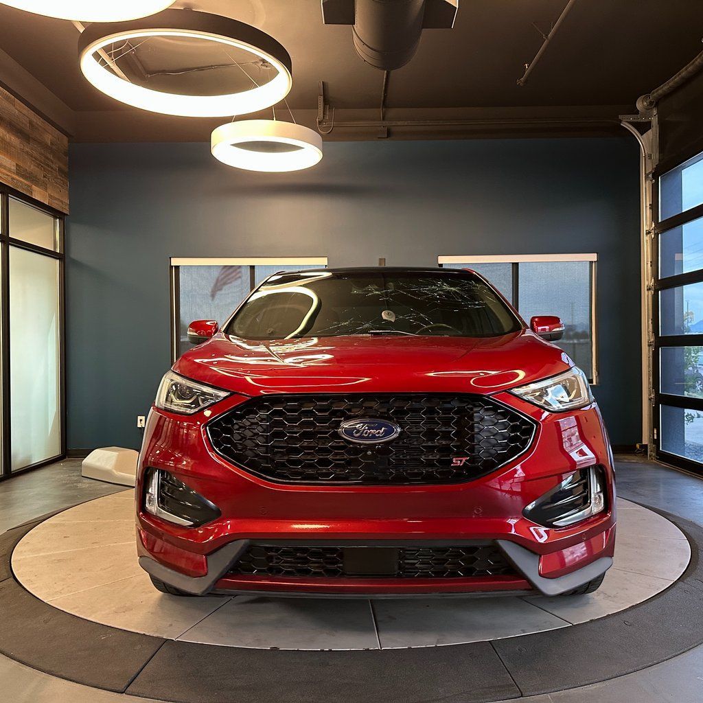 No accident history, AWD, ST trim with heated front and rear seats, panoramic vista roof, power liftgate, rear parking sensors, AppLink/Apple CarPlay/Android Auto, and much more! 2019 Ford Edge ST AWD with branded title from hail, 8-Speed Automatic 2.7L V6 EcoBoost 19/26 City/Highway MPG