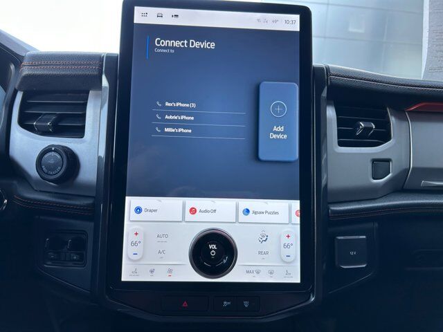 Navigation system: Connected Navigation,Equipment Group 501A High Package,Heavy-Duty Trailer Tow Package,6 Speakers,AM/FM radio: SiriusXM with 360L,Radio data system,Radio: AM/FM Stereo w/MP3 Capable,Radio: B&O Sound System by Bang & Olufsen,SiriusXM w/360L,SYNC 4 w/Enhanced Voice Recognition,Air Conditioning,Automatic temperature control,Front dual zone A/C,Rear air conditioning,Rear window defroster,2nd Row Power Windows,Memory seat,Pedal memory,Power driver seat,Power steering,Power windows,Remote keyless entry,Steering wheel memory,Steering wheel mounted audio controls,Four wheel independent suspension,Speed-sensing steering,Traction control,4-Wheel Disc Brakes,ABS brakes,Dual front impact airbags,Dual front side impact airbags,Emergency communication system: SYNC 4 911 Assist,Front anti-roll bar,Low tire pressure warning,Occupant sensing airbag,Overhead airbag,Rear anti-roll bar,Panoramic Vista Roof,Power Liftgate,Brake assist,Electronic Stability Control,Exterior Parking Camera Rear,Auto High-beam Headlights,Delay-off headlights,Front fog lights,Fully automatic headlights,Panic alarm,Security system,Intelligent Adaptive Cruise Control,Speed control,Auto Start-Stop Removal,Auto-dimming door mirrors,Bumpers: body-color,Heated door mirrors,Power door mirrors,Power-Folding Sideview Mirrors w/Autofold,Spoiler,Turn signal indicator mirrors,15.5 LCD Capacitive Touchscreen,360-Degree Camera w/Split View,Active Park Assist 2.0,Adjustable pedals,Ambient Lighting,Auto-dimming Rear-View mirror,Compass,Driver door bin,Driver vanity mirror,Front & Rear Upgraded Carpet Floor Mats,Front reading lights,Garage door transmitter,Heated & Vent Cloth/Vinyl Front Captain's Chairs,Heated & Ventilated Leather Front Captain's Chairs,Illuminated entry,Instrument Panel Cluster,Leather steering wheel,Outside temperature display,Overhead console,Passenger vanity mirror,Rear reading lights,Reverse Brake Assist,Tachometer,Telescoping steering wheel,Tilt steering wheel,Trip computer,Vinyl Center Console,Voltmeter,2nd Row Leather Trimmed Pwr-Folding Captain's Chairs,3rd row seats: split-bench,Front Bucket Seats,Front Center Armrest,Power passenger seat,Reclining 3rd row seat,Split folding rear seat,Advanced Cargo Manager,Passenger door bin,Integrated Trailer Brake Controller,Pro Trailer Backup Assist,Alloy wheels,Wheels: 18 Ebony-Painted,Rain-Sensing Wipers (Front Only),Rear window wiper,Speed-Sensitive Wipers,Variably intermittent wipers,ControlTrac w/3.73 Axle Ratio