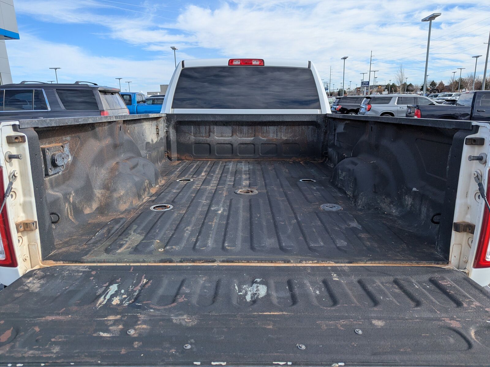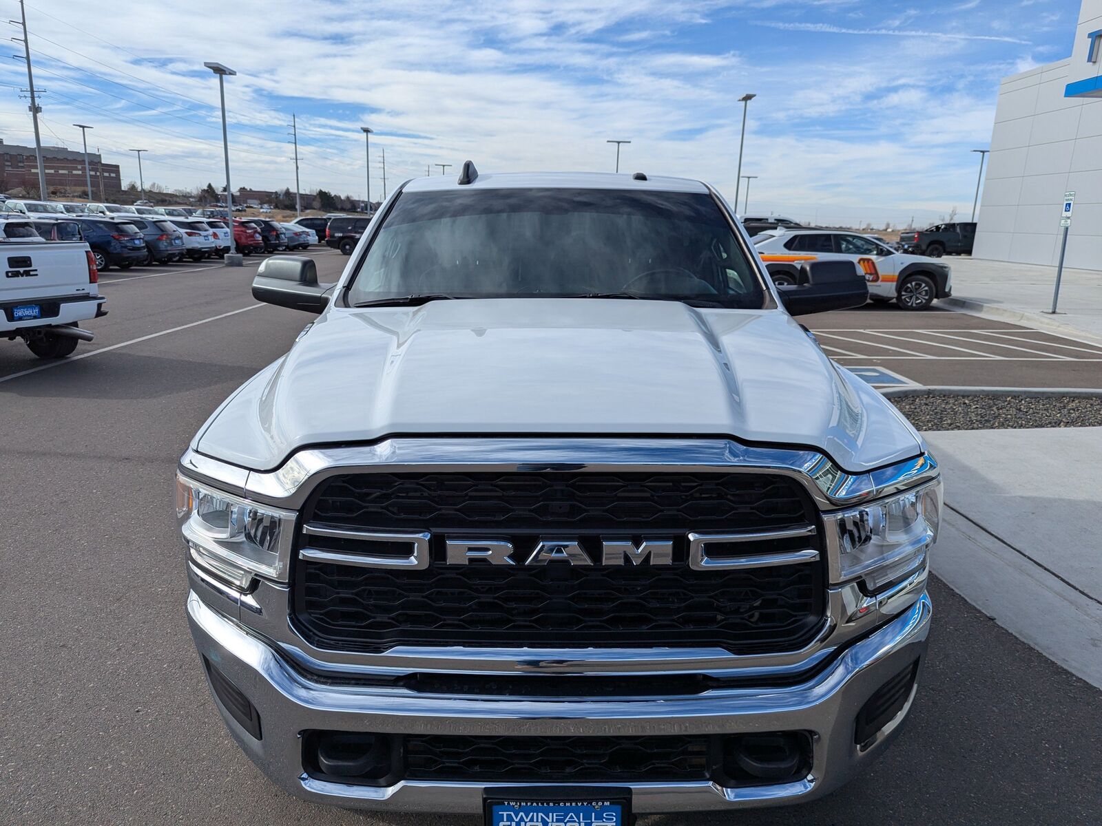 We proudly serve Twin Falls, Magic Valley, Kimberly, Jerome, Boise, Buhl as well as Blaine County, Elmore County and Ada County, Boise County, Canyon County and Lincoln County. Chrome Appearance Group (Bright Front Bumper, Bright Rear Bumper, Chrome Grille Surround, and Matte Black Mesh w/Chrome Grille), Quick Order Package 21A Tradesman, 2 Way Rear Headrest Seat, 3.73 Axle Ratio, 4 Way Front Headrests, 4-Wheel Disc Brakes, 40/20/40 Split Bench Seat, 50 Gallon Fuel Tank, 5th Wheel/Gooseneck Towing Prep Group, 6 Speakers, ABS brakes, Active Noise Control System, Air Conditioning, AM/FM radio, Brake assist, Compass, Dash Pass Thru Wire Circuits, Delay-off headlights, Driver door bin, Dual front impact airbags, Dual front side impact airbags, Electronic Stability Control, Electronically Controlled Throttle, Front anti-roll bar, Front Armrest w/Cupholders, Front Bumper Sight Shields, Front Center Armrest w/Storage, Front License Plate Bracket, Front reading lights, Fully automatic headlights, GPS Antenna Input, HD Vinyl 40/20/40 Split Bench Seat, Heated door mirrors, I/P Mounted Auxiliary Switches, Illuminated entry, Integrated Voice Command w/Bluetooth, Low tire pressure warning, Manual Adjust 4-Way Driver Seat, Manual Adjust 4-Way Front Passenger Seat, Manufacturer's Statement of Origin, MOPAR Spray In Bedliner, Occupant sensing airbag, Outside temperature display, Overhead airbag, Overhead console, ParkView Rear Back-Up Camera, Passenger door bin, Passenger vanity mirror, Power door mirrors, Power steering, Power windows, Radio data system, Radio: Uconnect 3 w/5 Display, Rear Folding Seat, Rear step bumper, Selectable Tire Fill Alert, Speed control, Tachometer, Tilt steering wheel, Tip Start, Traction control, Trailer Brake Control, Trailer Light