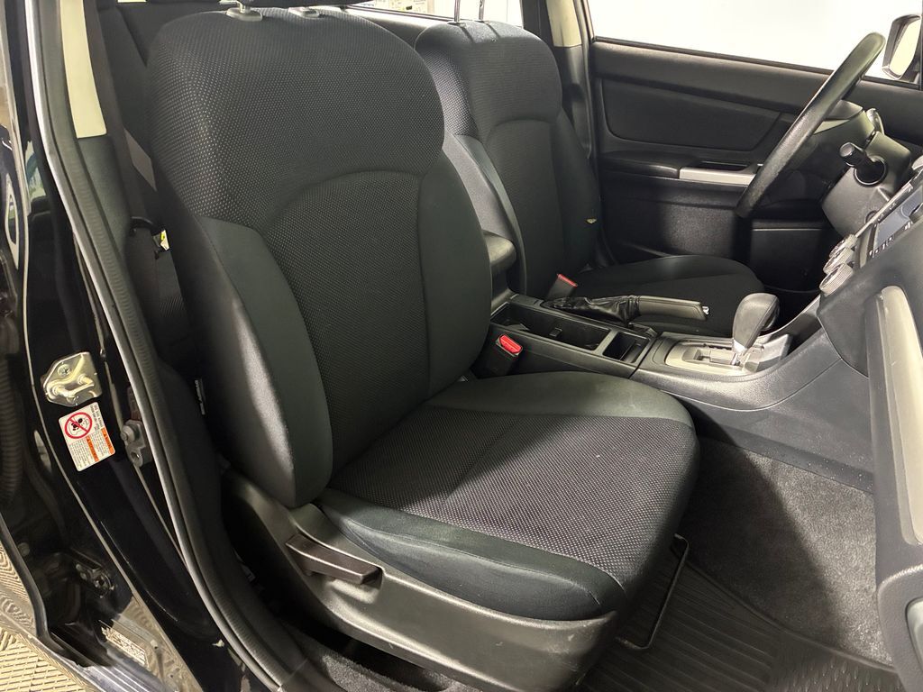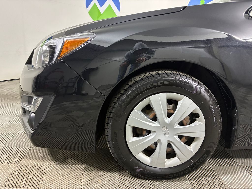 This 2016 Crystal Black Silica Subaru Impreza 2.0i AWD is well equipped and includes these features and benefits: 15'' x 6.0J Steel w/Full Wheel Covers Wheels, 4 Speakers, 4-Wheel Disc Brakes, ABS brakes, Air Conditioning, All Weather Floor Mats, AM/FM radio, Brake assist, Bumpers: body-color, Cargo Tray, CD player, Cloth Upholstery, Driver door bin, Driver vanity mirror, Dual front impact airbags, Dual front side impact airbags, Electronic Stability Control, Emergency communication system, Exterior Parking Camera Rear, Four wheel independent suspension, Front anti-roll bar, Front Bucket Seats, Front Center Armrest, Front reading lights, Illuminated entry, Knee airbag, Low tire pressure warning, Occupant sensing airbag, Outside temperature display, Overhead airbag, Panic alarm, Passenger door bin, Passenger vanity mirror, Power door mirrors, Power steering, Power windows, Radio data system, Radio: Subaru Starlink 6.2'' Multimedia System, Rear window defroster, Rear window wiper, Reclining Front Bucket Seats, Remote keyless entry, Security system, Speed control, Speed-sensing steering, Split folding rear seat, Spoiler, Steering wheel mounted audio controls, Tachometer, Telescoping steering wheel, Tilt steering wheel, Traction control, Trip computer, and Variably intermittent wipers.