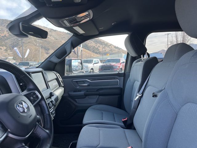 The 2022 Ram 1500 Big Horn/Lone Star rolls in with a confident, work-ready presence that feels just as comfortable on a jobsite as it does cruisin' down the highway. Its bold front grille, sculpted hood, and strong body lines give it that unmistakable Ram toughness, while chrome accents and available 18- or 20-inch wheels add just the right touch of polish to keep things sharp and modern. The inside surprises you with a cabin that blends rugged utility with everyday comfort. Premium cloth seating, smart storage solutions, and a driver-focused layout make long drives feel effortless. The available 8.4-inch or massive 12-inch Uconnect touchscreen anchors the dash, offering seamless access to navigation, smartphone integration, and vehicle settings, all with an intuitive, responsive feel. Whether its tackling tough tasks or serving as a dependable daily driver, the 2022 Ram 1500 Big Horn/Lone Star strikes an impressive balance between strength, comfort, and technology proving that a hardworking truck does not have to sacrifice style or sophistication to get the job done.