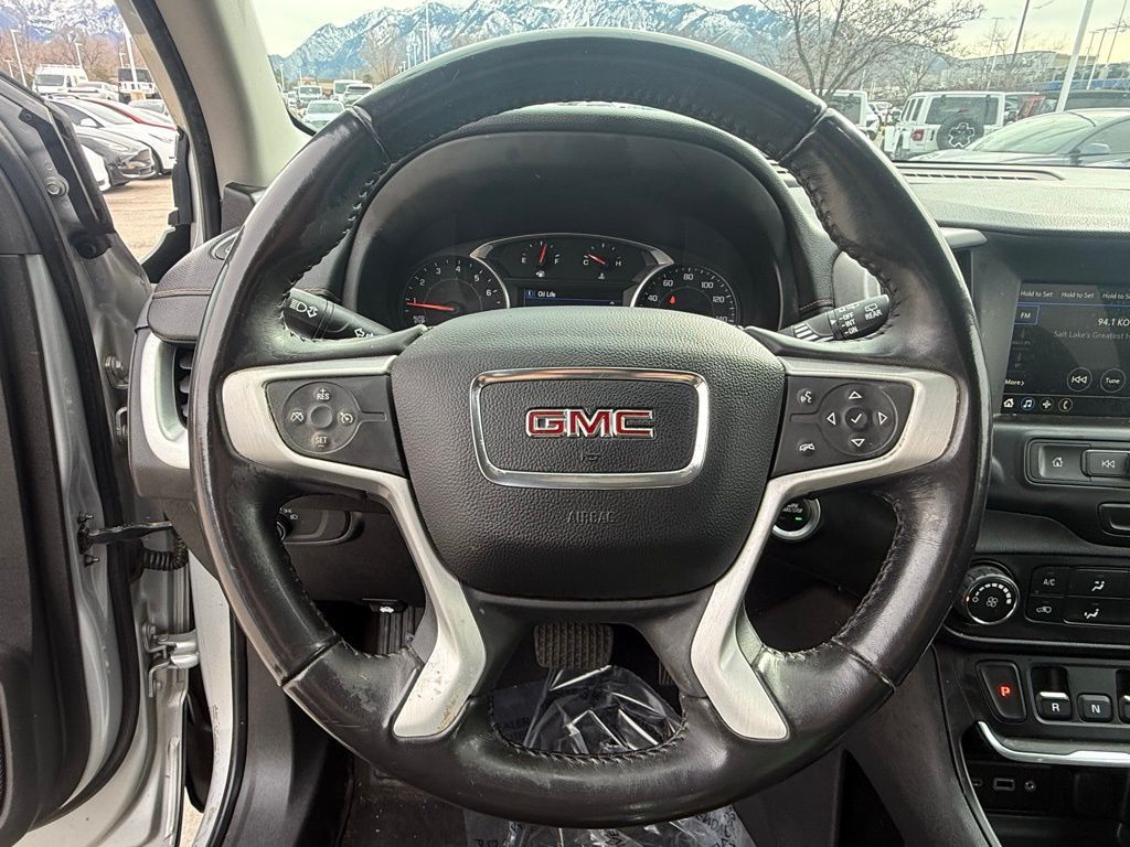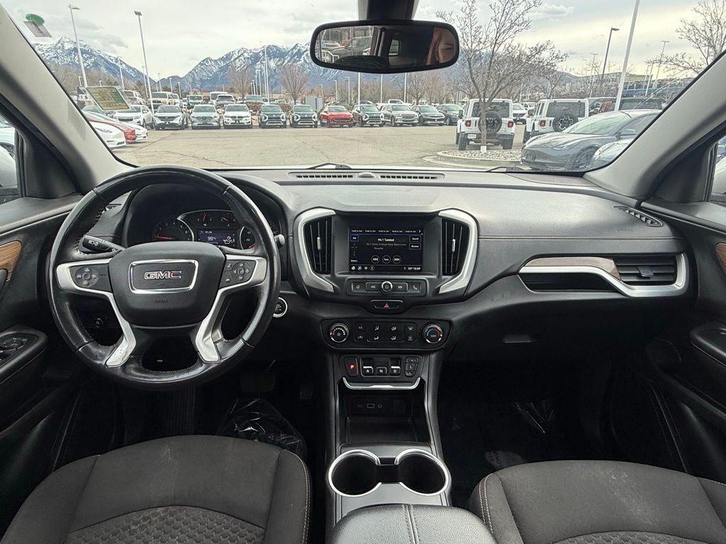 2019 GMC TERRAIN SLE AWD COMPACT SUV IS POWERED BY A 1.5L TURBOCHARGED 4CYLINDER ENGINE PRODUCING 170 HORSEPOWER AND 203 LBFT OF TORQUE, PAIRED WITH A 9SPEED AUTOMATIC TRANSMISSION AND AVAILABLE ALLWHEEL DRIVE FOR SMOOTH AND CONFIDENT HANDLING. IT DELIVERS AN EPA ESTIMATED 25MPG CITY / 30MPG HIGHWAY, MAKING IT EFFICIENT FOR DAILY COMMUTES AND WEEKEND ADVENTURES. FEATURES INCLUDE TOUCHSCREEN INFOTAINMENT WITH APPLE CARPLAY AND ANDROID AUTO, BACKUP CAMERA, BLUETOOTH CONNECTIVITY, DUALZONE CLIMATE CONTROL, POWER WINDOWS AND LOCKS, HEATED FRONT SEATS, REMOTE KEYLESS ENTRY, AND ALLOY WHEELS. WITH A SPACIOUS INTERIOR, PRACTICAL CARGO SPACE, AND MODERN SAFETY TECHNOLOGY, THIS TERRAIN SLE IS IDEAL FOR FAMILIES AND DAILY DRIVING.