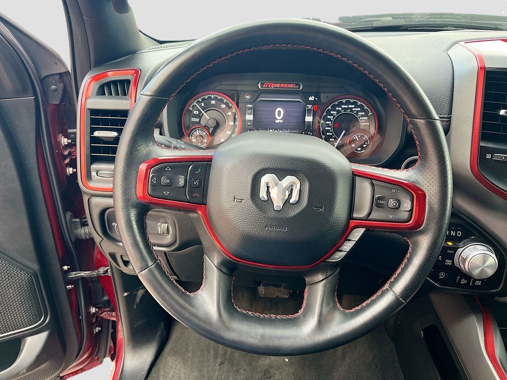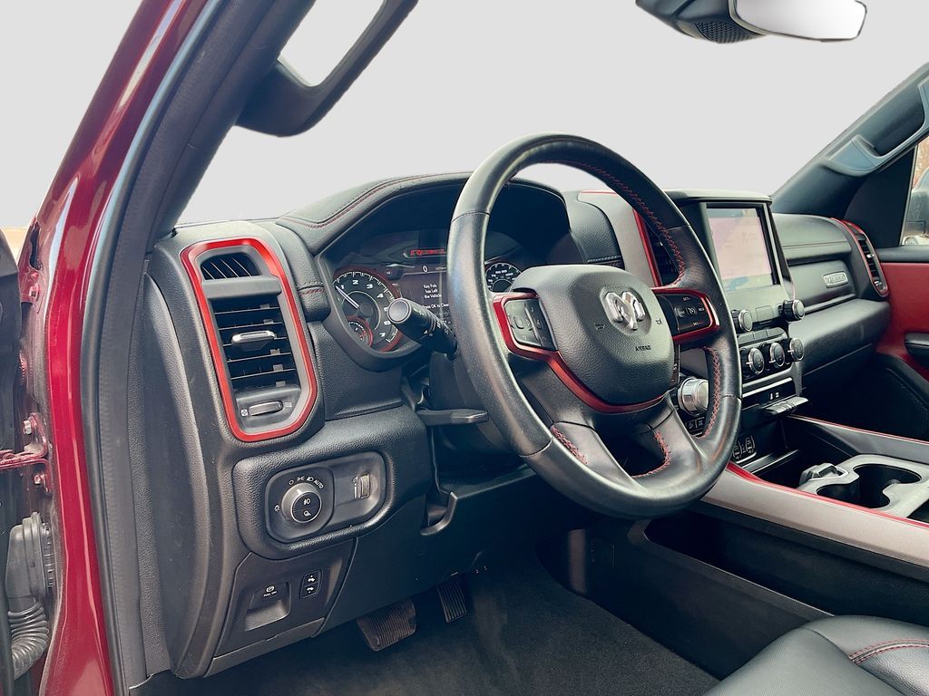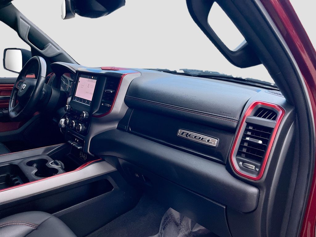 Explore the 2022 RAM 1500 Rebel Crew Cab 4x4 at AutoSavvy Windsor, a bold and capable truck designed for adventure. With only 17,212 miles, this Delmonico Red Pearlcoat beauty offers a nearly new driving experience. Under the hood, the powerful HEMI 5.7L V-8 engine with 395HP, cylinder deactivation, and an 8-speed automatic transmission ensures a robust performance while achieving 18 MPG in the city and 22 MPG on the highway. The Rebel's rugged exterior is complemented by 18-inch black aluminum wheels and tow hooks, making it ready for any terrain. Inside, enjoy the comfort of cloth and vinyl upholstery, heated front seats, and a heated steering wheel. Stay connected with the 8.4-inch touchscreen display featuring Apple CarPlay, Android Auto, and a 4G LTE Wi-Fi hotspot. The current status of the title is branded, reflecting AutoSavvy Windsor's commitment to transparency and quality. This RAM 1500 is Savvy Certified, offering a 4-month/4,500-mile warranty for added peace of mind. It has undergone a comprehensive inspection to meet high safety and performance standards, ensuring it is in excellent condition. Visit AutoSavvy Windsor today to explore this exceptional truck and discover why the 2022 RAM 1500 Rebel Crew Cab 4x4 is the perfect choice for those seeking a blend of power, reliability, and cutting-edge technology. Whether you're navigating city streets or tackling tough trails, this RAM promises a dynamic and comfortable driving experience.