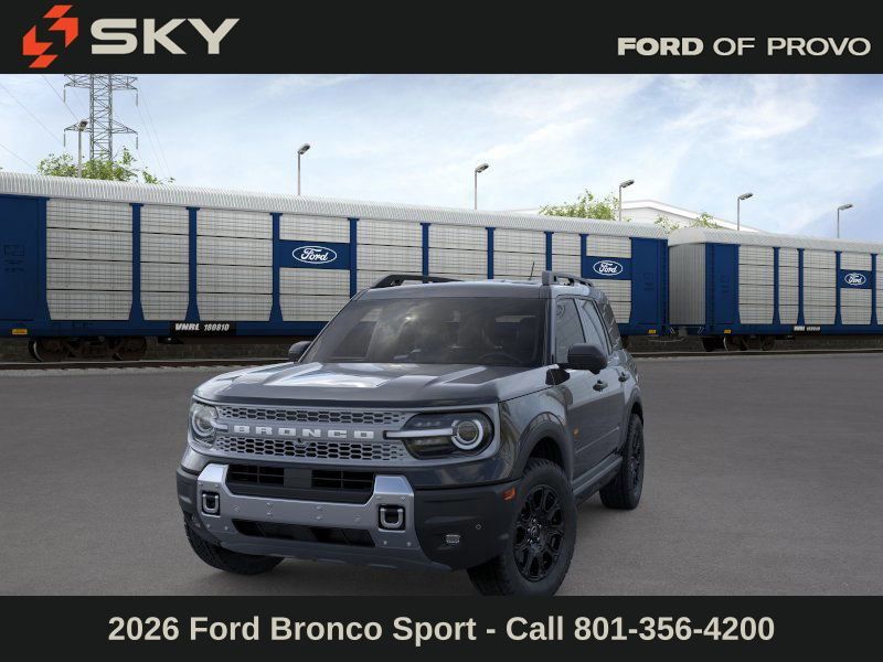This 2026 Shadow Black Ford Bronco Sport Badlands 4WD is well equipped and includes these features and benefits: Ford Connectivity Package (1-Year Included), Internet access capable: 5G Modem - Ford Connectivity Package, 4-Wheel Disc Brakes, 6 Speakers, ABS brakes, Air Conditioning, Alloy wheels, AM/FM radio: SiriusXM with 360L, AM/FM Stereo, Apple CarPlay/Android Auto, Auto High-beam Headlights, Auto-dimming Rear-View mirror, Automatic temperature control, Brake assist, Compass, Delay-off headlights, Driver door bin, Driver vanity mirror, Dual front impact airbags, Dual front side impact airbags, Electronic Stability Control, Emergency communication system: SYNC 4 911 Assist, Exterior Parking Camera Rear, Four wheel independent suspension, Front anti-roll bar, Front Bucket Seats, Front Center Armrest, Front fog lights, Front reading lights, Fully automatic headlights, Heated door mirrors, Heated front seats, Heated steering wheel, Illuminated entry, Knee airbag, Leather-Trimmed Heated Front Sport Contour Bucket Seats, Low tire pressure warning, Memory seat, Occupant sensing airbag, Outside temperature display, Overhead airbag, Overhead console, Panic alarm, Passenger door bin, Passenger vanity mirror, Power door mirrors, Power driver seat, Power passenger seat, Power steering, Power windows, Radio data system, Rear anti-roll bar, Rear reading lights, Rear seat center armrest, Rear window defroster, Rear window wiper, Remote keyless entry, Security system, SiriusXM with 360L, Speed control, Speed-sensing steering, Speed-Sensitive Wipers, Split folding rear seat, Steering wheel mounted audio controls, SYNC 4 with Enhanced Voice Recognition, Tachometer, Telescoping steering wheel, Tilt steering wheel, Traction control, Trip computer, Variably intermittent wipers, and Wheels: 17'' Matte Black-Painted Aluminum.