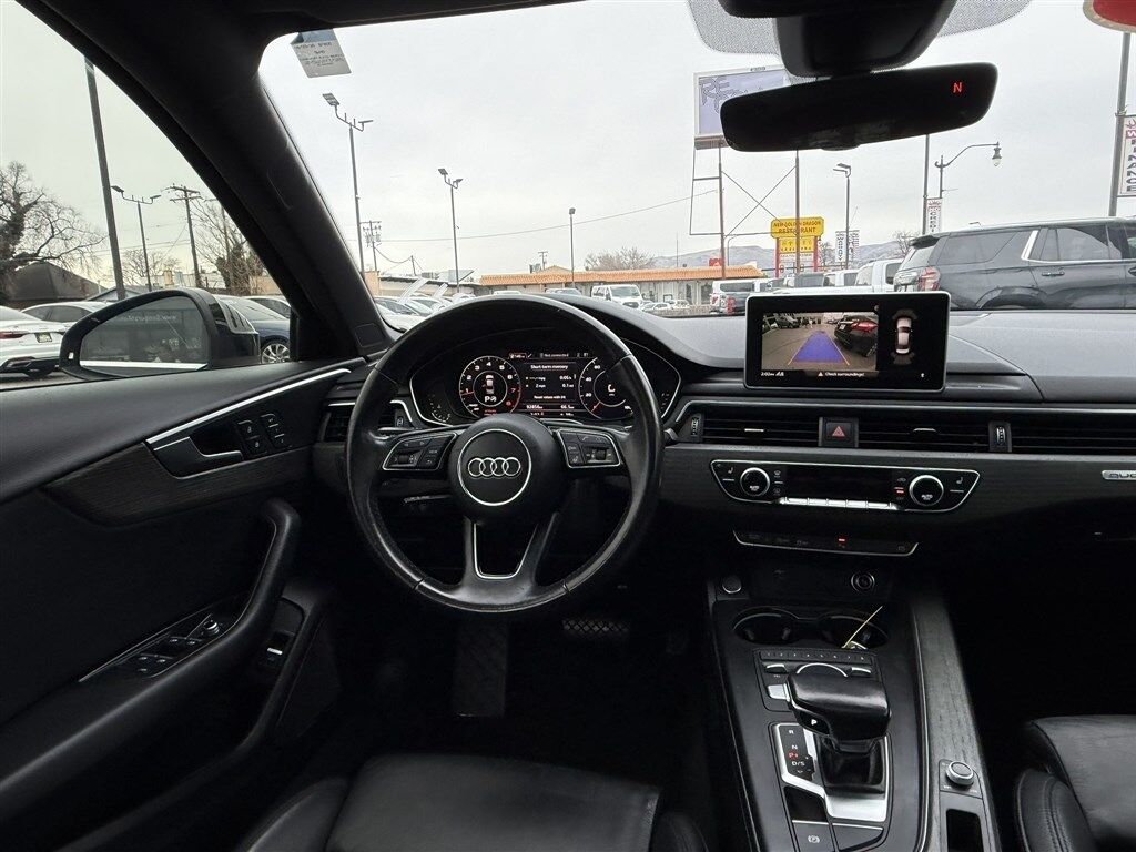 Engine: 2.0L TFSI I4 DOHC -inc: Audi Valvelift system and idle start/stop efficiency system,Transmission w/Driver Selectable Mode and Oil Cooler,Full-Time All-Wheel,4.27 Axle Ratio,Engine Oil Cooler,79-Amp/Hr 420CCA Maintenance-Free Battery w/Run Down Protection,Regenerative 150 Amp Alternator,Gas-Pressurized Shock Absorbers,Front And Rear Anti-Roll Bars,Electric Power-Assist Speed-Sensing Steering,15.3 Gal. Fuel Tank,Quasi-Dual Stainless Steel Exhaust w/Chrome Tailpipe Finisher,Multi-Link Front Suspension w/Coil Springs,Multi-Link Rear Suspension w/Coil Springs,4-Wheel Disc Brakes w/4-Wheel ABS- Front And Rear Vented Discs- Brake Assist- Hill Hold Control and Electric Parking Brake,Wheels: 8"" x 18"" 5-Spoke Dynamic Design -inc: Contrasting gray and partially polished,Aluminum Wheels,Steel Spare Wheel,Compact Spare Tire Mounted Inside Under Cargo,Express Open/Close Sliding And Tilting Glass 1st Row Sunroof w/Sunshade,Body-Colored Front Bumper w/Metal-Look Bumper Insert,Body-Colored Rear Bumper,Rocker Panel Extensions,Black Front Windshield Trim,Body-Colored Door Handles,Fixed Rear Window w/Defroster,Light Tinted Glass,Speed Sensitive Rain Detecting Variable Intermittent Wipers w/Heated Jets,Galvanized Steel/Aluminum Panels,Colored Grille w/Chrome Surround,Front License Plate Bracket,Trunk Rear Cargo Access,Programmable Projector Beam Auto-Leveling Headlamps w/Delay-Off,Cornering Lights,Perimeter/Approach Lights,LED Brakelights,Radio w/Seek-Scan- Glove Box Mounted Single Remote CD- Clock- Speed Compensated Volume Control- Aux Audio Input Jack- Steering Wheel Controls and Radio Data System,19 Speakers,Audio Theft Deterrent,Window Grid Diversity Antenna,2 LCD Monitors In The Front,Wireless Phone Connectivity,Driver Seat,Passenger Seat,40-20-40 Folding Bench Front Facing Fold Forward Seatback Rear Seat,Manual Tilt/Telescoping Steering Column,Leather Steering Wheel,Illuminated Front Cupholder,Rear Cupholder,Compass,Valet Function,Power Fuel Flap Locking Type,HomeLink Garage Door Transmitter,Cruise Control,HVAC -inc: Underseat Ducts and Console Ducts,Illuminated Glove Box,Driver Foot Rest,Interior Trim -inc: Aluminum Instrument Panel Insert- Aluminum Door Panel Insert- Aluminum Console Insert and Metal-Look Interior Accents,Full Cloth Headliner,Leatherette Door Trim Insert,Leather Gear Shifter Material,Day-Night Auto-Dimming Rearview Mirror,Driver And Passenger Visor Vanity Mirrors w/Driver And Passenger Illumination,Full Floor Console w/Storage- Mini Overhead Console w/Storage and 3 12V DC Power Outlets,Front And Rear Map Lights,Fade-To-Off Interior Lighting,Carpet Floor Trim and Carpet Trunk Lid/Rear Cargo Door Trim,Cargo Space Lights,Smart Device Integration,Refrigerated/Cooled Box Located In The Glovebox- Driver / Passenger And Rear Door Bins,Delayed Accessory Power,Redundant Digital Speedometer,Outside Temp Gauge,Manual Anti-Whiplash Adjustable Front Head Restraints and Manual Adjustable Rear Head Restraints,Sliding Front Center Armrest and Rear Center Armrest w/Storage,2 Seatback Storage Pockets,3 12V DC Power Outlets,Air Filtration,Side Impact Beams,Collision Mitigation-Front,Audi pre sense basic,Low Tire Pressure Warning,Dual Stage Driver And Passenger Front Airbags,SIDEGUARD Curtain 1st And 2nd Row Airbags,Airbag Occupancy Sensor,Driver And Passenger Knee Airbag,Rear Child Safety Locks,Outboard Front Lap And Shoulder Safety Belts -inc: Rear Center 3 Point- Height Adjusters and Pretensioners,Back-Up Camera