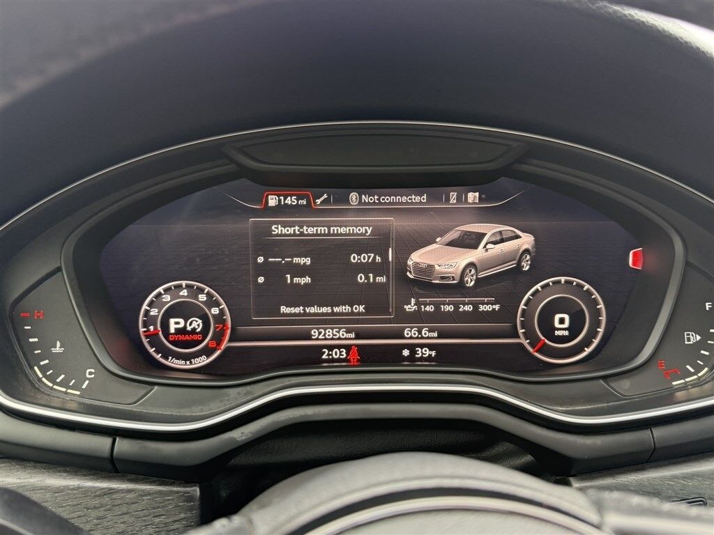 CLEAN TITLEPREMIUM PLUSAt Sunburst Auto Sales Center, we are proud to present a sleek 2018 Audi A4 PREMIUM PLUS that combines luxury and performance for discerning drivers. This stunning sedan, dressed in a deep, sophisticated black, boasts a significant road presence and has been meticulously maintained with 92,736 miles on the odometer. Under the hood, the Audi A4 features a robust 2L 4-cylinder engine, paired with a smooth automatic transmission, offering an engaging driving experience. The turbocharger ensures a dynamic ride with plenty of power to make highway merging and passing a breeze. This PREMIUM PLUS trim is loaded with an array of options designed to enhance your driving experience. Expect premium safety and comfort with features including active belts, air conditioning, a high-quality AM/FM CD/MP3 stereo, and anti-lock brakes. The automatic passenger sensor adds an extra layer of safety, adjusting the passenger airbag deployment as needed. For added convenience, it includes an immobilizer with keyless entry and an alarm, power brakes, power steering, and power windows. The tilt steering wheel provides ergonomic comfort for the driver, while the power sun/moonroof invites natural light and fresh air into the cabin. Daytime running lights and dual airbags front and side ensure visibility and safety as you travel. Visit Sunburst Auto Sales Center today to experience the luxury and precision engineering of this exceptional 2018 Audi A4 PREMIUM PLUS.