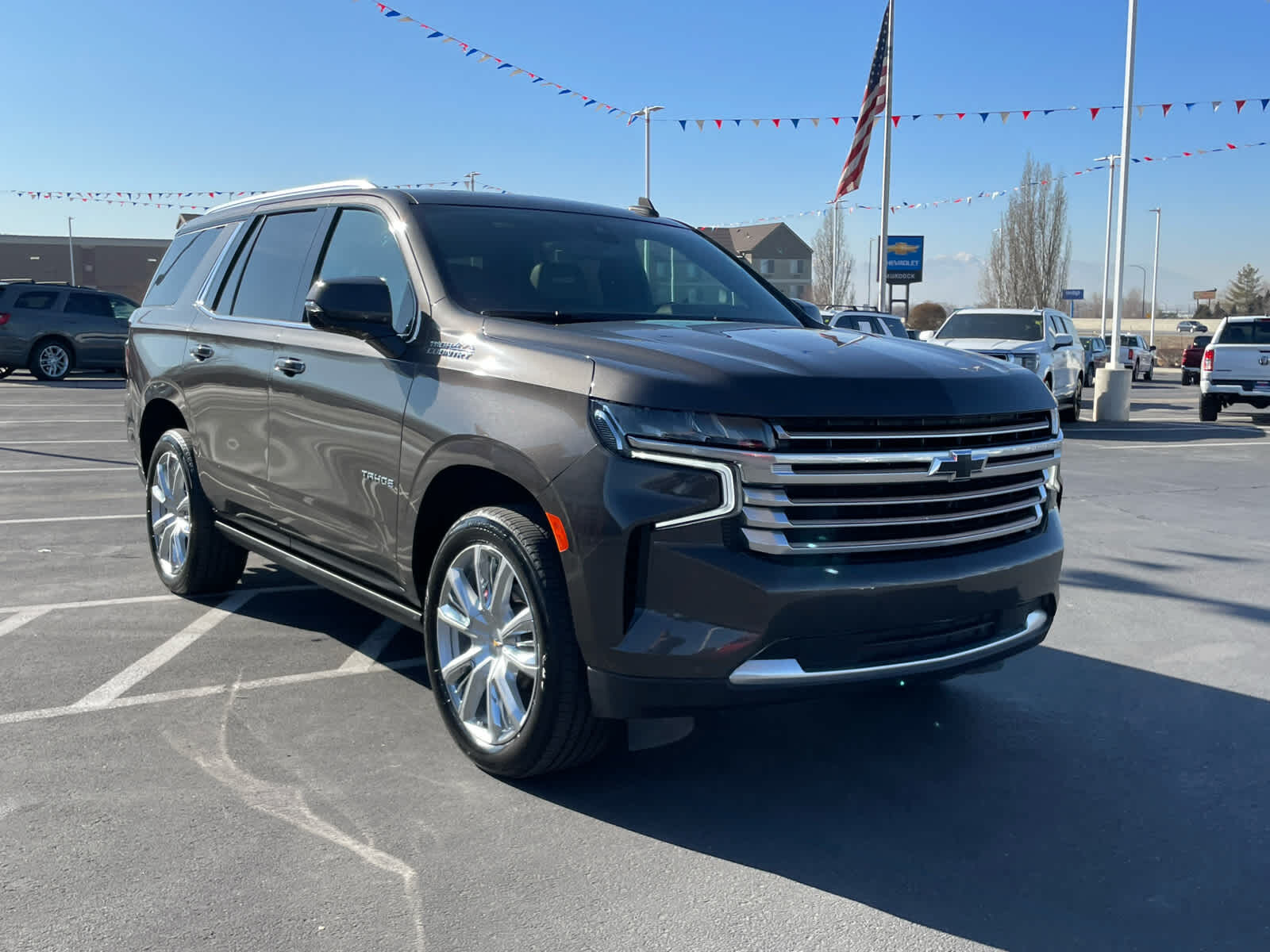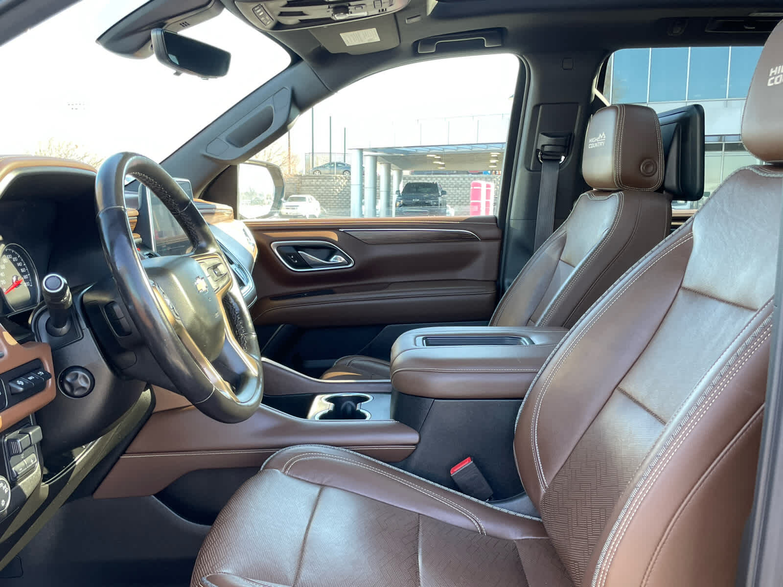 Leather Seats, Third Row Seat, Navigation, DVD, 4x4, Quad Bucket Seats, Power Liftgate, Rear Air MP3 Player, Remote Trunk Release, Privacy Glass, Keyless Entry. Non-Smoker vehicle Chevrolet High Country with Graywood Metallic exterior and Jet Black interior features a 8 Cylinder Engine with 420 HP at 5600 RPM*.