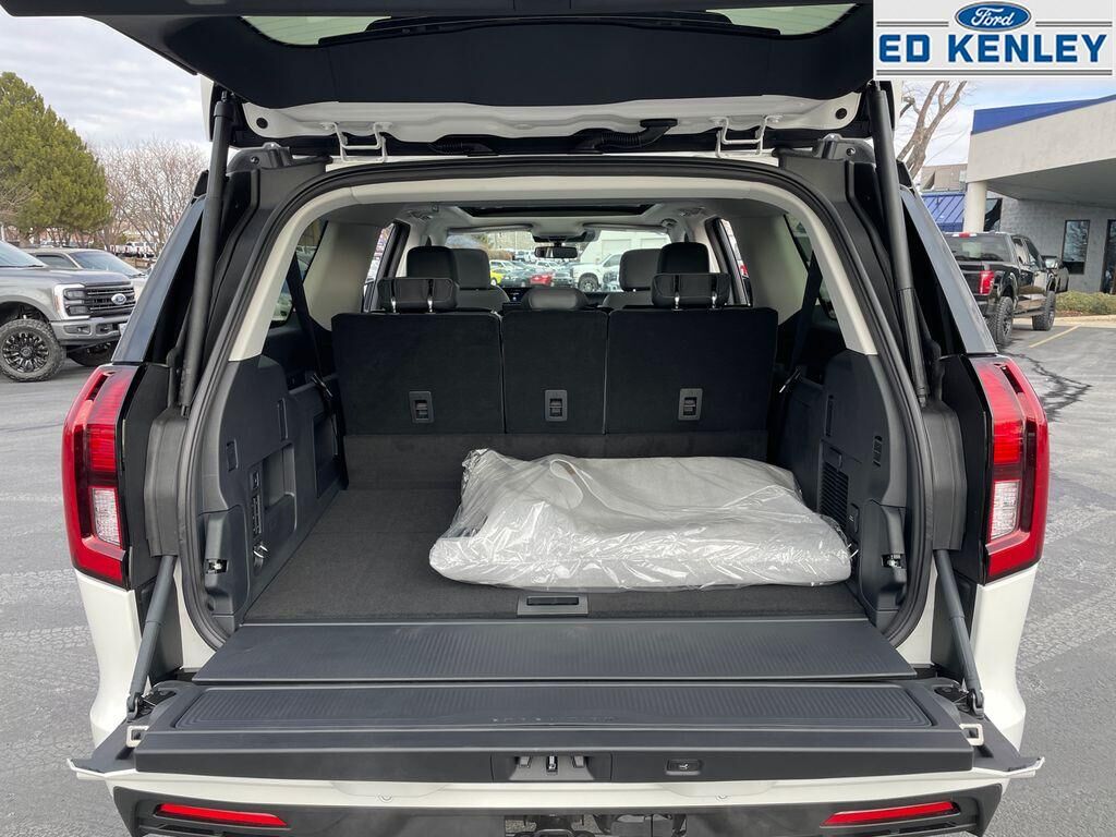 Equipment Group 202A Touring Package: 4-Way Manual Head Restraints; Ford Split Gate; 360-Degree Zone Lighting; AM/FM Stereo with MP3 Capable; Pro Power Onboard - 400W; 3.73 Axle Ratio; Active Air Dam; 10-Speed Automatic Transmission with SelectShift; ActiveX-Trimmed Front Heated Captain's Chairs; Rain Sensitive Windshield Wipers; 3.5L EcoBoost V6 Engine; Power Tilt/telescopic Steering Wheel with Memory; Memory Driver Seat; Front Side Laminated Glass; 2nd Row Power-Folding Captain's Chairs; USB Ports; Flex Powered Console; Heated Steering Wheel; Dual Power-Folding Sideview Mirrors with Autofold; 3rd Row Vinyl Seats; 4-Door Intelligent Access (lock/unlock); Heavy-Duty Trailer Tow,Ford Co-Pilot360 Active 2.0: Intersection Assist,BlueCruise (equipment 1-Time Purchase),Power Panoramic Vista Roof with Power Sunshade,20" X 8.5" Bright Machined Aluminum Wheels,Star White Metallic TC,2nd Row Pwr-Folding 40/20/40 ActiveX-Trimmed Bench Seat,Front and 2nd Rows Floor Liners Without Carper Mats,3rd Row Flexible Seating (40/20/40),3rd Row All Weather Floor Liner (tray Style),Apple CarPlay/Android Auto smart device wireless mirroring,BlueCruise hands-off cruise control with lane change,BlueCruise hands-on cruise control with lane change,Forward collision mitigation with left turn assist and pedestrian impact prevention,Pedestrian impact prevention,Predictive Speed Assist Automatic curve slowdown cruise control,Unresponsive driver assist,Mobile hotspot internet access,Rear camera with washer,Lane-Keeping System,BLIS with Trailer Tow Coverage active blind spot system,Reverse Brake Assist collision mitigation,Adaptive Cruise Control with Stop-and-Go,Brake assist system,Cruise Control w/Adjustable Speed Limiting Device (ASLD) cruise control with steering wheel mounted controls,Power liftgate/tailgate rear cargo door,Integrated navigation system with voice activation,Keyfob remote start,Heated steering wheel,Heated driver and front passenger seats,ActiveX leatherette front seat upholstery,Primary monitor touchscreen,Fixed third-row seats,First and second-row sliding and tilting glass sunroof with express open/close activation sunshade,Driver seat power reclining, lumbar support, cushion tilt, fore/aft control and height adjustable control,Part and full-time 4WD,EcoBoost 3.5L V-6 port/direct injection, DOHC, variable valve control, twin turbo, regular unleaded, engine with 400HP,EcoBoost 3.5L V-6 DOHC,Built-in virtual assistant,Driver Alert,MyKey restricted driving mode/alerts,Intelligent Access with hands-free access and push button start,360 Degree Camera aerial view camera,Smart device remote start,Push-button,Automatic brake hold,Active aerodynamics,Bluetooth wireless audio streaming,Automated vehicle to trailer hitching assist,Gauge cluster display size: 24.00,Front mounted camera,Right side camera,Left side camera,Traffic sign recognition with automatic speed limit assist,Following distance alert,Dual-zone front climate control,Rear climate control system with separate controls,Third-row climate control with separate controls,Full gauge cluster screen,Auto High Beam auto high-beam headlights