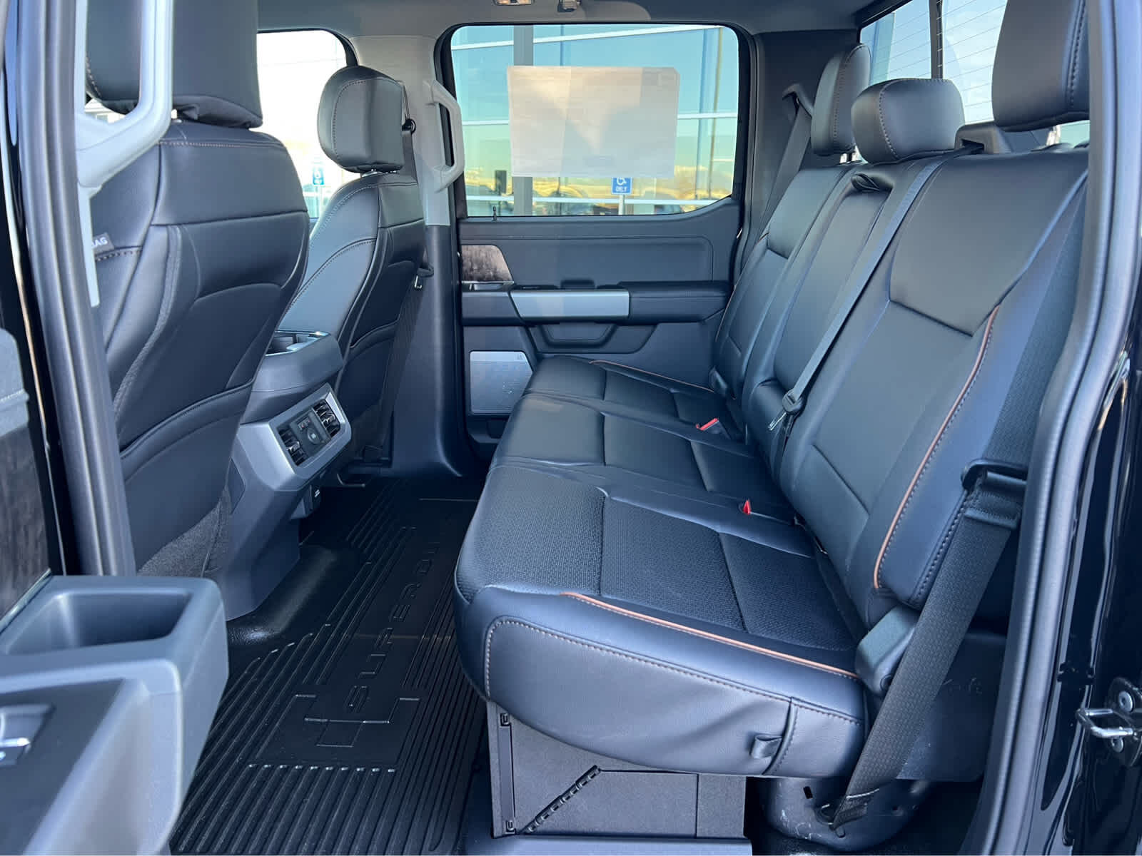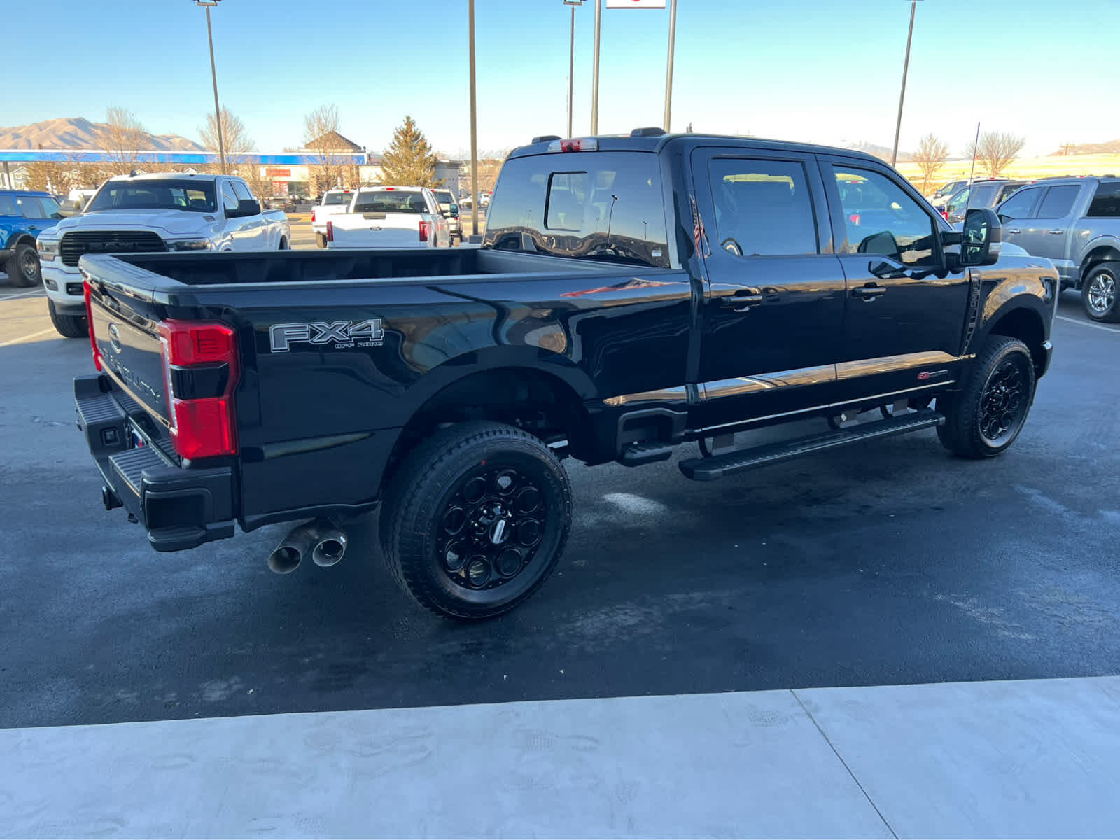 ENGINE: 6.7L HIGH OUTPUT POWER STROKE V8 DIESEL Turbo diesel B20, manual push-button engine-exhaust braking and Operator Commanded Regeneration (OCR), 250 Amp Alternator, 34 Gallon Fuel Tank, GVWR: 11,499 lb Payload Package, 3.31 Axle Ratio, Dual AGM 68 AH Battery, BLACK APPEARANCE PACKAGE front and rear black Ford ovals, box side decal (4x4, FX4 or Tremor) and ebony black fender vent surround dark fender badge, Rear Wheel Well Liners, Black Painted Front Grille Surround, Ebony Black Painted Mirror Caps, Tough Bed Spray-In Bedliner, tailgate-guard, black box bed tie-down hooks and black bed attachment bolts, Body Color Front & Rear Bumpers, Wheels: 20 Ebony Black High Gloss, Black premium painted aluminum, gloss black hub cover/center ornament, Tires: LT275/65Rx20E BSW Automatic Transmission (4), Spare may not be the same as road tire, 6 Ebony Black Angular Running Boards, LARIAT ULTIMATE PACKAGE Tailgate Step & Handle, Head-Up Display, 4-Way Adjustable Headrests, Power-Deployable Running Boards, Radio: B&O Unleashed Sound System by Bang & Olufsen, HD Radio w/14 speakers including subwoofer, LARIAT PREMIUM PACKAGE lane departure warning, Pro Trailer Hitch Assist, Ford Co-Pilot 360 Assist 2.0, rear view camera and reverse brake assist, Pre-Collision Assist, Automatic Emergency Braking (AEB), pedestrian detection, forward collision warning, dynamic brake support and intersection assist, Post-Collision Braking, Lane-Keeping System, lane-keeping alert, lane-keeping aid and driver alert, Front & Rear Parking Sensors, Automatic High Beam, Adaptive Cruise Control w/Stop-and-Go, lane centering and predictive speed assist, Power-Sliding Rear-Window w/Defrost, Pro Trailer Backup Assist, trailer reverse guidance, TWIN PANEL POWER MOONROOF map lights and moonroof switches, SECURICODE KEYLESS ENTRY KEYPAD (DRIVERS SIDE) Integrated into the B-pillar, ELECTRONIC-LOCKING W/3.55 AXLE RATIO, TRANSMISSION: TORQSHIFT 10-SPEED AUTOMATIC SelectShift and selectable drive modes: normal, eco, slippery roads, tow/haul and off-road.