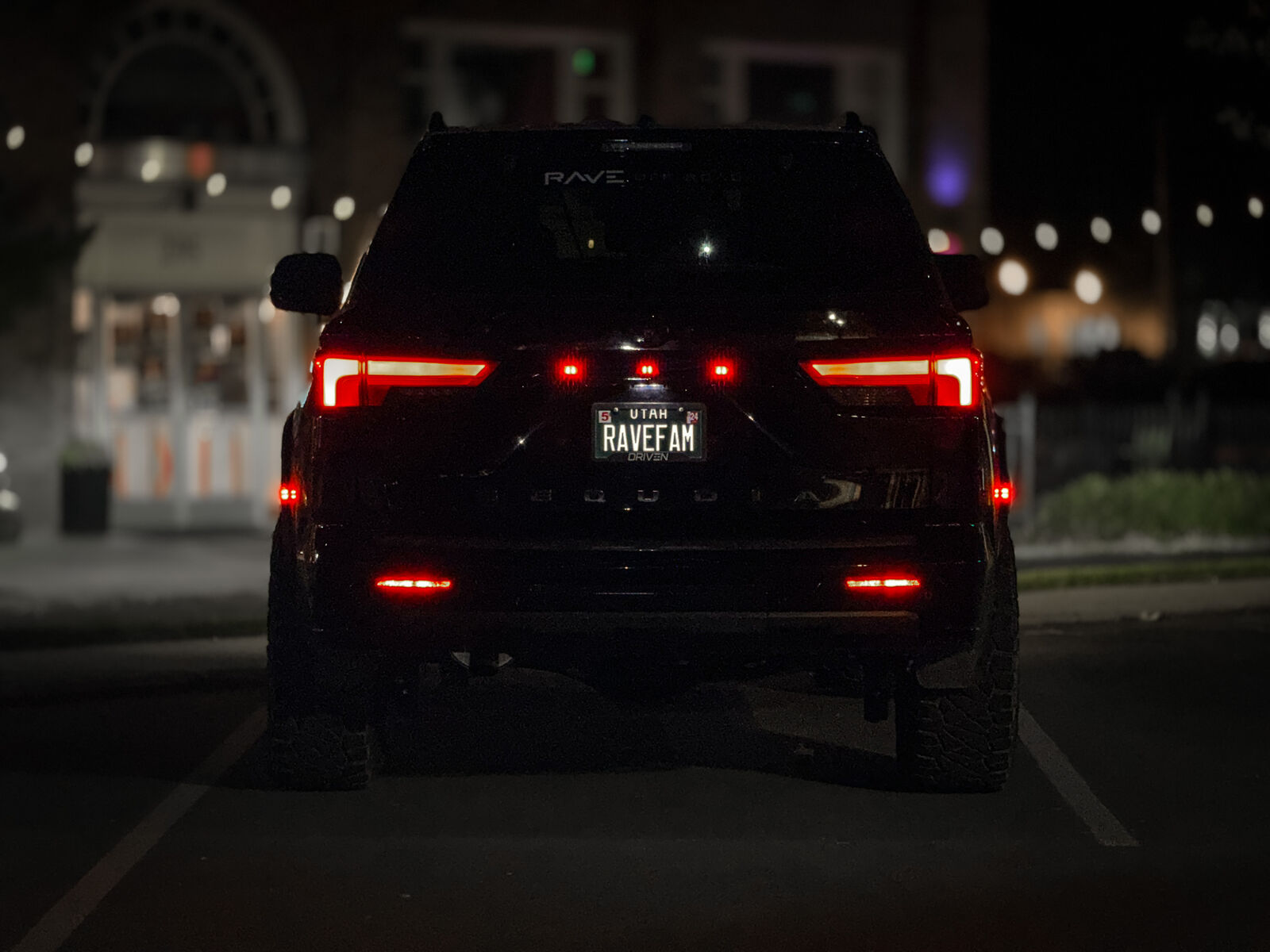 Custom one-of-a-kind raptor lights on rear tailgate